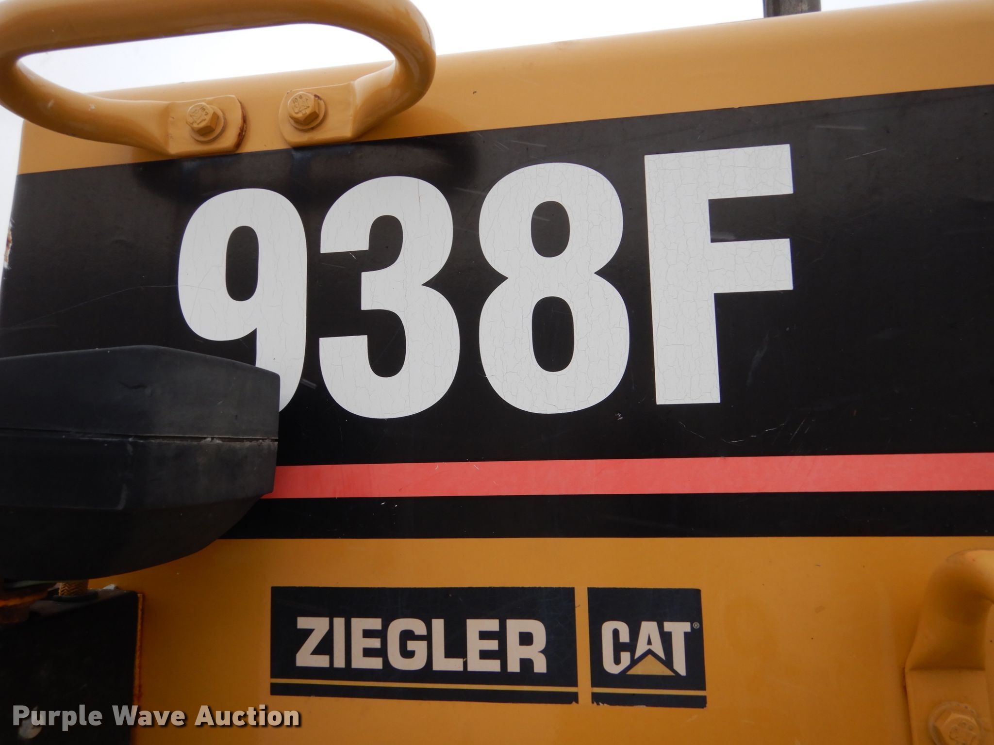 1996 Caterpillar 938F wheel loader. 6,693 hours on meter, Caterpillar 3116 six cylinder diesel engine, Powershift transmission 4F-4R gears, Enclosed cab Heat, Two-lever bucket controls, 105"W bucket Bolt-on cutting edge, 68"L pallet forks, Hydraulic quick coupler, Auxiliary hydraulics, 20.5-25 tires, Serial 1KM01577. Neuvirth Construction. 3400 Old Mormon Bridge Rd. Crescent, IA 51526