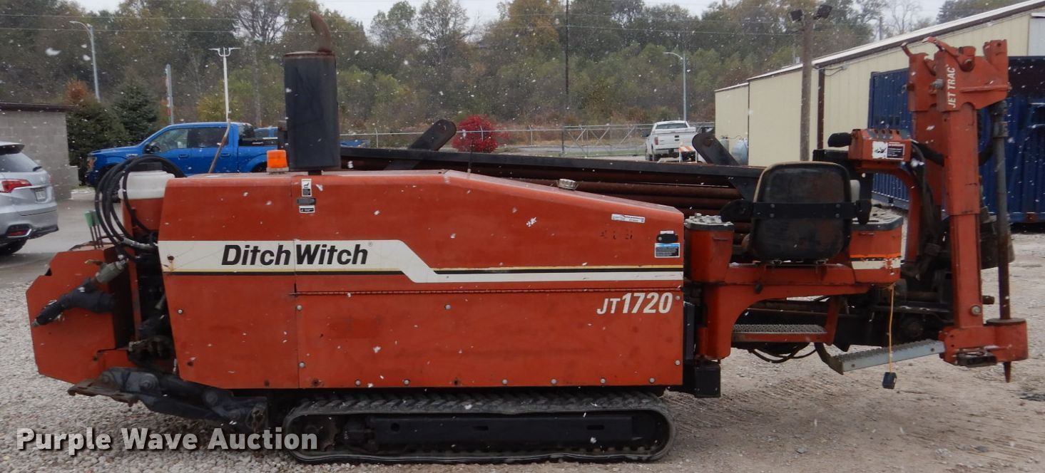 Purple Wave is selling a used Directional Boring Unit in Nebraska. This item is a 2000 Ditch Witch JT1720 directional boring unit with the following: 4,461 hours on meter, John Deere four cylinder diesel engine, Tethered ground drive remote, (39) drill stems, 2" diameter, Automatic rod loader, Hydraulic stake down, Rear hydraulic stabilizers, 9"W rubber tracks, Serial 2T3878