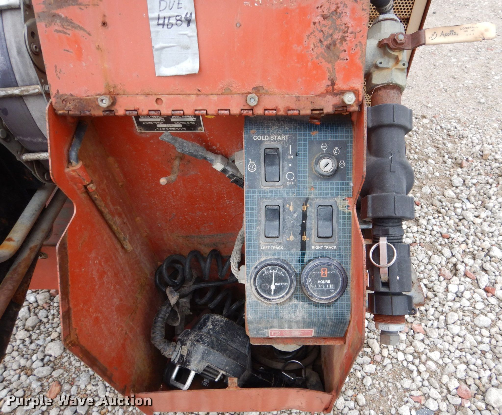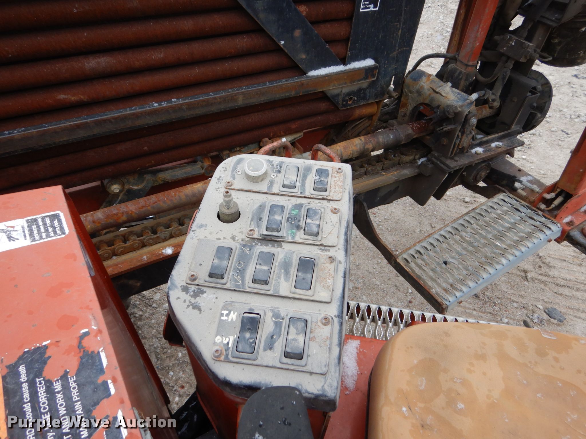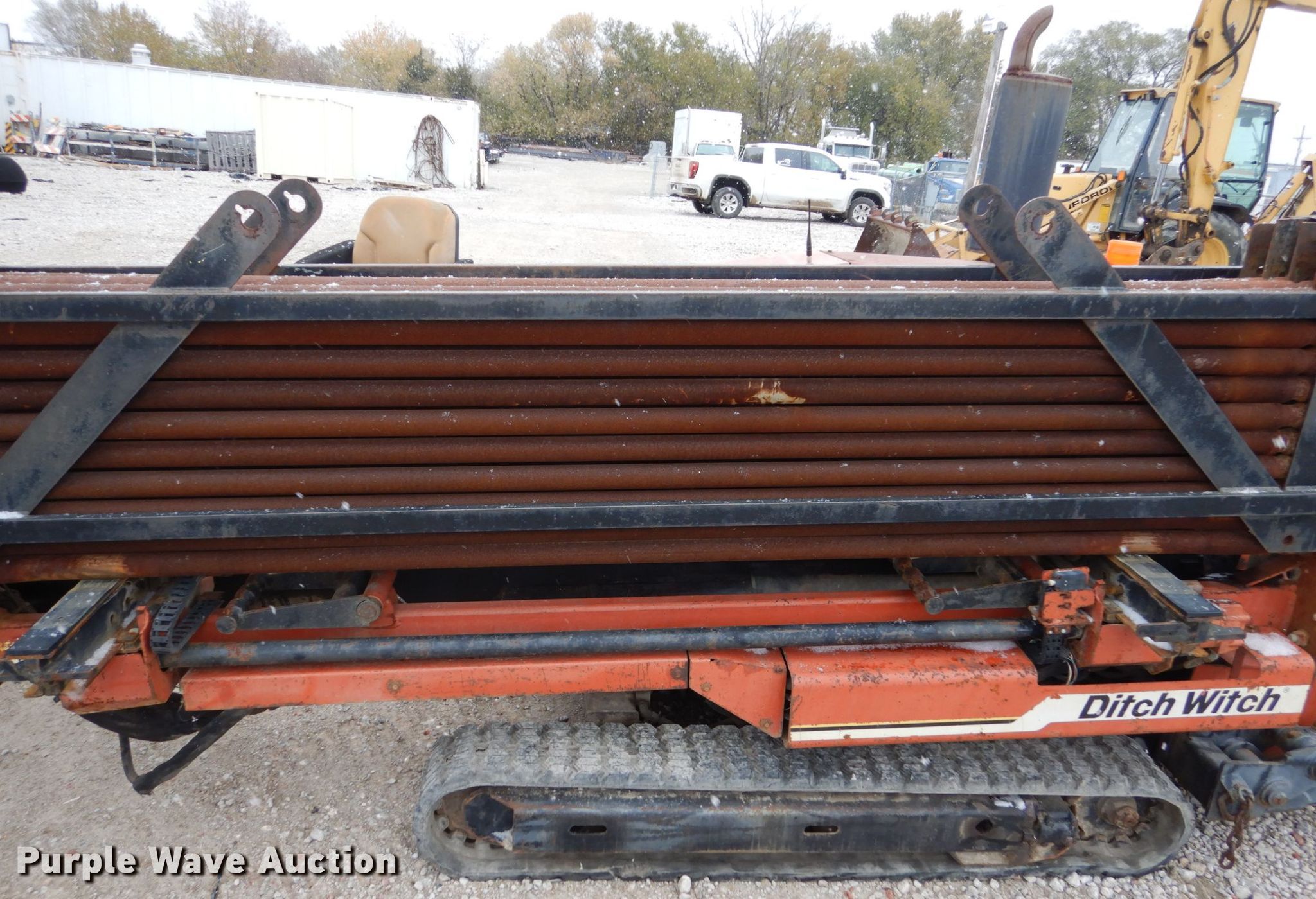 2000 Ditch Witch JT1720 directional boring unit. 4,461 hours on meter, John Deere four cylinder diesel engine, Tethered ground drive remote, (39) drill stems 2" diameter, Automatic rod loader, Hydraulic stake down, Rear hydraulic stabilizers, 9"W rubber tracks, Serial 2T3878. Neuvirth Construction. 6505 John J Pershing Dr. Omaha, NE 68112