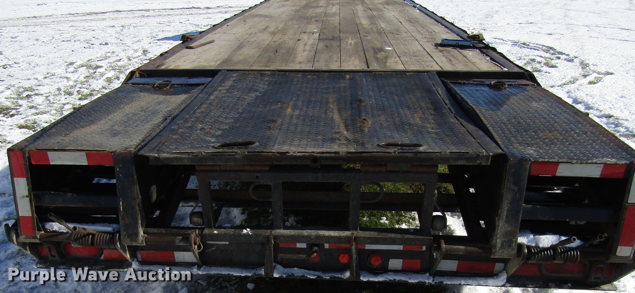 Purple Wave is selling a used Equip. Trailer in Iowa. This item is a 2003 Travalong equipment trailer with the following: 40'L x 102"W overall, 26'L wood deck, 5' tail length, 5'L ramps, Dual leg landing gear, Spring suspension, Electric brakes, Triple axle, 235/85R16 tires, GVWR 21,473 lbs, Contents included