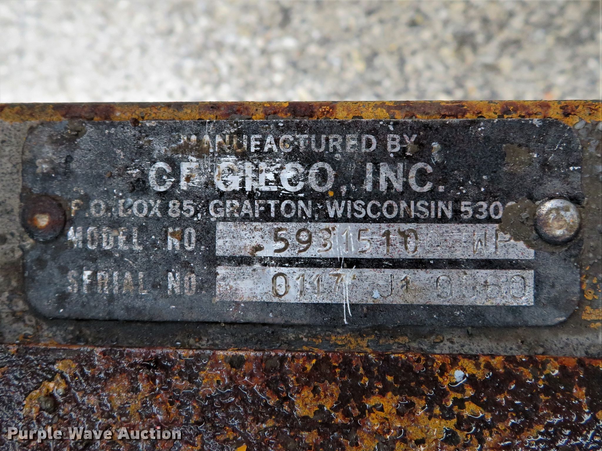 Purple Wave is selling a used Concrete Dispenser in Missouri. This item is a CF Gieco 593151000WP mortar mixer with the following: Honda gas engine, 8 HP, Approximately 12 cu.ft. capacity, ST175/80D13 tires, Serial 0117J10060, Unit# MM002