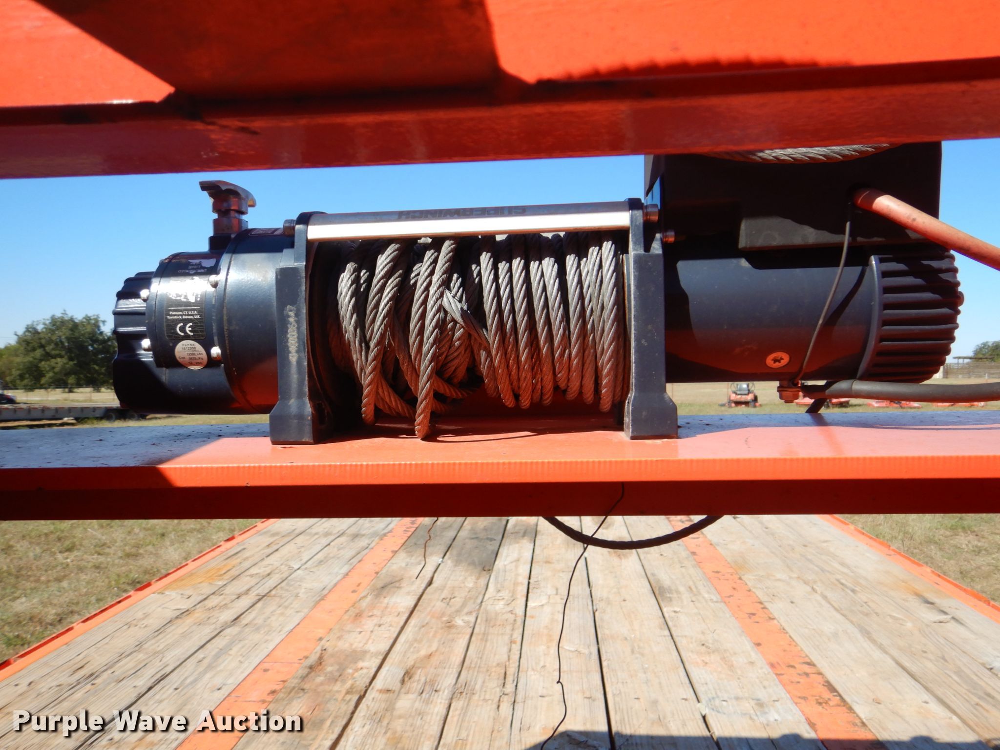 Purple Wave is selling a used Equip. Trailer in Oklahoma. This item is a 2016 PJ Trailers LD342 equipment trailer with the following: 42'L x 102"W overall, 28'L x 102"W deck, 5' tail length, Wood deck, Super Winch Talon 12.5 winch, Dual leg landing gear, Spring suspension, Electric brakes, Tandem axle, 215/75R17.5 tires, GVWR 30,000 lbs, GAWR 12,000 lbs