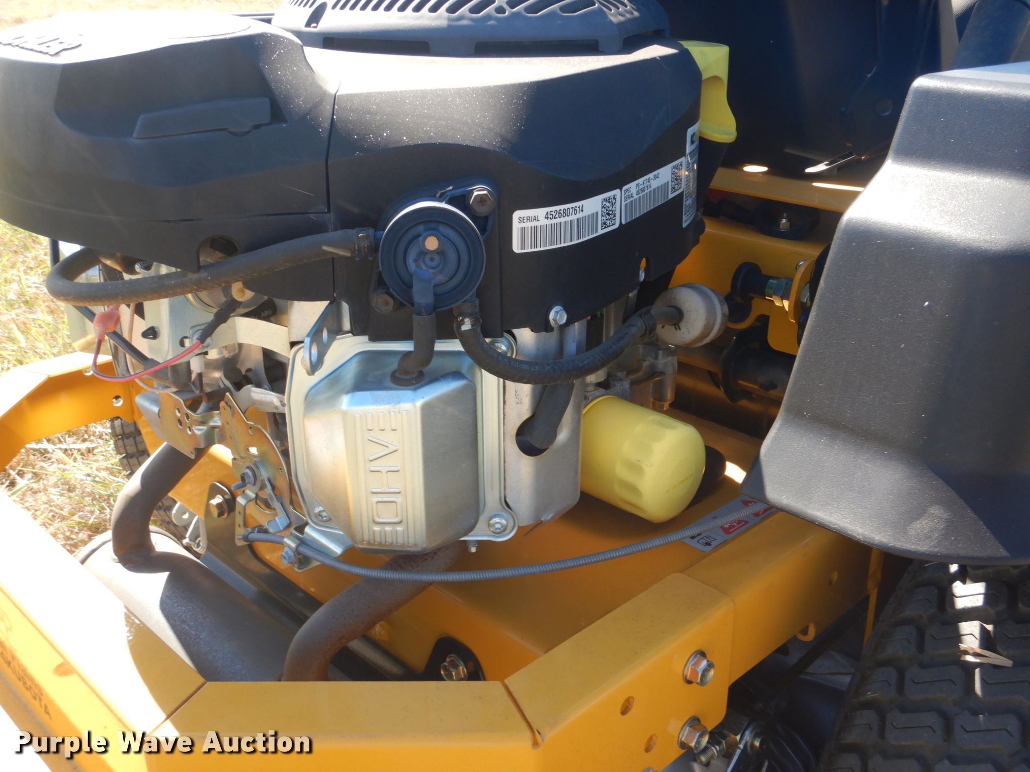 Purple Wave is selling a used Lawn Mower in Oklahoma. This item is a 2019 Hustler Raptor Flip-Up 933614 ZTR lawn mower with the following: 8 hours on meter, 48" cut, Kohler KT740 725cc V-twin gas engine, 25 HP, Hydrostatic transmission, QuickFlip mower deck, OTR 9x3.50-4.2.25 front tires, OTR 20x8.00-10 NHS rear tires, Full limited warranty for four years or 400 hours from the date of purchase, Serial 1510B137