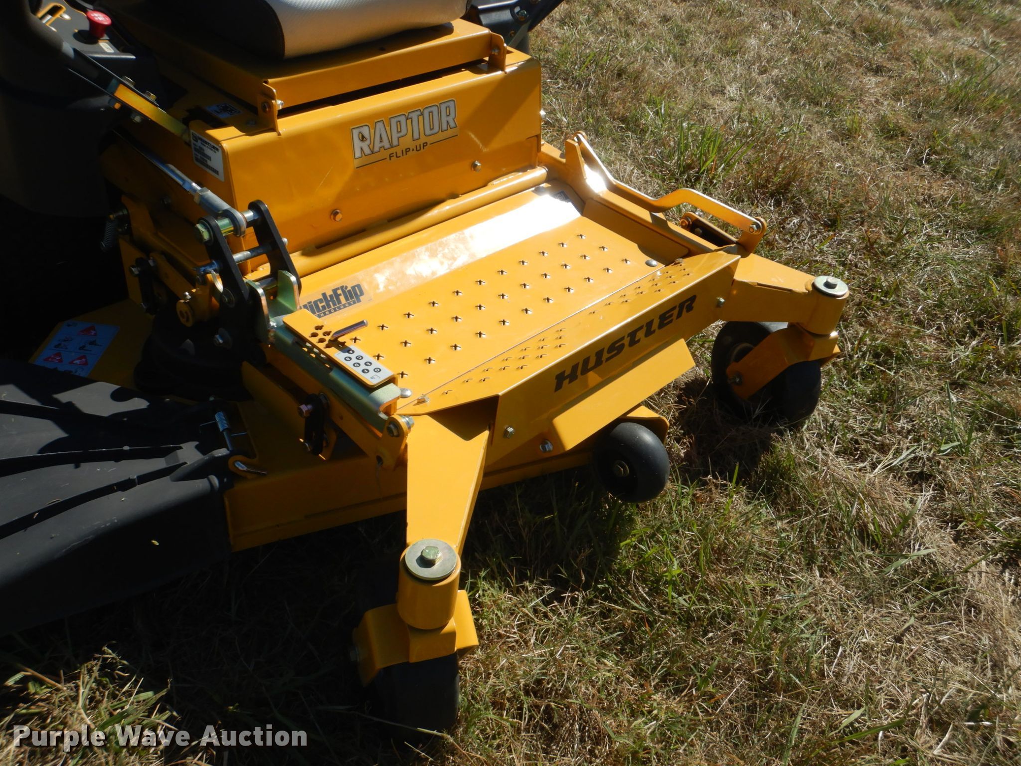 This 2019 Hustler Raptor Flip-Up 933614 ZTR lawn mower will sell to the highest bidder regardless of price.