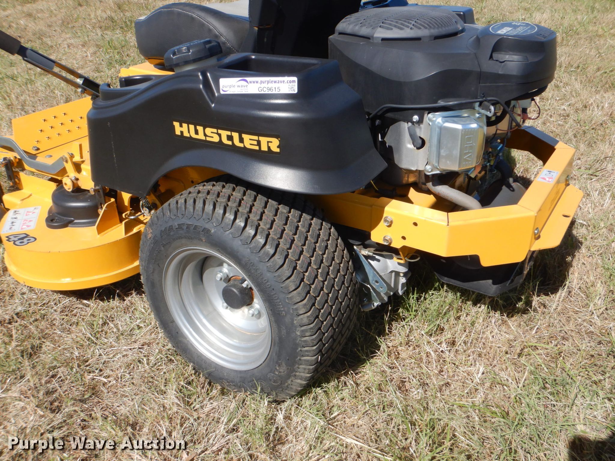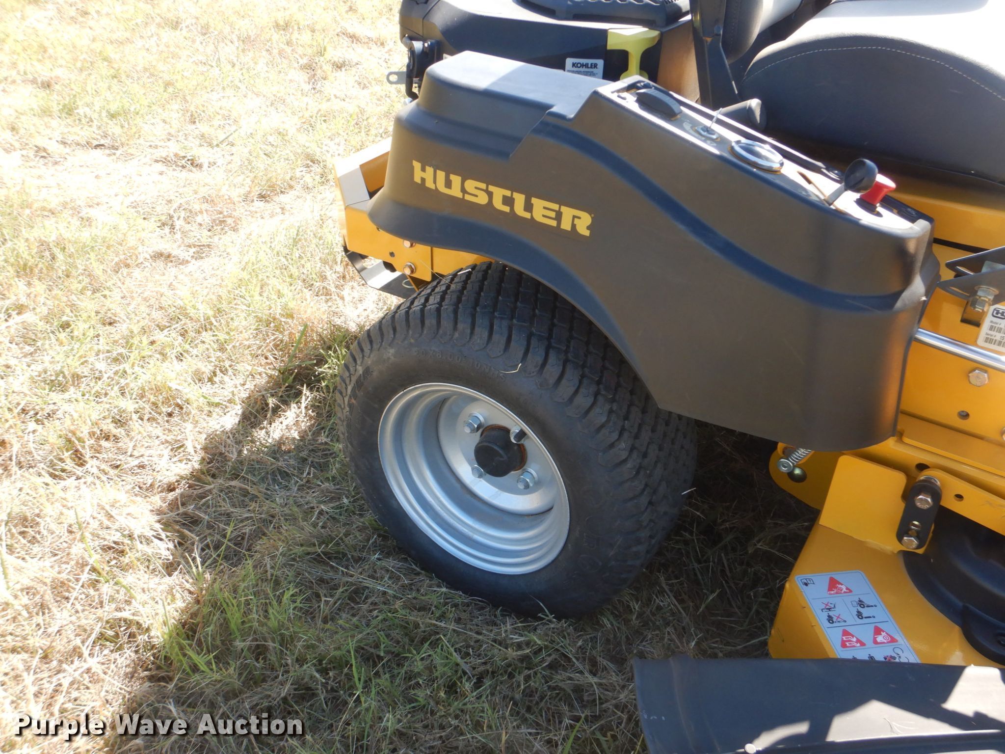 Purple Wave is selling a used Lawn Mower in Oklahoma. This item is a 2019 Hustler Raptor Flip-Up 933614 ZTR lawn mower with the following: 4 hours on meter, 48" cut, Kohler KT740 725cc V-twin gas engine, 25 HP, Hydrostatic transmission, QuickFlip mower deck, OTR 9x3.50-4.2.25 front tires, OTR 20x8.00-10 NHS rear tires, Full limited warranty for four years or 400 hours from the date of purchase, Serial 1510B140