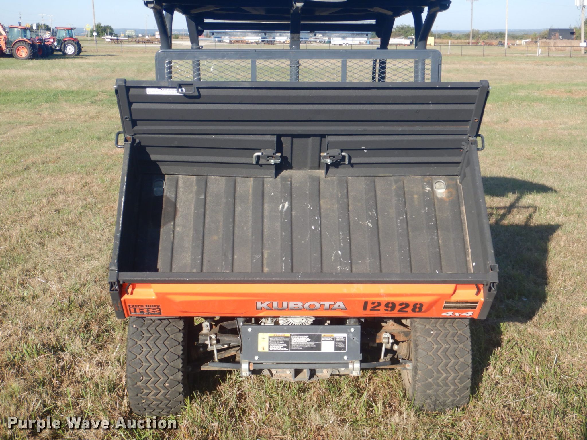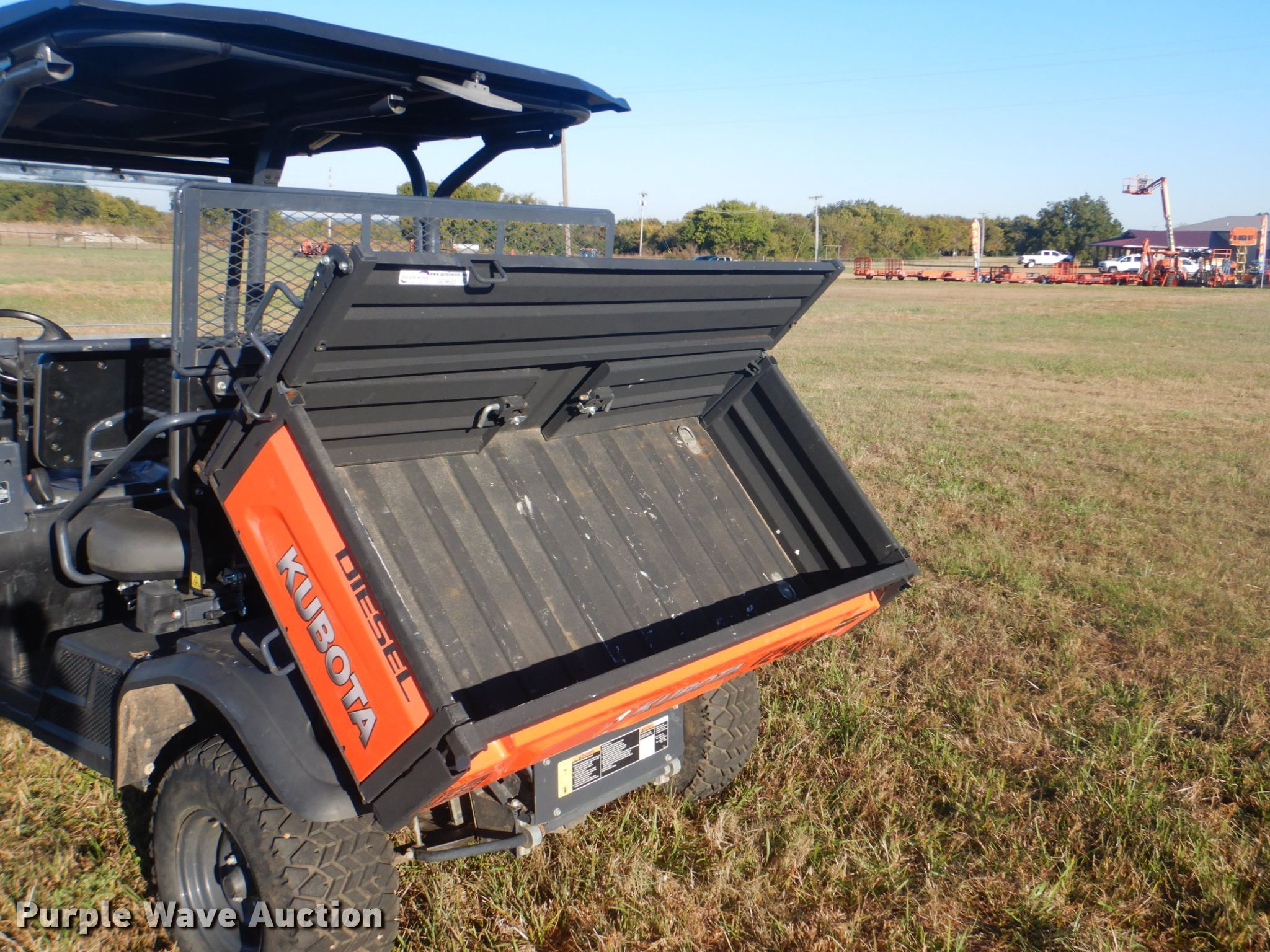 Purple Wave is selling a used Utility Vehicle in Oklahoma. This item is a 2016 Kubota RTV-X1140 utility vehicle with the following: 3,331 miles on odometer, 570 hours on meter, Kubota D1105-EF02 1.1L three cylinder diesel engine, 18.5 kW, Serial 1GA5734, Two speed hydrostatic transmission, Four wheel drive, Differential lock, OROPS, Four passenger capacity, 48"L x 60"W dump bed, Electric/hydraulic dump, OTR 25x10.00-12 NHS tires