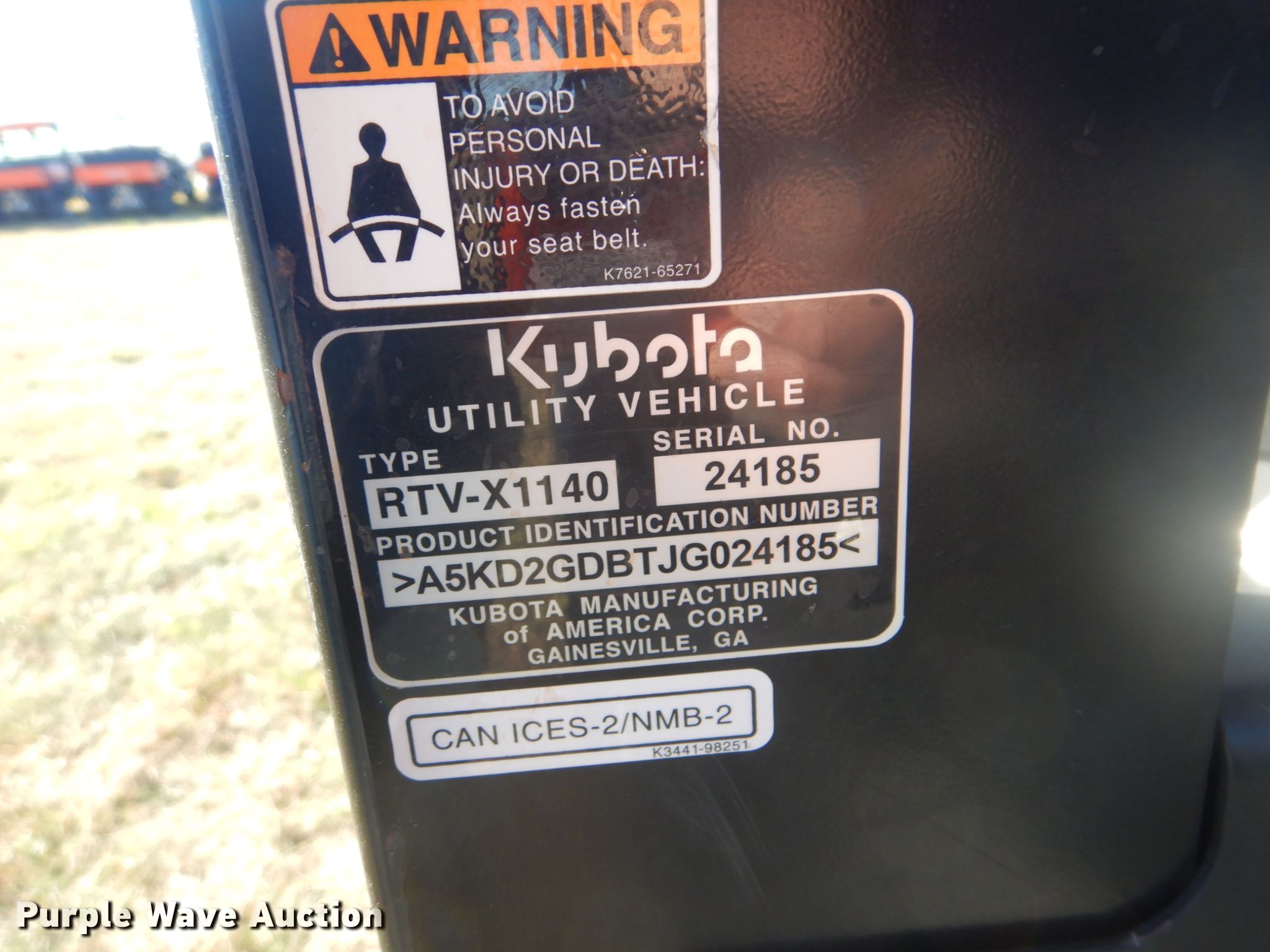 2018 Kubota RTV-X1140 utility vehicle | SOLD! December 10 Great Plains Kubota Equipment Auction