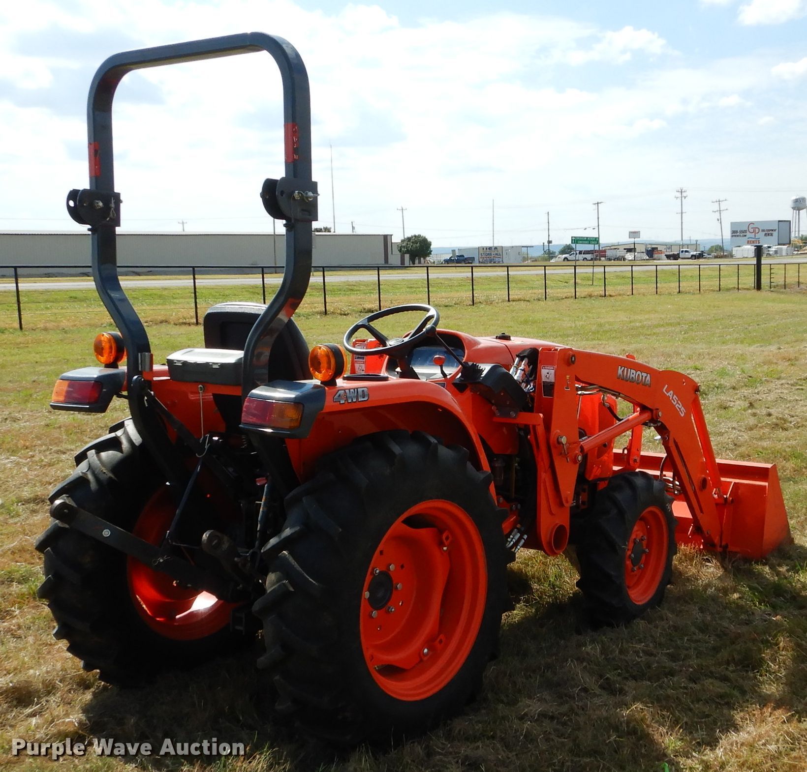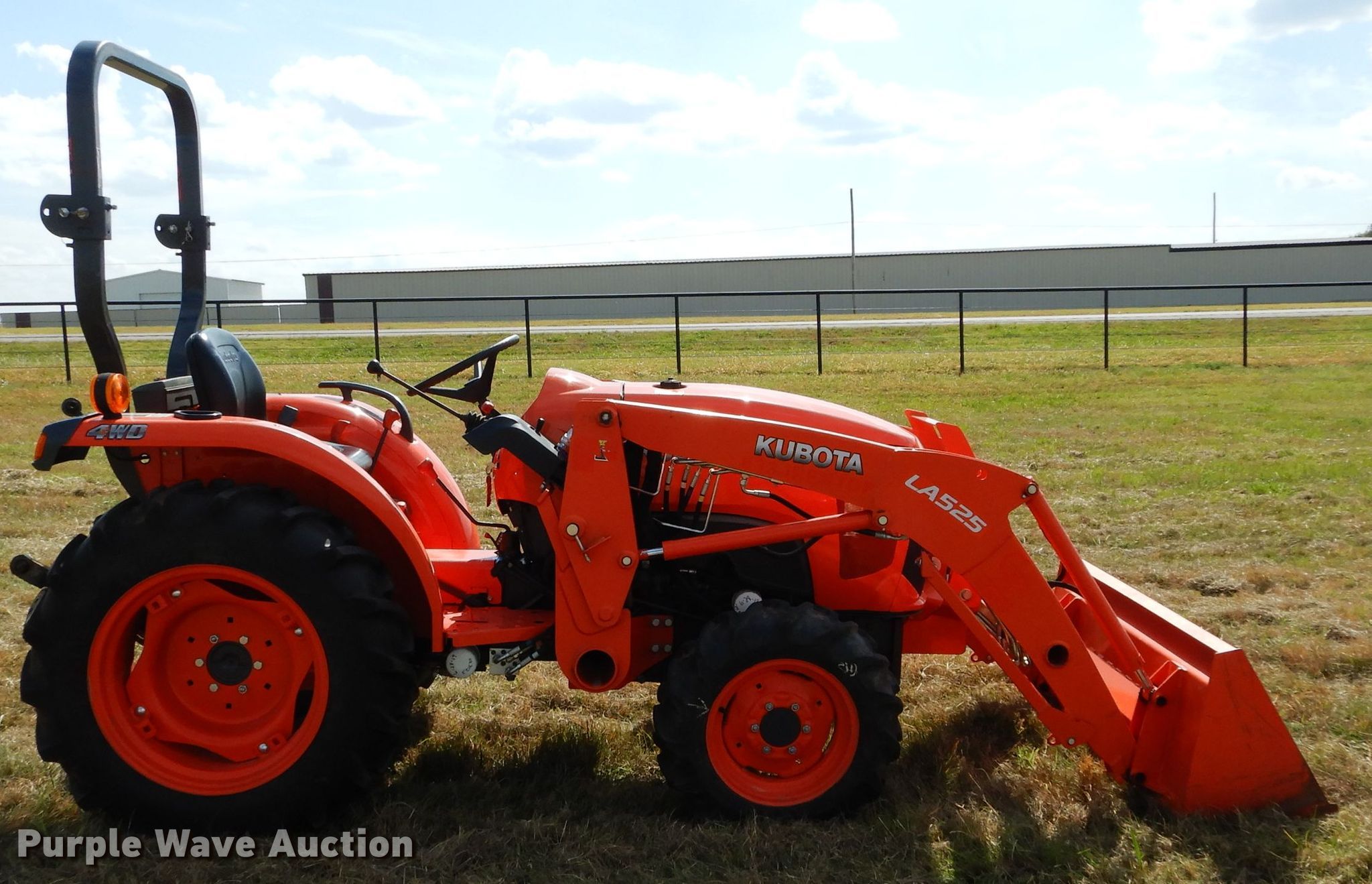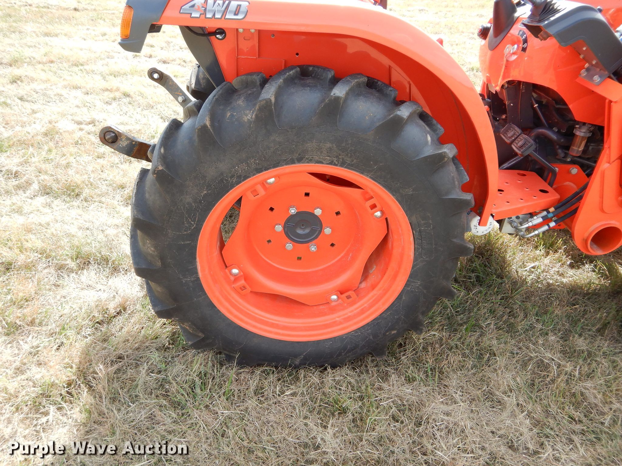 Purple Wave is selling a used Tractor in Oklahoma. This item is a 2017 Kubota L3301D MFWD tractor with the following: 404 hours on meter, Kubota TC610-15300 1.8L three cylinder diesel engine, 33 HP, Serial 7GC4987, Synchro transmission, 8F-8R gears, Differential lock, Two post ROPS, Kubota LA525 loader, Kubota 60"W bucket, Joystick controls, Three point, Top link, 540 PTO, 67" wheelbase, Goodyear 7.2-16 front tires, Titan 11.2-24 rear tires, Serial 62179