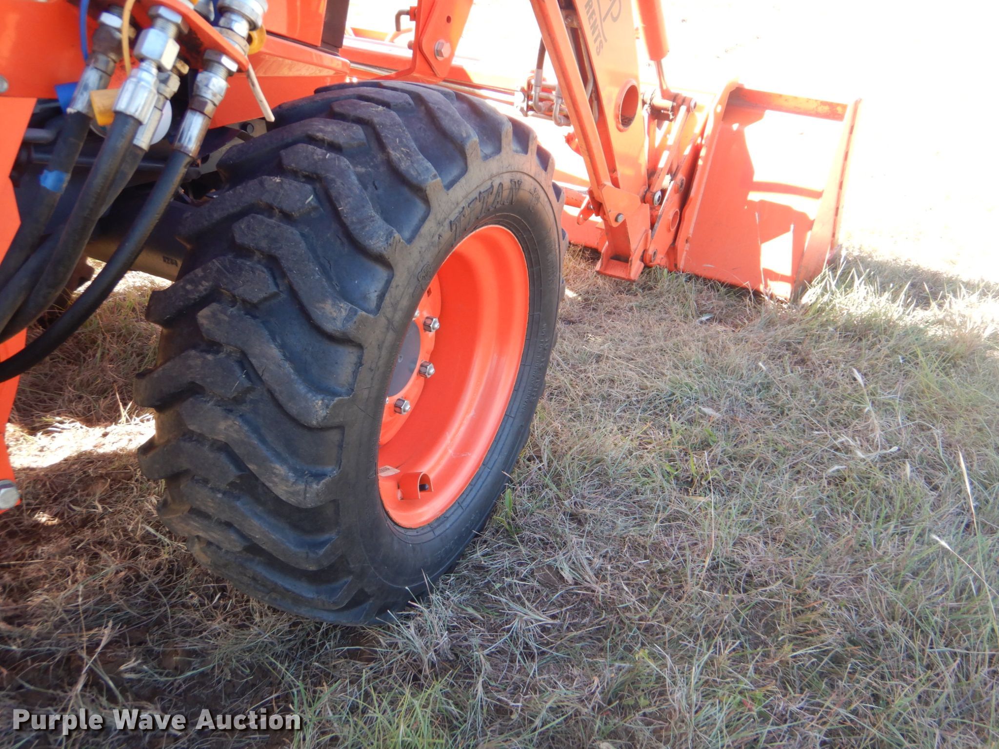 Purple Wave is selling a used Tractor in Oklahoma. This item is a 2016 Kubota L3560D MFWD tractor with the following: 801 hours on meter, Kubota three cylinder diesel engine, Hydrostatic transmission, 3F-3R gears, Differential lock, Kubota LA805 loader, 70"W bucket, Joystick controls, Three point, 540 PTO, 10-16.5 front tires, 420/70-24 rear tires, Serial 31782