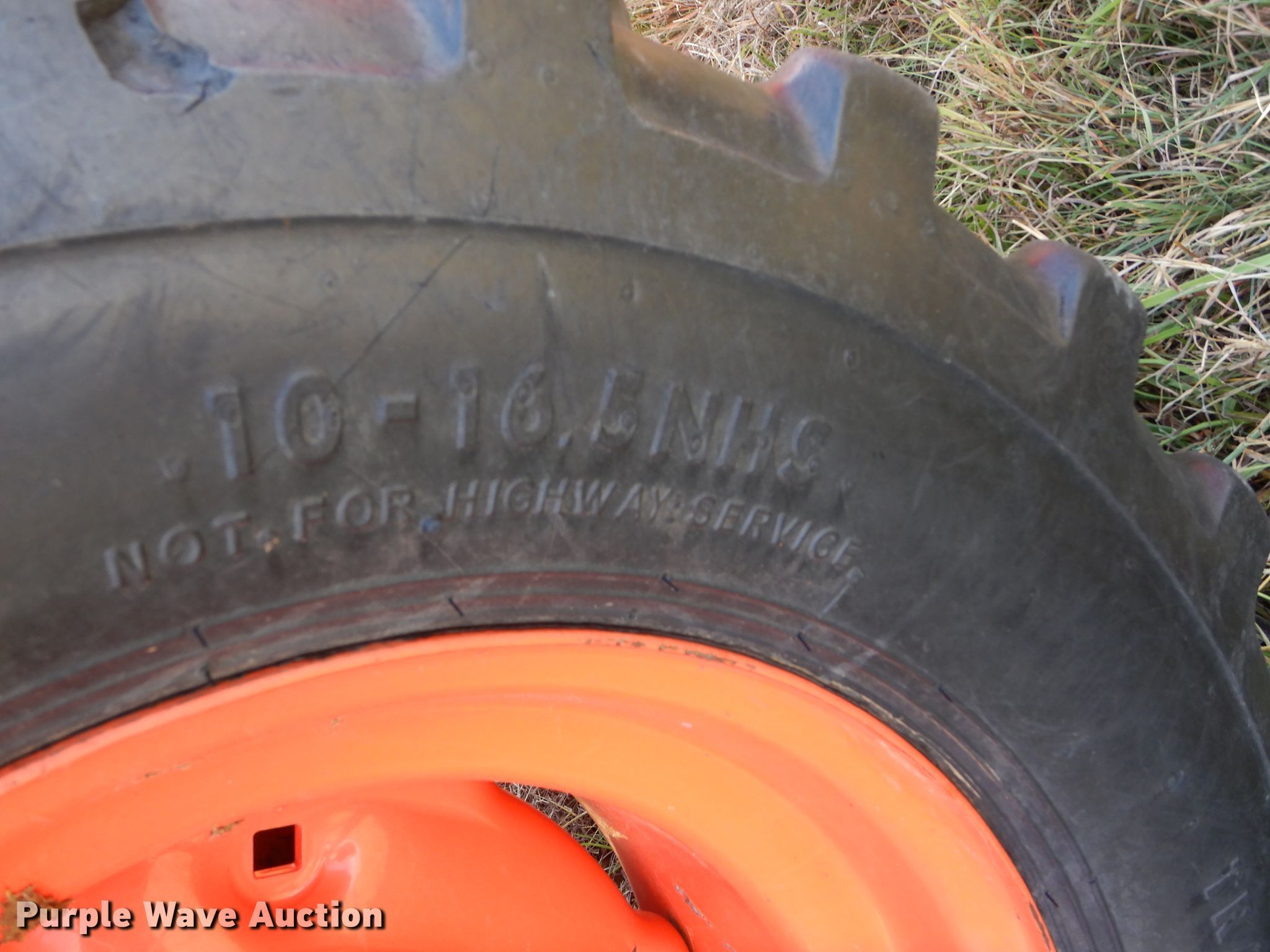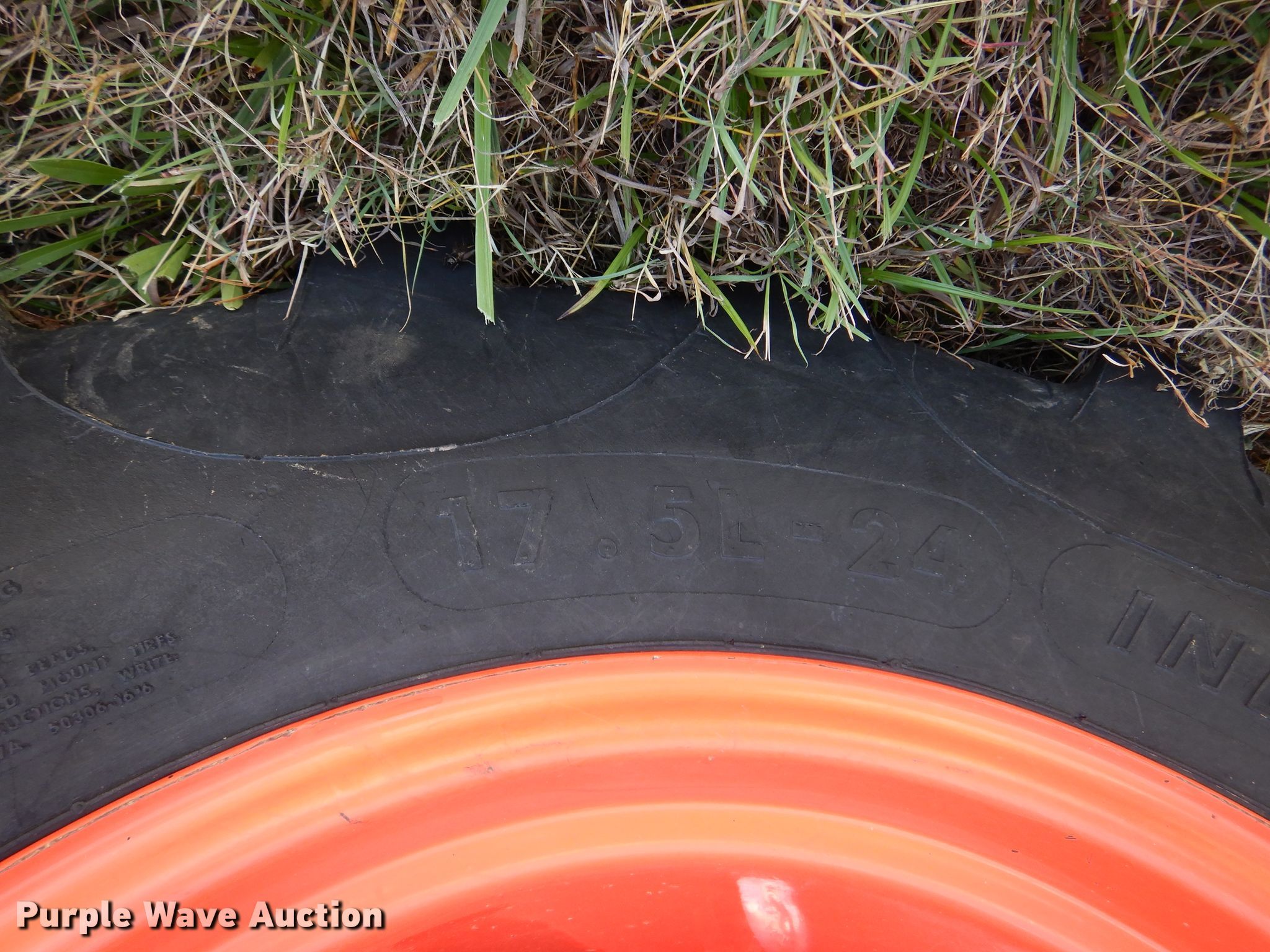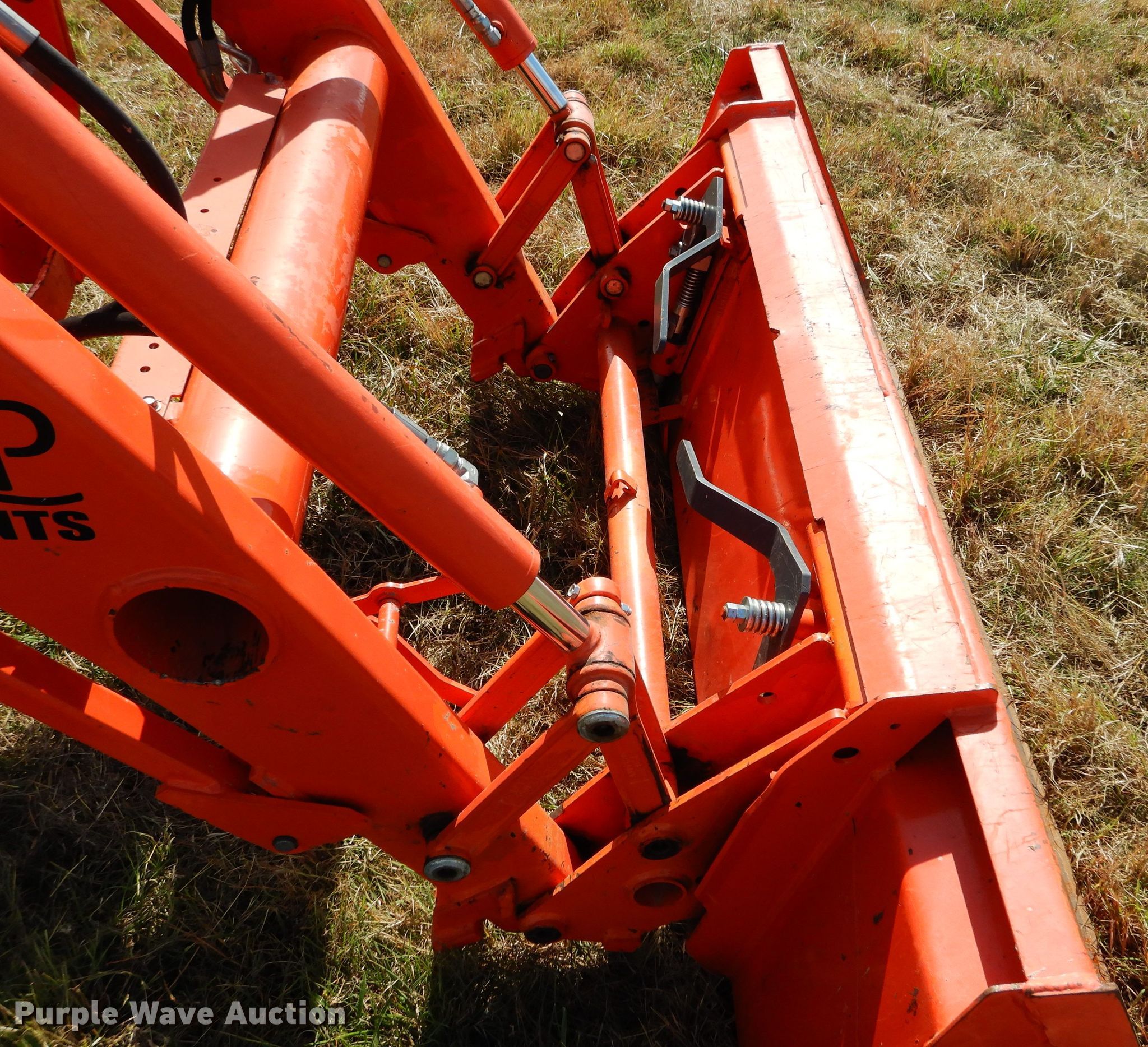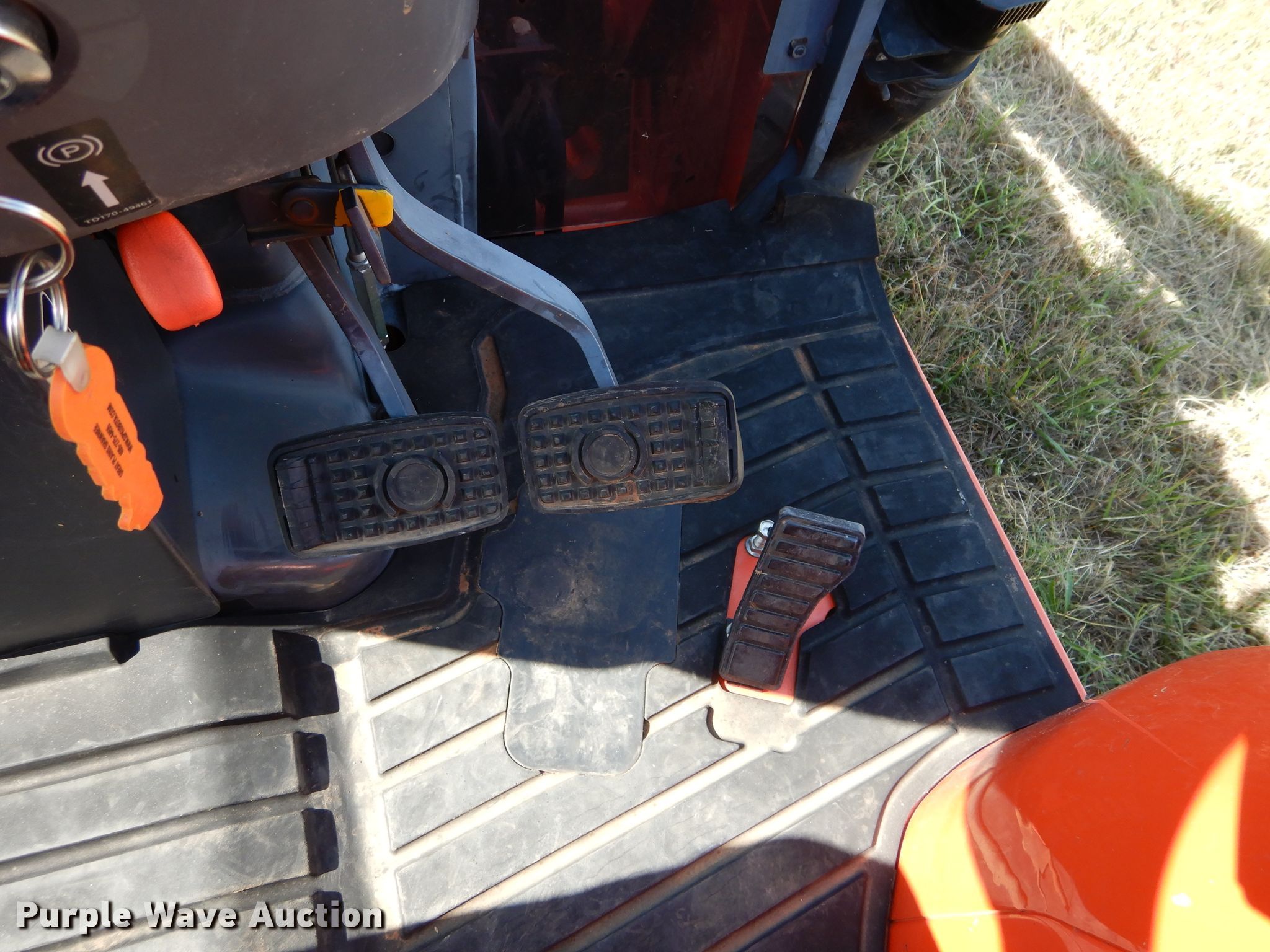 Purple Wave is selling a used Tractor in Oklahoma. This item is a 2017 Kubota L4760D MFWD tractor with the following: 602 hours on meter, Kubota 2.4L four cylinder diesel engine, 49 HP, Glide transmission, 12F-8R gears, Left-hand reverser, Two post ROPS, Kubota LA1055 loader, Kubota L2256 bucket, 66"W, Quick attach, Joystick controls, Three point, 540 PTO, 75" wheelbase, Titan 10-16.5 NHS front tires, Titan 17.5-24 rear tires, Serial 30835