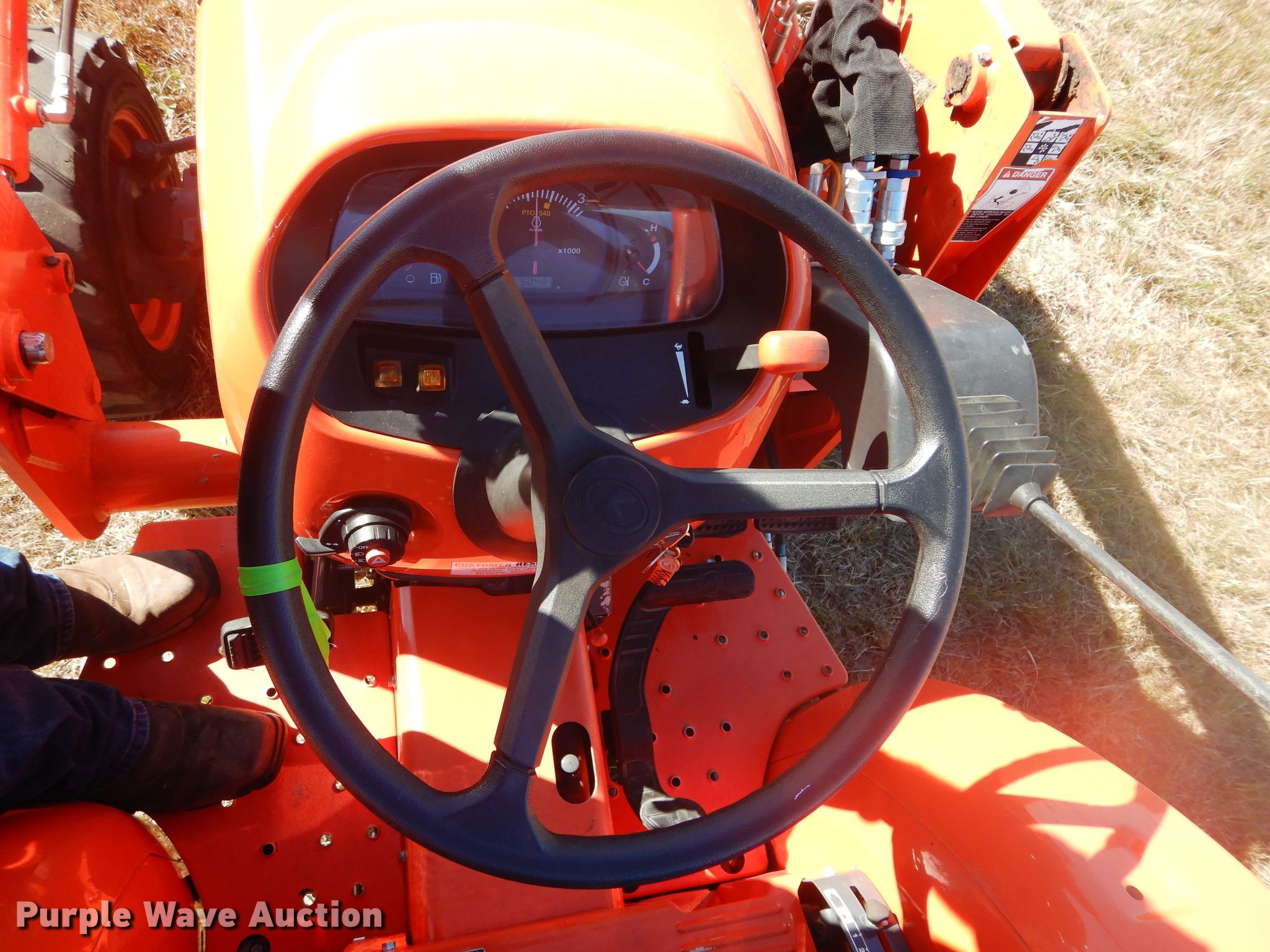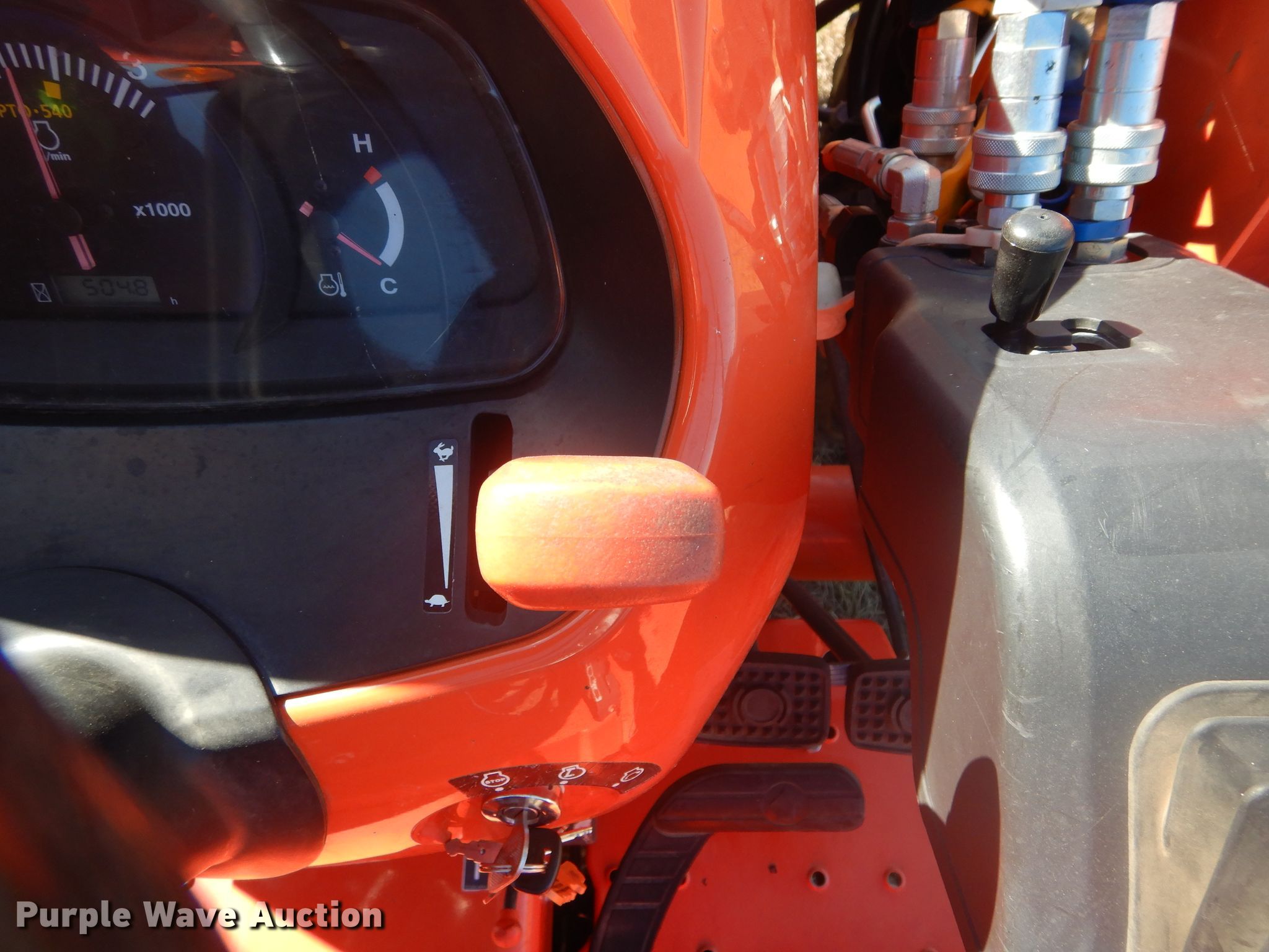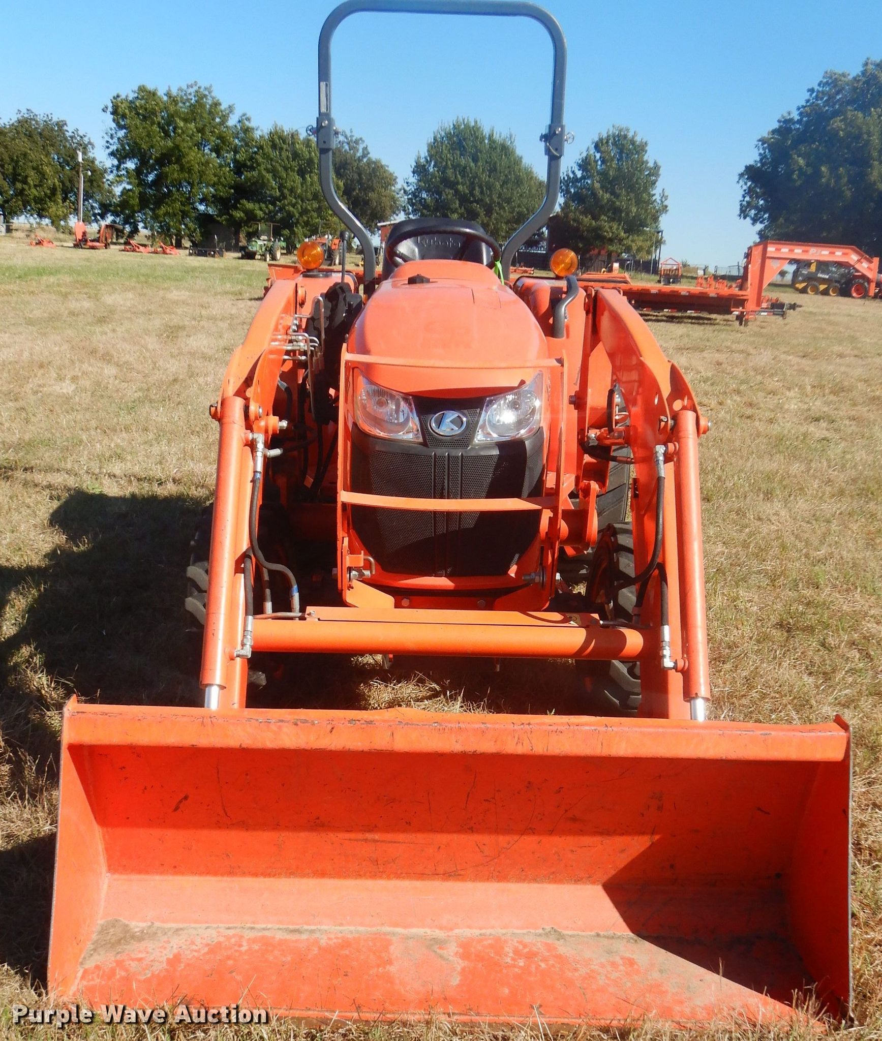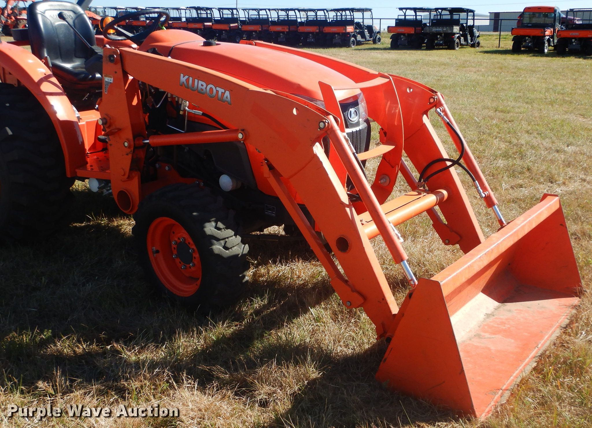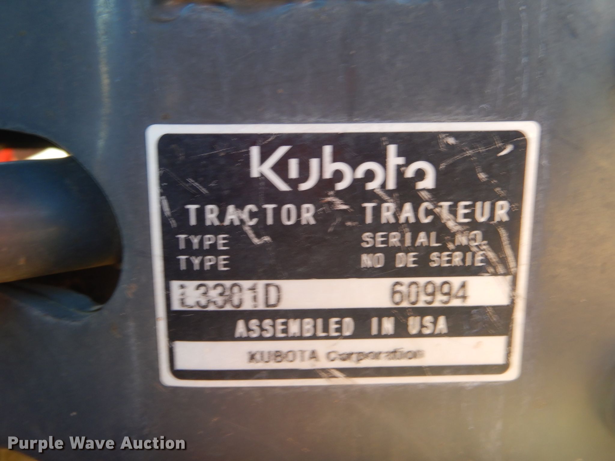 Purple Wave is selling a used Tractor in Oklahoma. This item is a 2017 Kubota L3301D MFWD tractor with the following: 505 hours on meter, Kubota TC620-55300 1.8L three cylinder diesel engine, 33 HP, Serial 7FU9915, Hydrostatic transmission, 3F-3R gears, Two post ROPS, Kubota LA525FL loader, 60"W bucket, Joystick controls, Three point, Top link, 540 PTO, 65" wheelbase, 27x8.50-15 NHS front tires, 15x19.5 NHS rear tires, Serial 60994