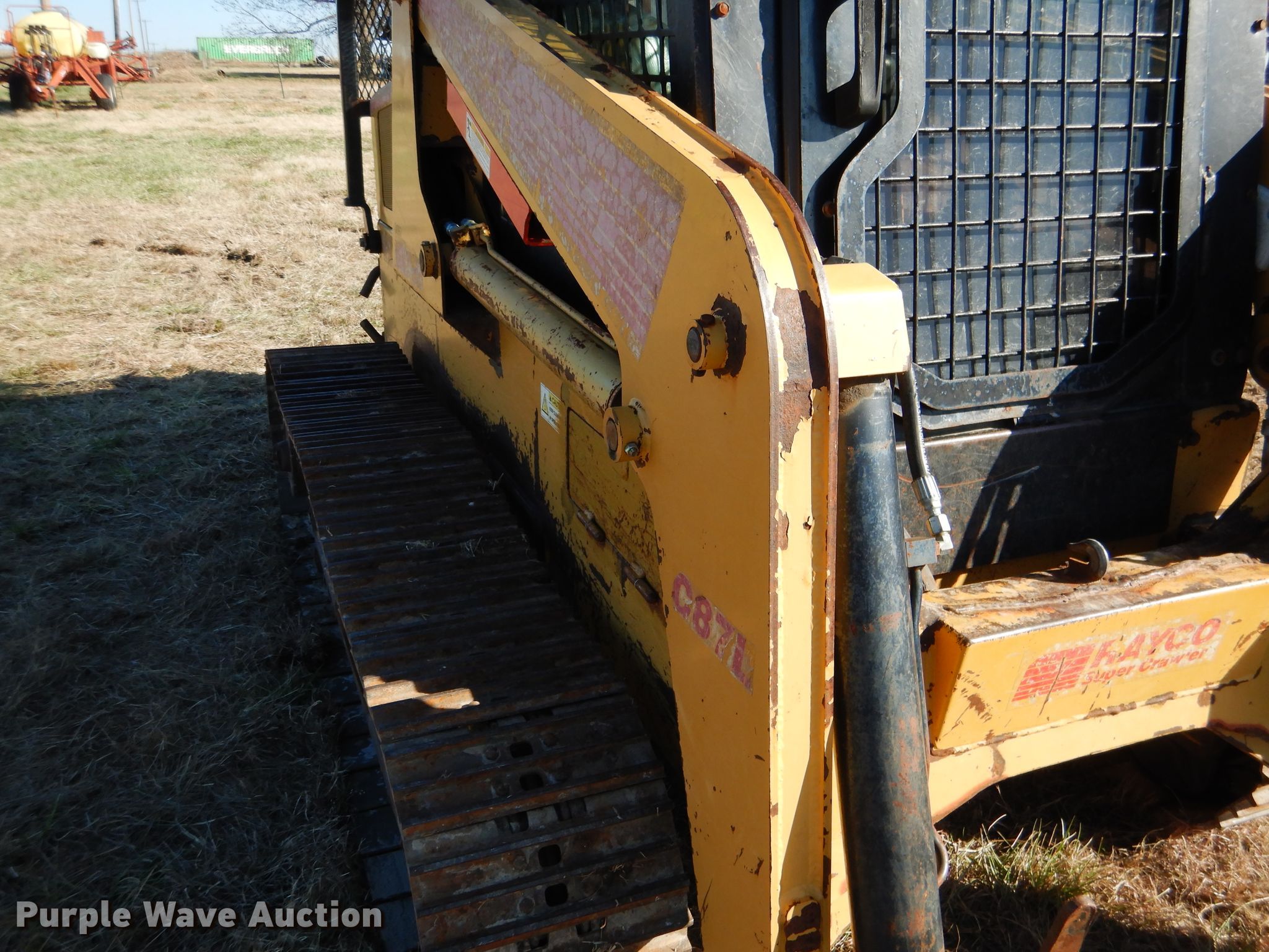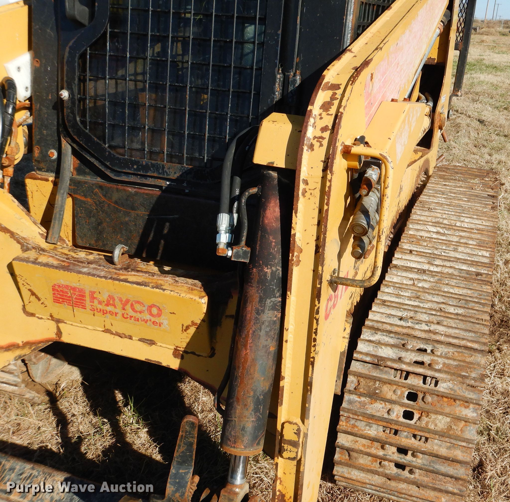Purple Wave is selling a used Tracked Skid Steer Loader in Oklahoma. This item is a 2005 Rayco C87L skid steer with the following: 3,598 hours on meter, Deutz BF4M2011 3.1L four cylinder diesel engine, 71 HP, Serial 10400312, Two speed hydrostatic transmission, Enclosed cab, Hand bucket controls, Auxiliary hydraulics, Manual quick coupler, Rear winch setup, No winch included, 14"W tracks, Rear light missing, Serial C87L00070105