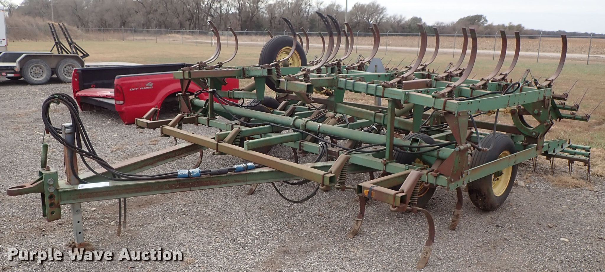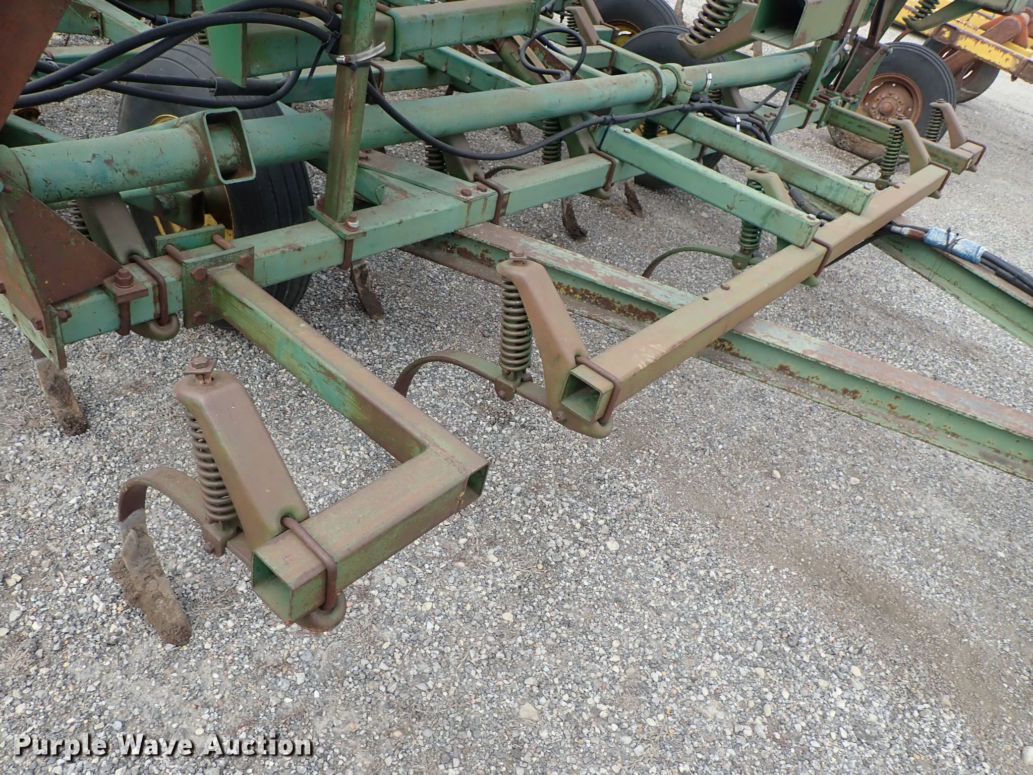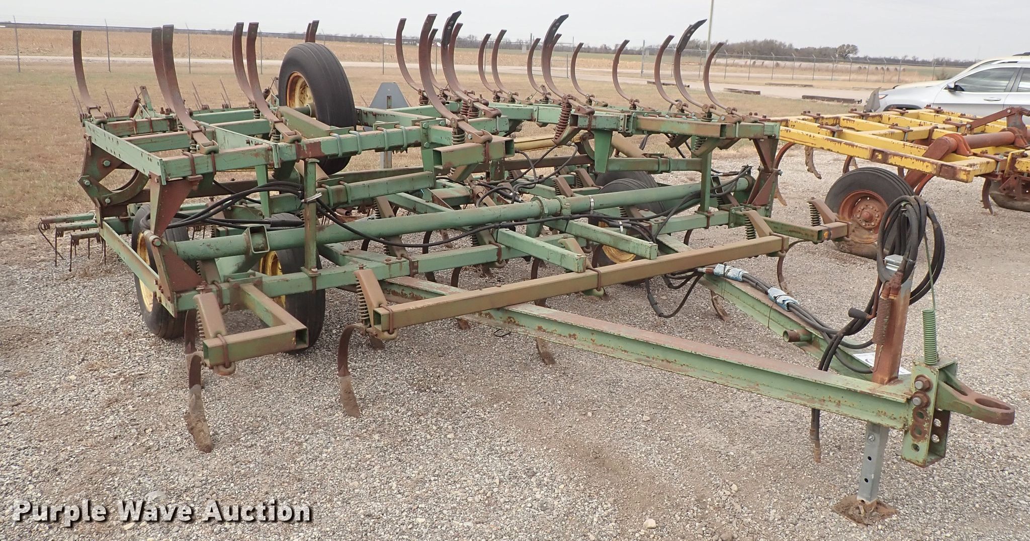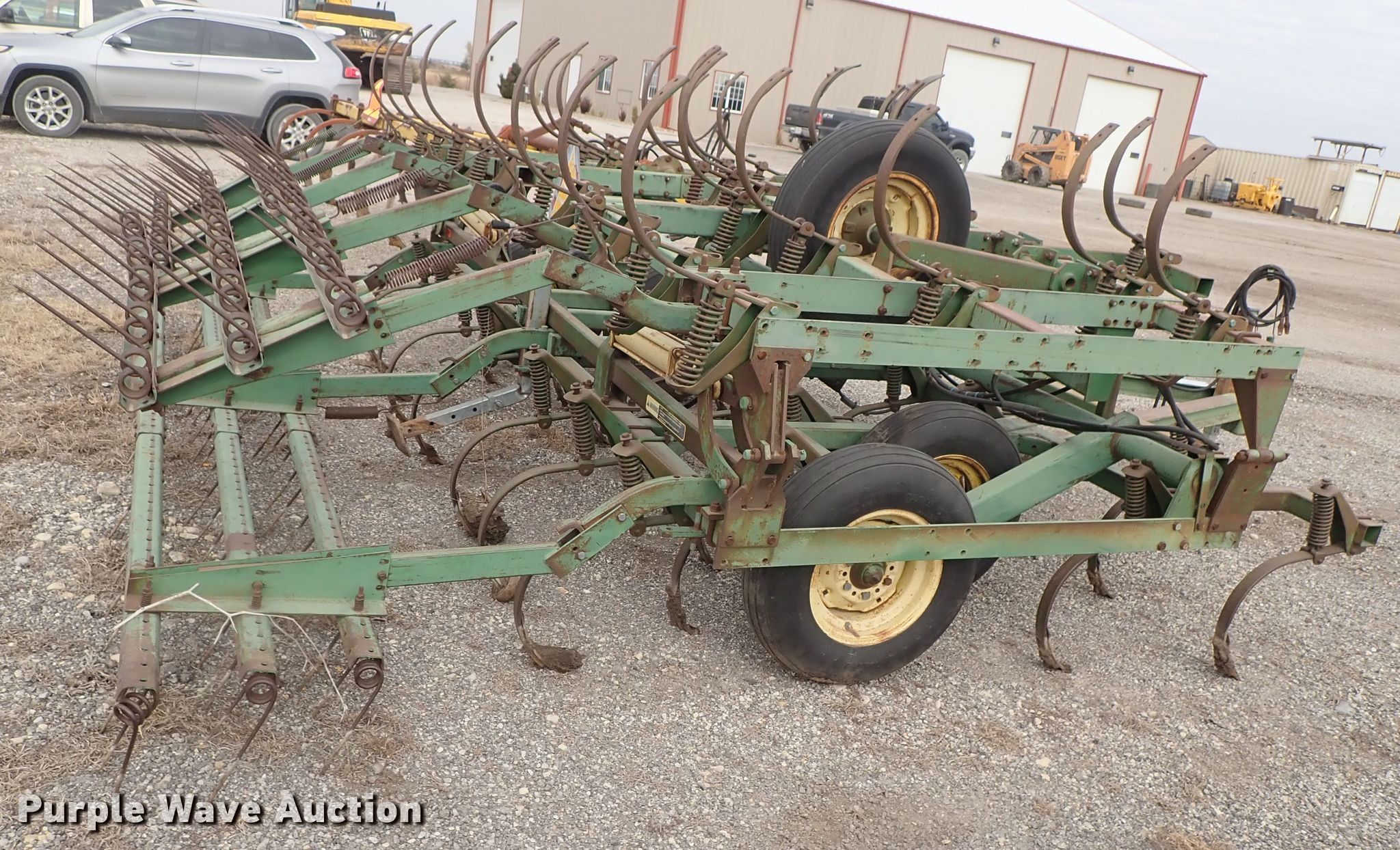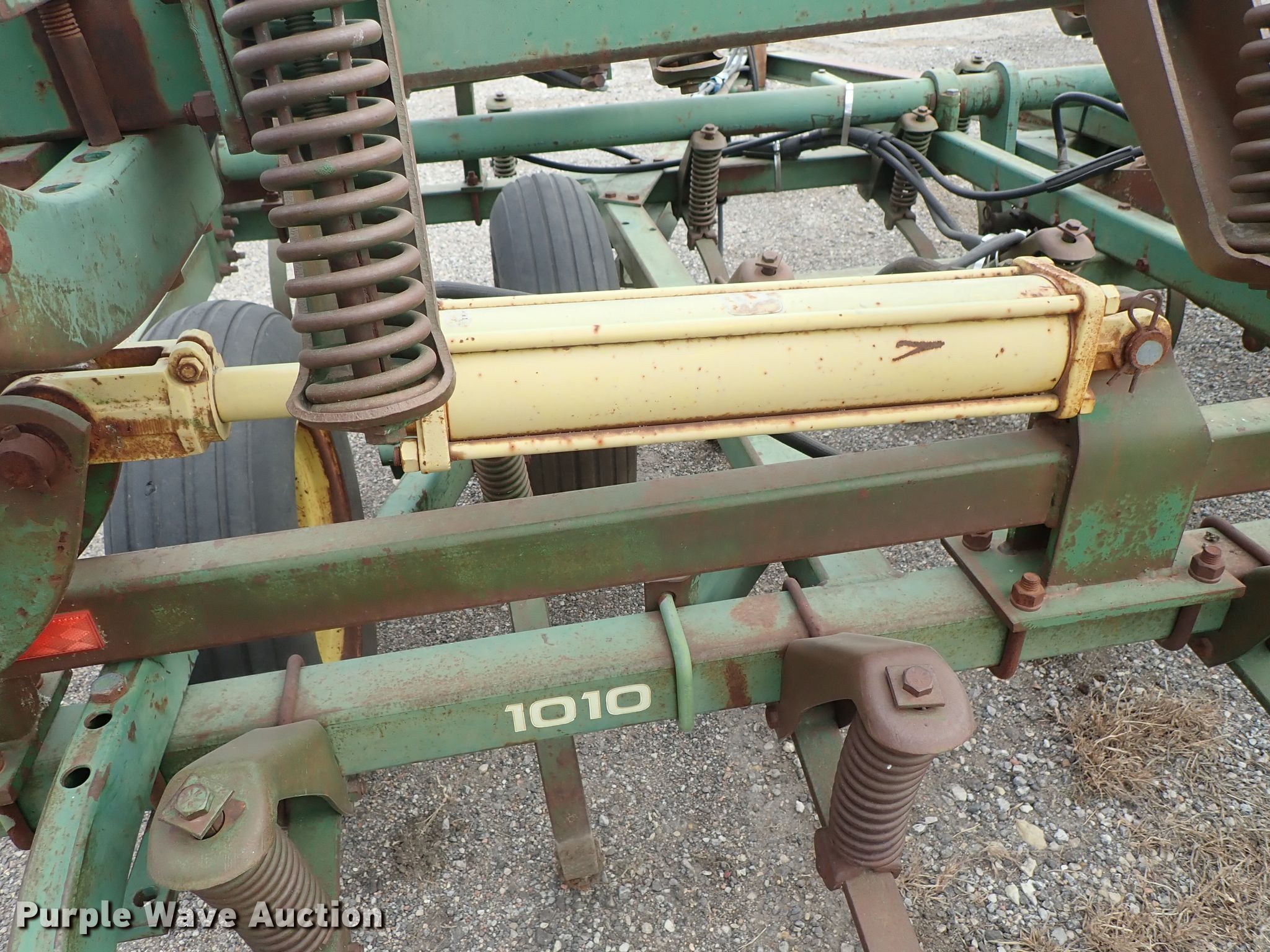 Purple Wave is selling a used Tillage Other in Kansas. This item is a John Deere 1010 cultivator with the following: Approx. 24'W, Rear tine harrow, Hydraulic lift and fold, 7.60-15 tires