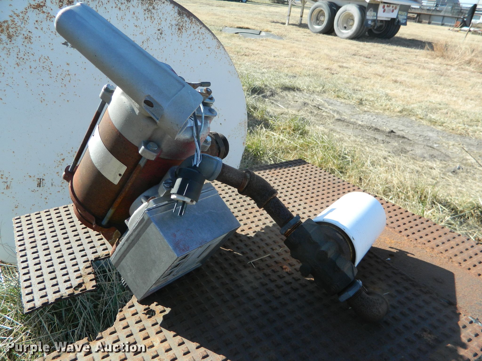 Steel fuel tank. 48" x 66", 115V pump 1/3 HP. Special load out terms, see item removal information. Wesley Hunt Estate. Plainville, KS 67663