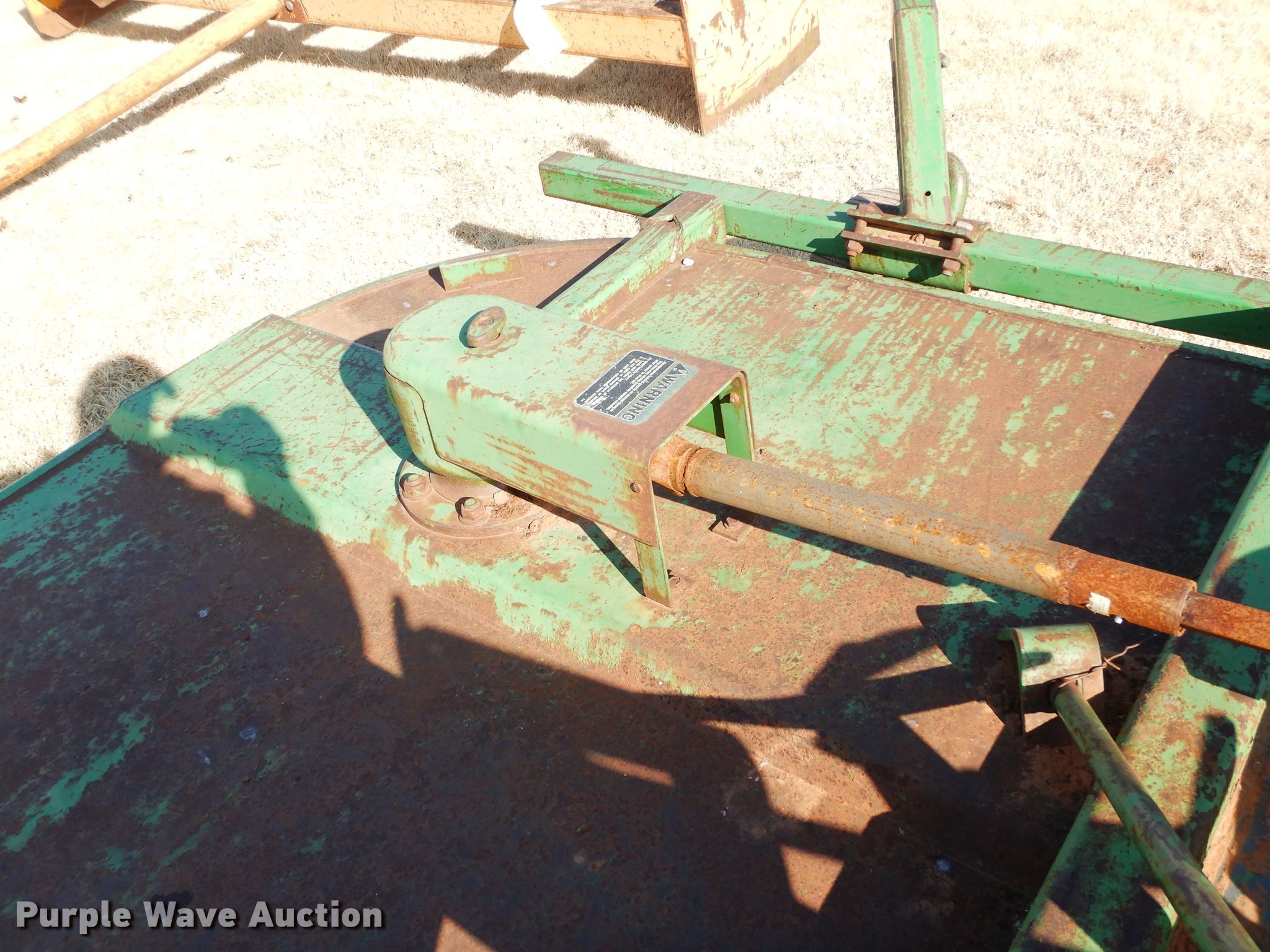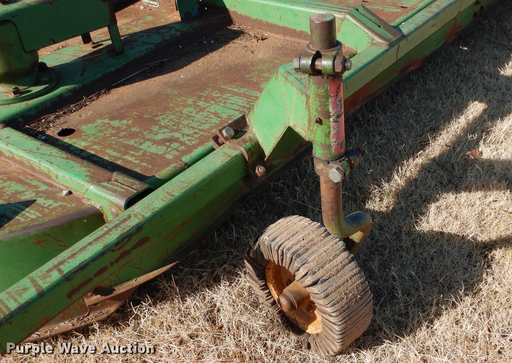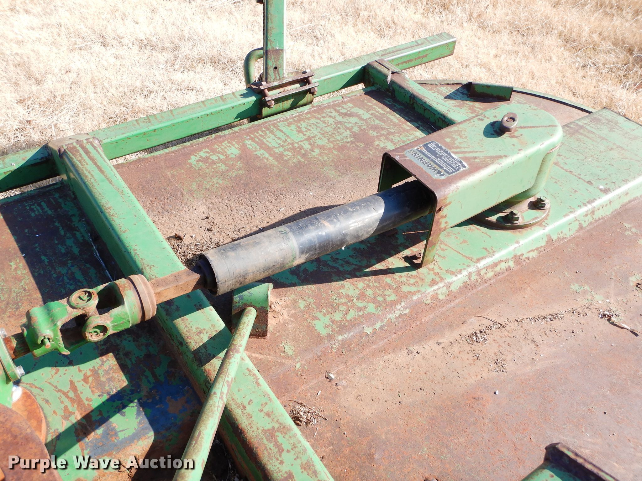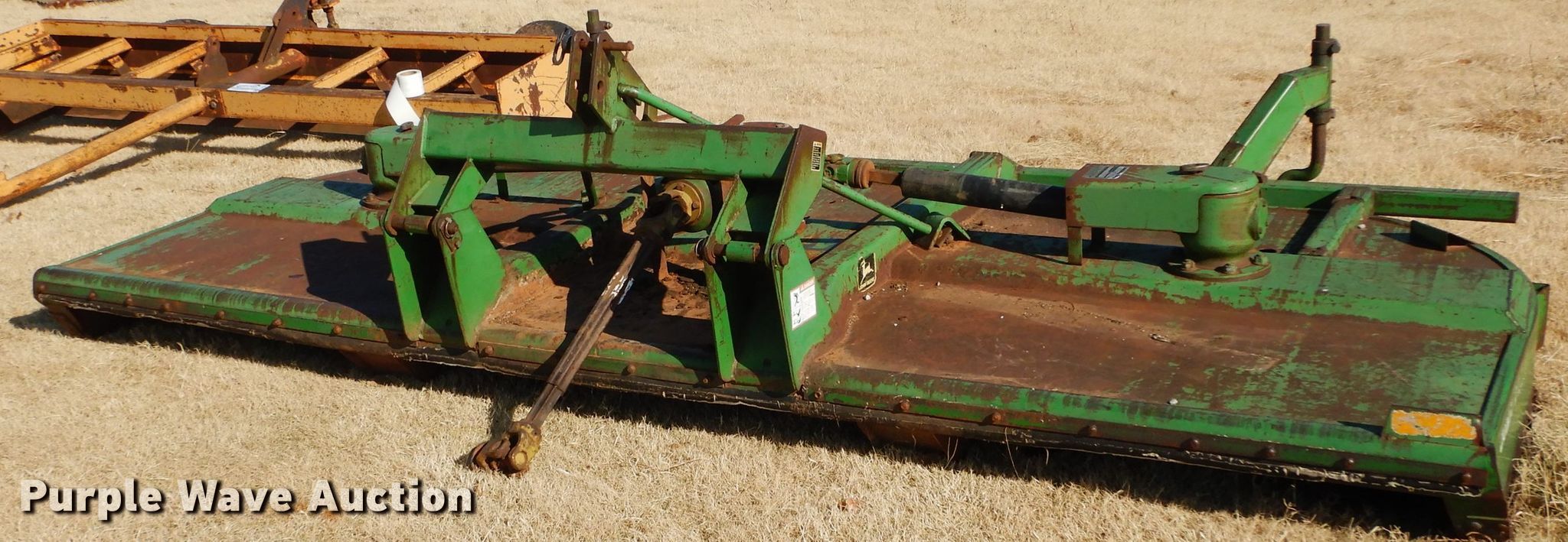 Purple Wave is selling a used Mower, Cutter, Shredder in Oklahoma. This item is a John Deere rotary mower with the following: 14'W, 1000 PTO, Three point, One gearbox bearings need to be replaced, Serial W01418D005707