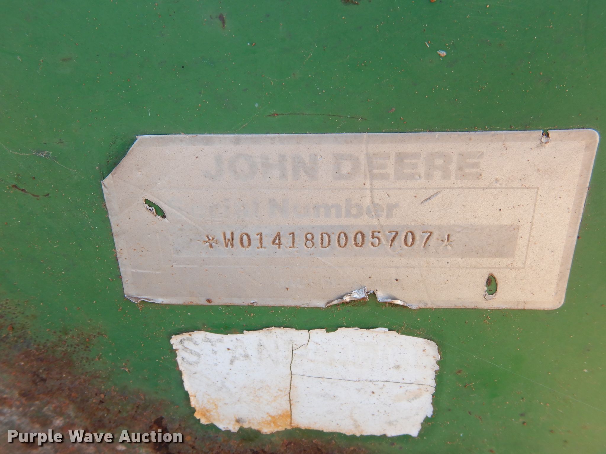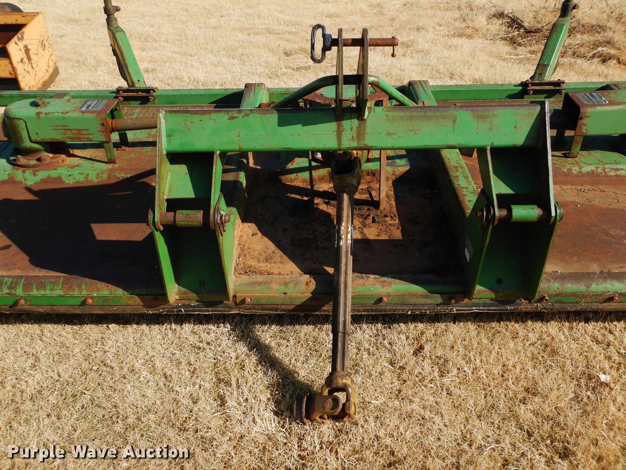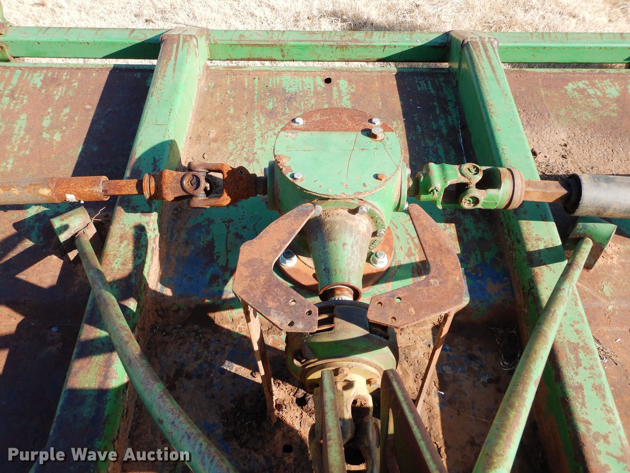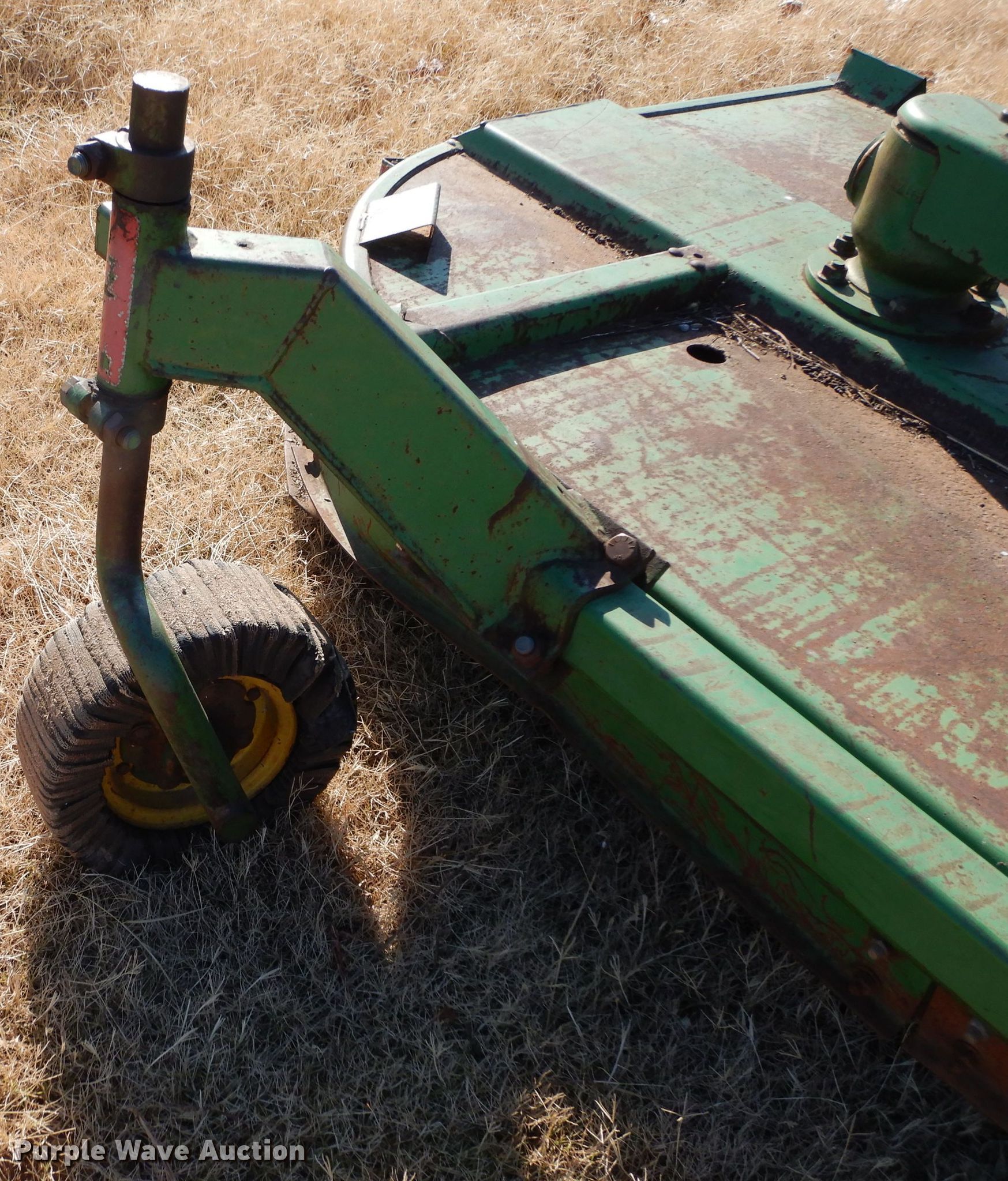 Purple Wave is selling a used Mower, Cutter, Shredder in Oklahoma. This item is a John Deere rotary mower with the following: 14'W, 1000 PTO, Three point, One gearbox bearings need to be replaced, Serial W01418D005707