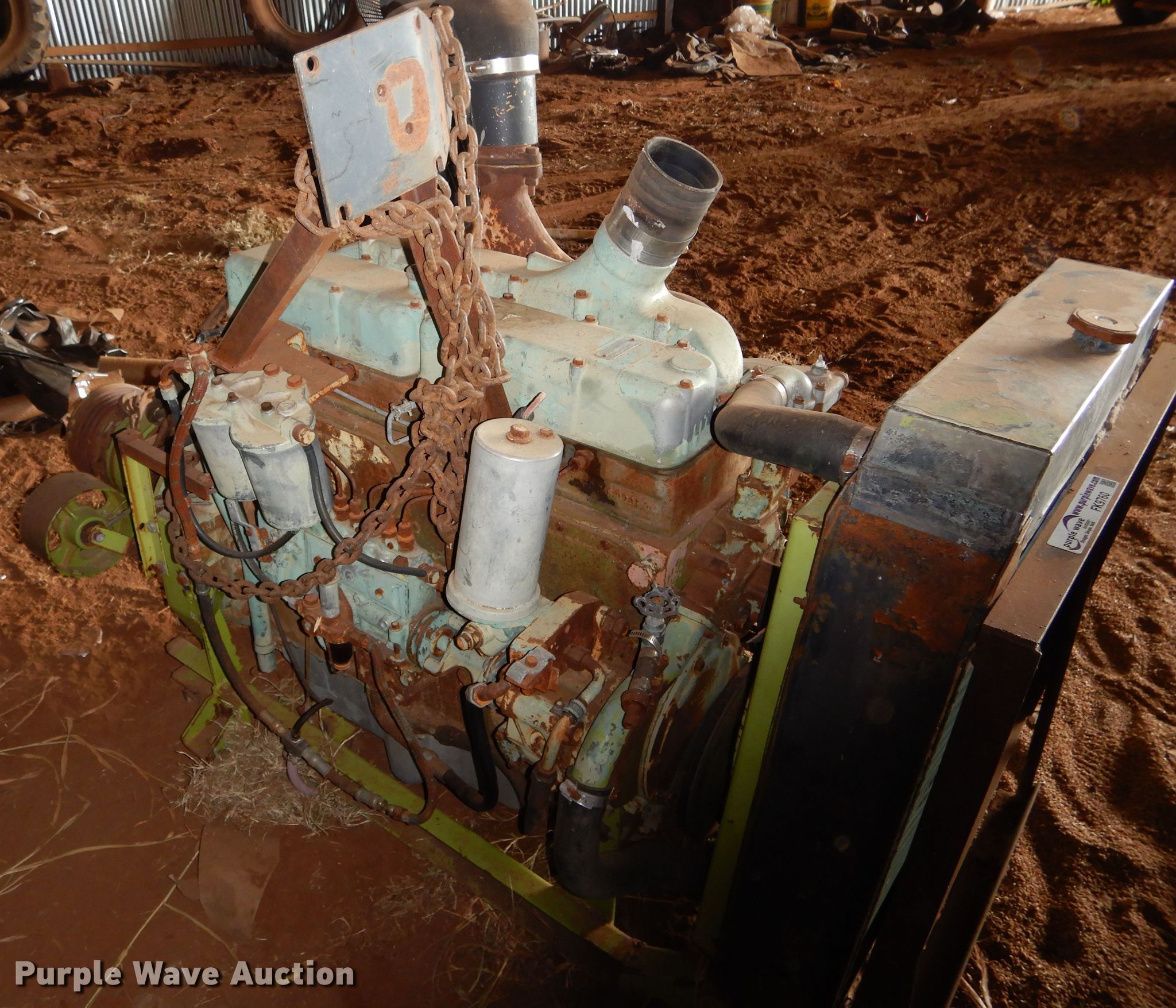 Mercedes-Benz OH360 six cylinder diesel engine. Fan, Radiator, Unknown operating condition. Chickasha Sod & Grass Farm. 733 County Rd 1330. Chickasha, OK 73018