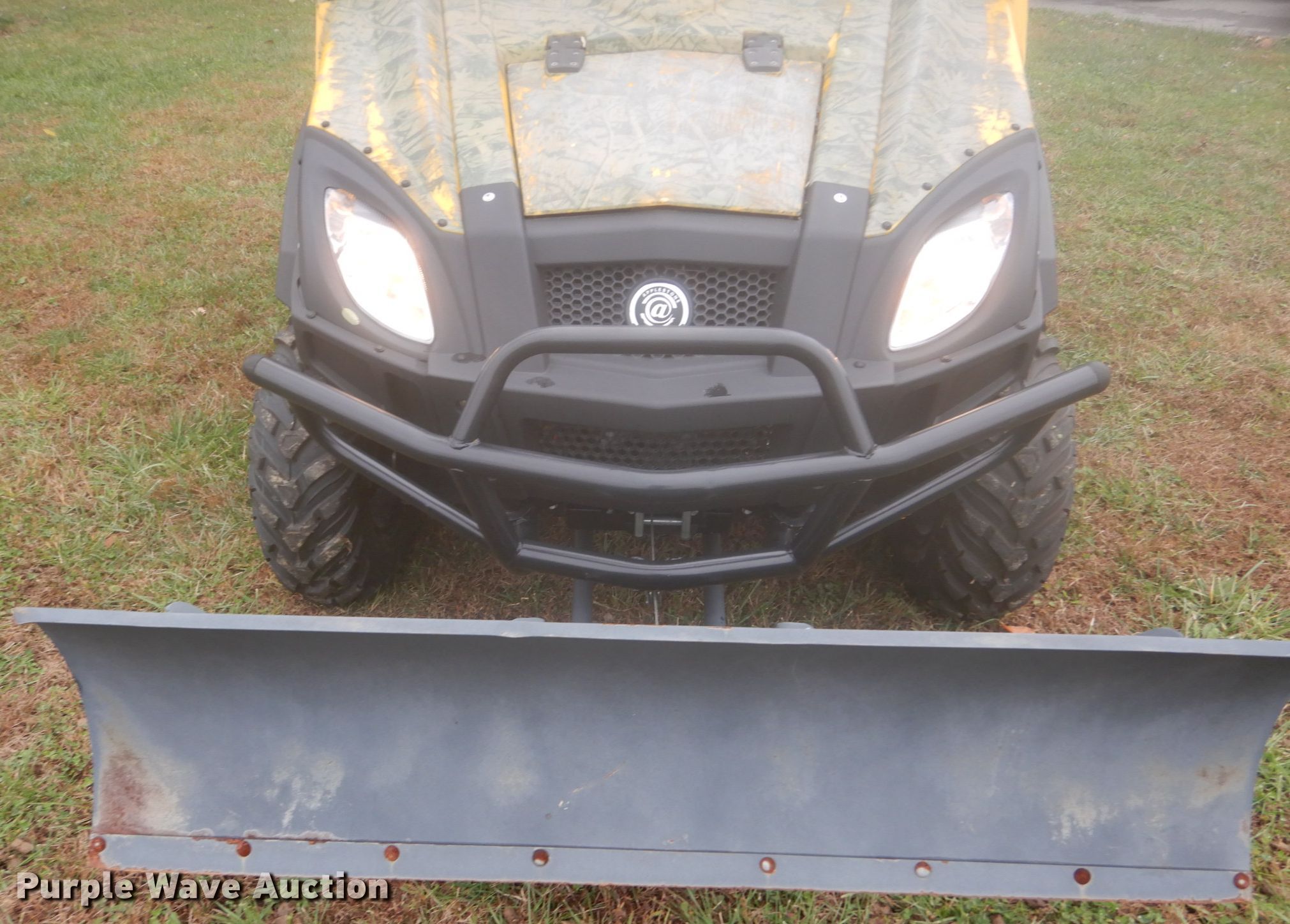 Purple Wave is selling a used Utility Vehicle in Missouri. This item is a 2017 Zhejiang Jingu BMS Ranch Pony 800 utility vehicle with the following: 56 miles on odometer, 15 hours on meter, Gas engine, Automatic transmission, Four wheel drive, OROPS, Two passenger capacity, Windshield, Front attachment mount, Front and rear winches, 5'W snow plow, Front winch operation, 34"L x 52"W dump bed, Electric/hydraulic dump, Receiver hitch, 25x8.00-12 front tires, 25x10.00-12 rear tires, Dead battery, Unit# 134279