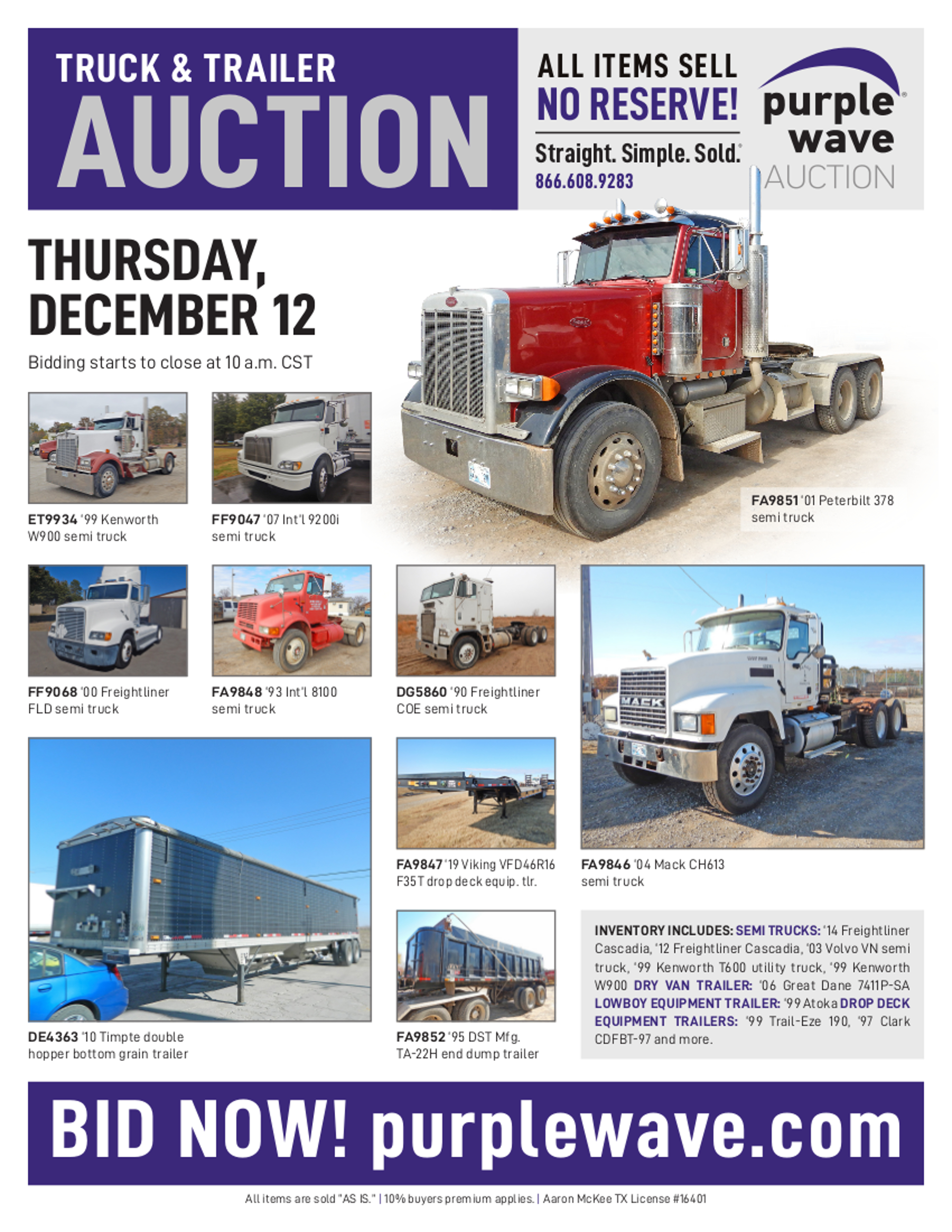 SOLD! Truck and Trailer Auction | 12-12-2019