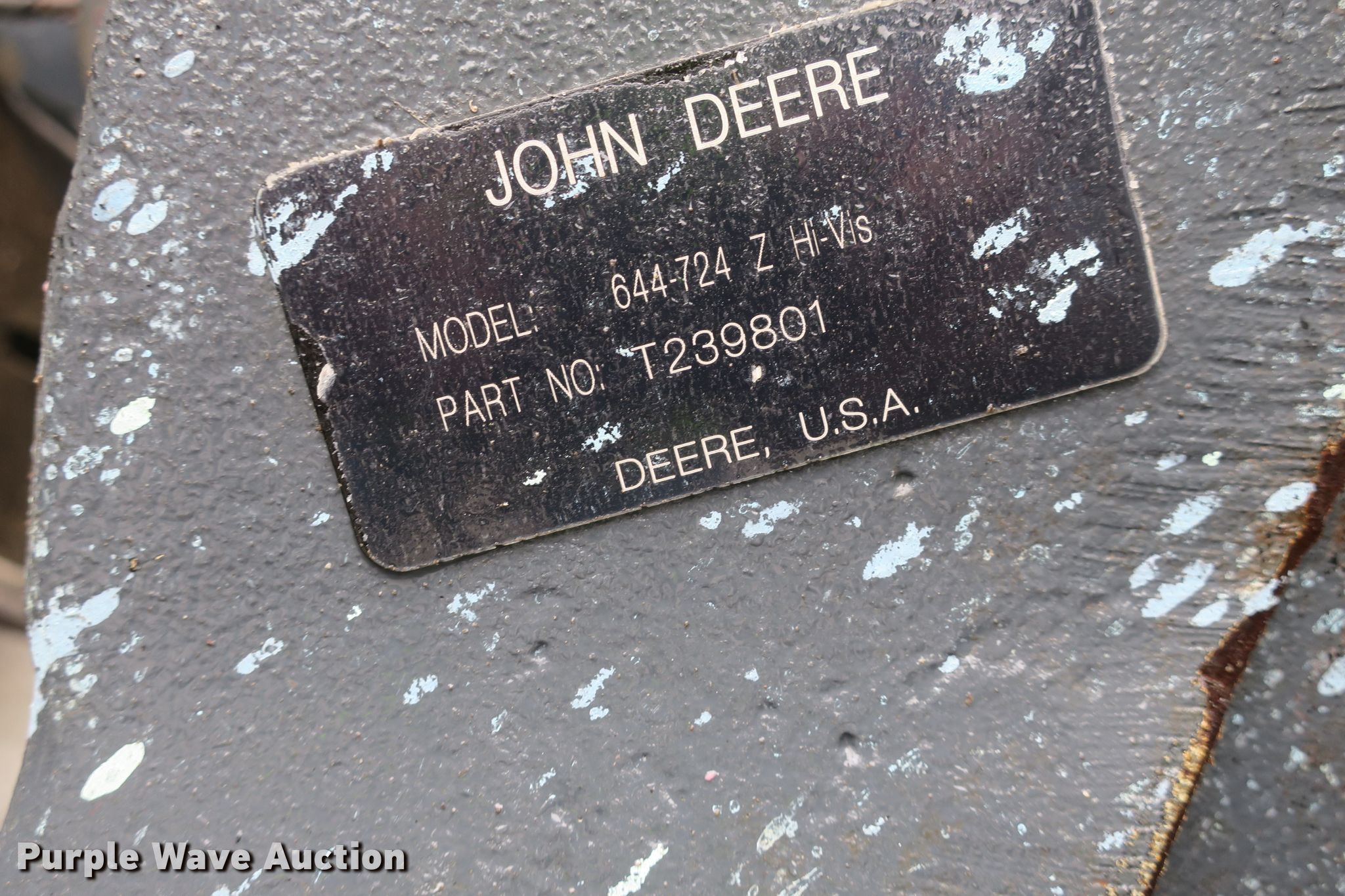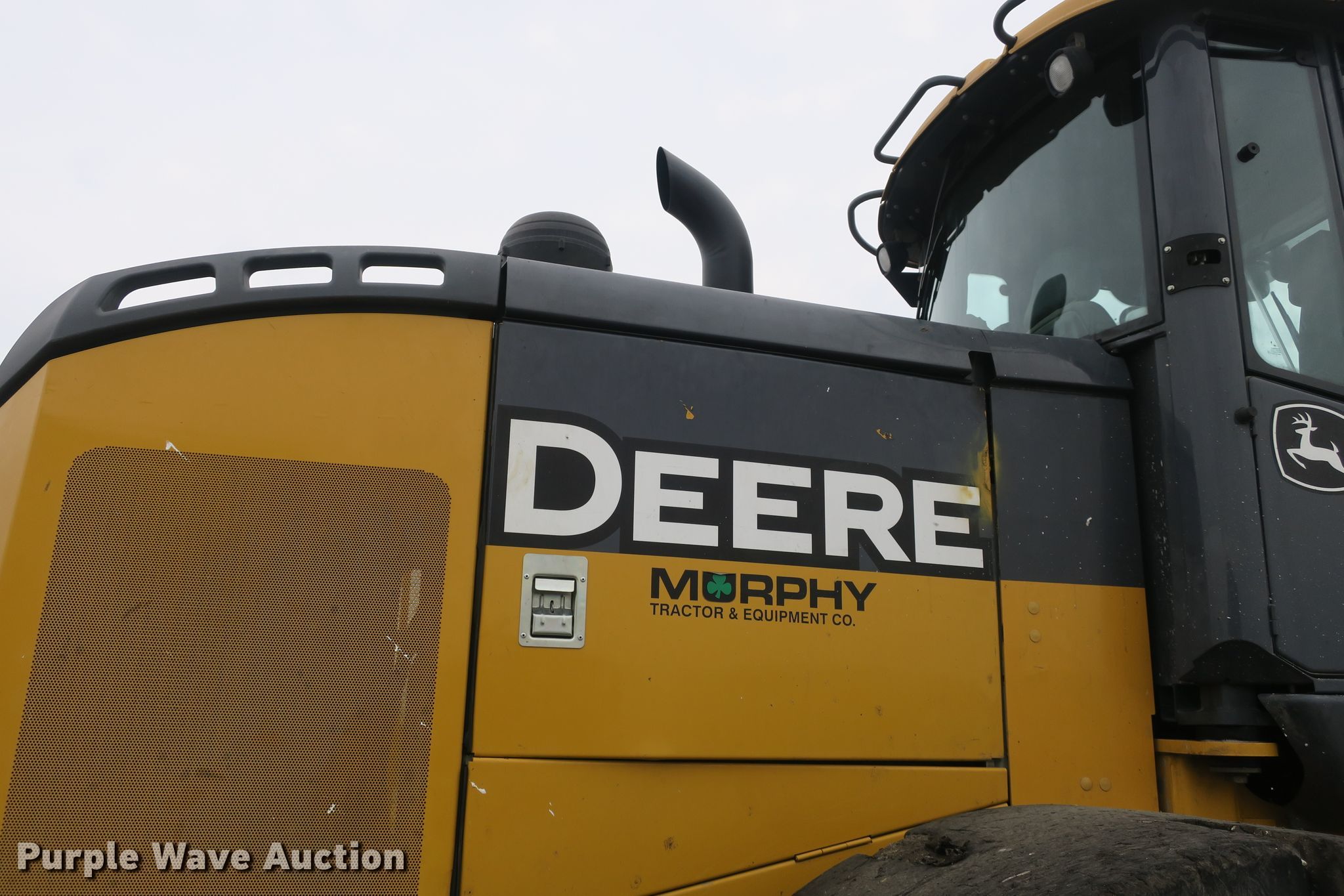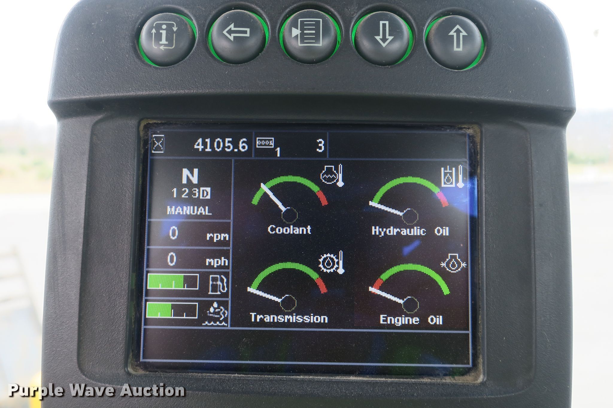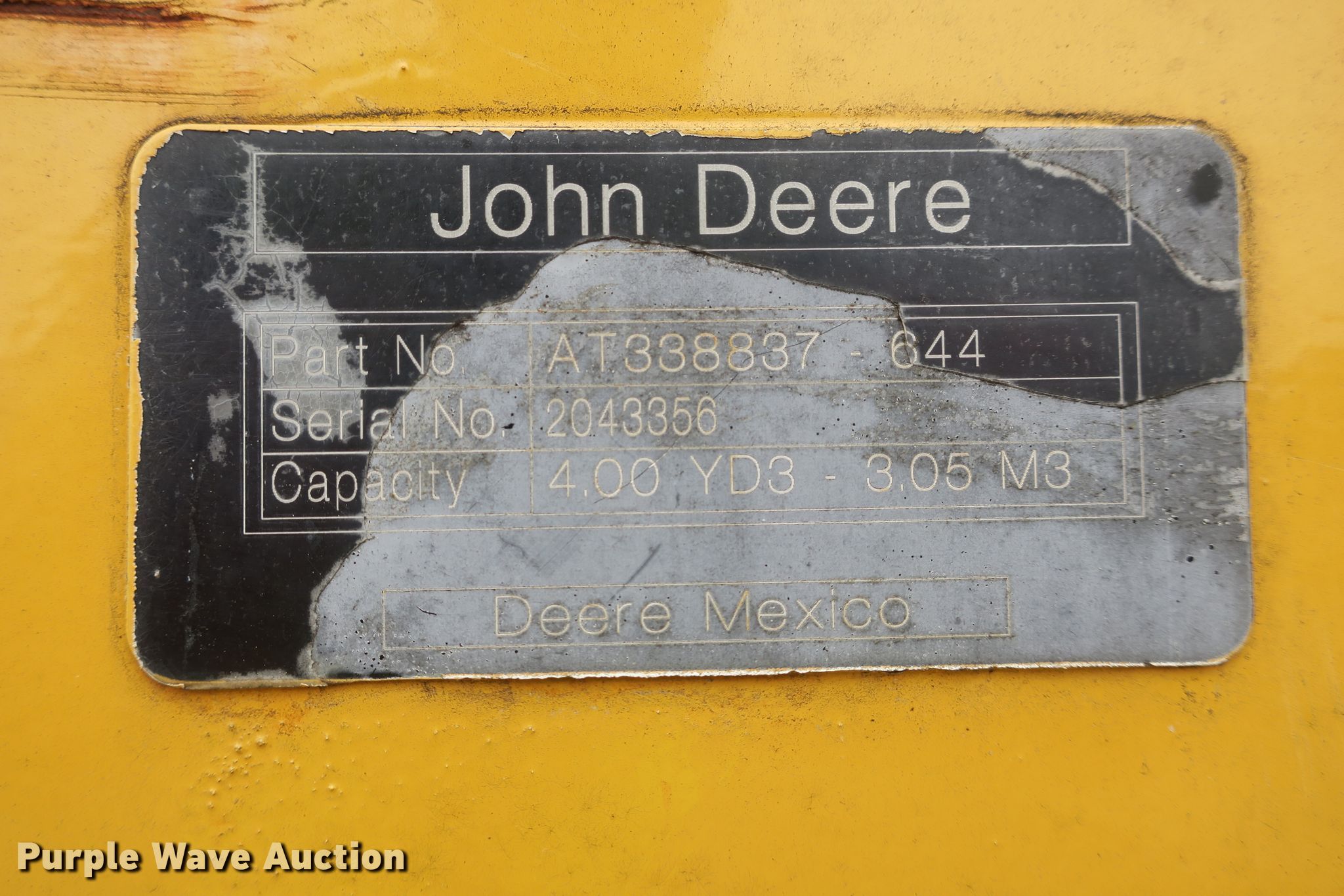 Purple Wave is selling a used Wheel Loader in Missouri. This item is a 2016 John Deere 644K wheel loader with the following: 4,106 hours on meter, John Deere Powertech 9.0L six cylinder diesel engine, Powershift transmission, 4F-4R gears, Front and rear differential lock, EROPS, Joystick steering or steering wheel, AC and heat, Heated seat, Joystick bucket controls, Ride control, Backup camera, Tag 128"W bucket, Bolt-on cutting edge, John Deere 117"W bucket, Bolt-on cutting edge, Four cu.yd. capacity, Self-leveling, Hydraulic quick coupler, Hydraulic belly pan, Auxiliary hydraulics, Setco 23.5 x 66 x 15 solid tires, Manuals, Engine rebuilt at 3,150 hours, Transferable warranty, Serial 1DW644K2TGF675456