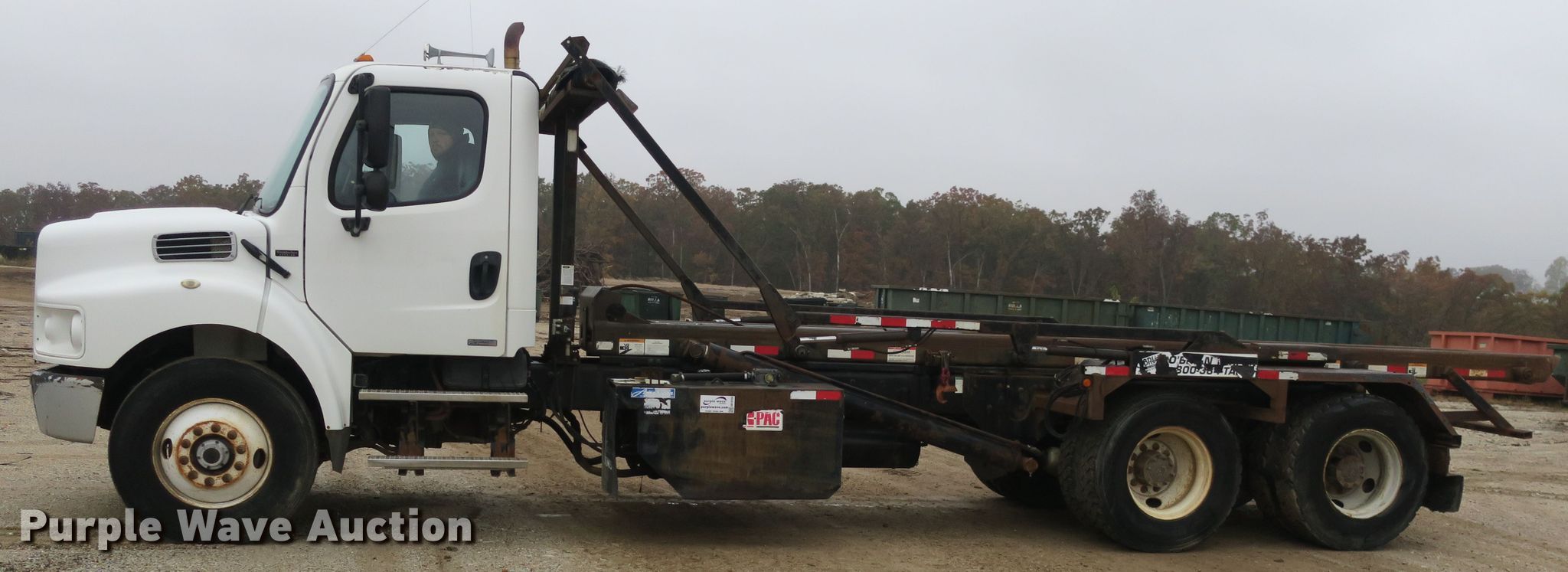 This 2005 Freightliner Business Class M2 roll-off container truck will sell to the highest bidder regardless of price.
