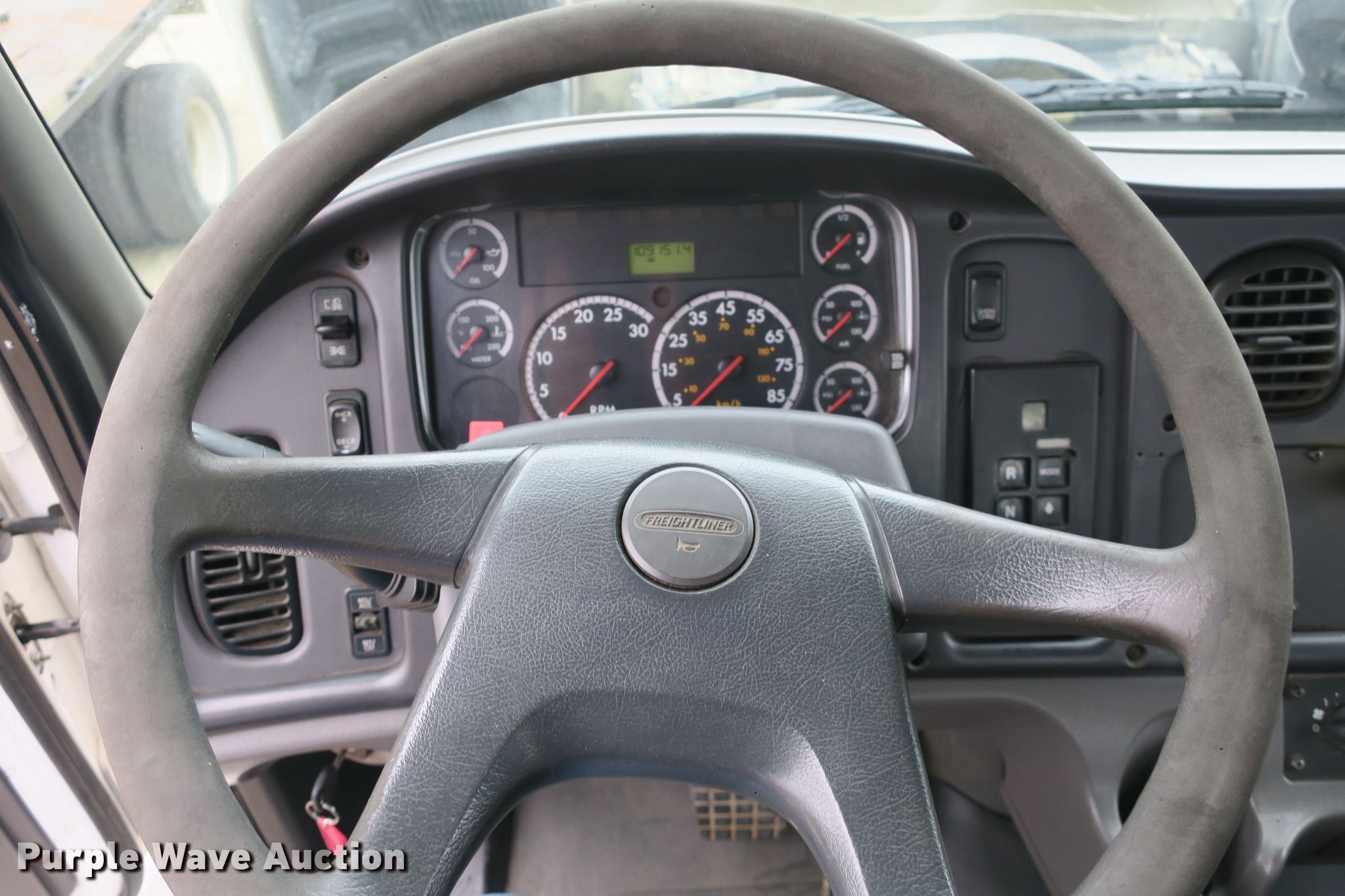 Purple Wave is selling a used Rollback or Tow Truck in Missouri. This item is a 2005 Freightliner Business Class M2 roll-off container truck with the following: 109,151 miles on odometer, Mercedes-Benz MBE900 6.4L L6 diesel engine, Automatic transmission, Tandem axle, AC and heat, Heated mirrors, PTO, 22'10"L x 35"W roll-off bed, Hydraulic roll tarp, Serial KP60-1740R, Spring suspension, Air brakes, 11R22.5 tires, GVWR 53,200 lbs, Dead batteries