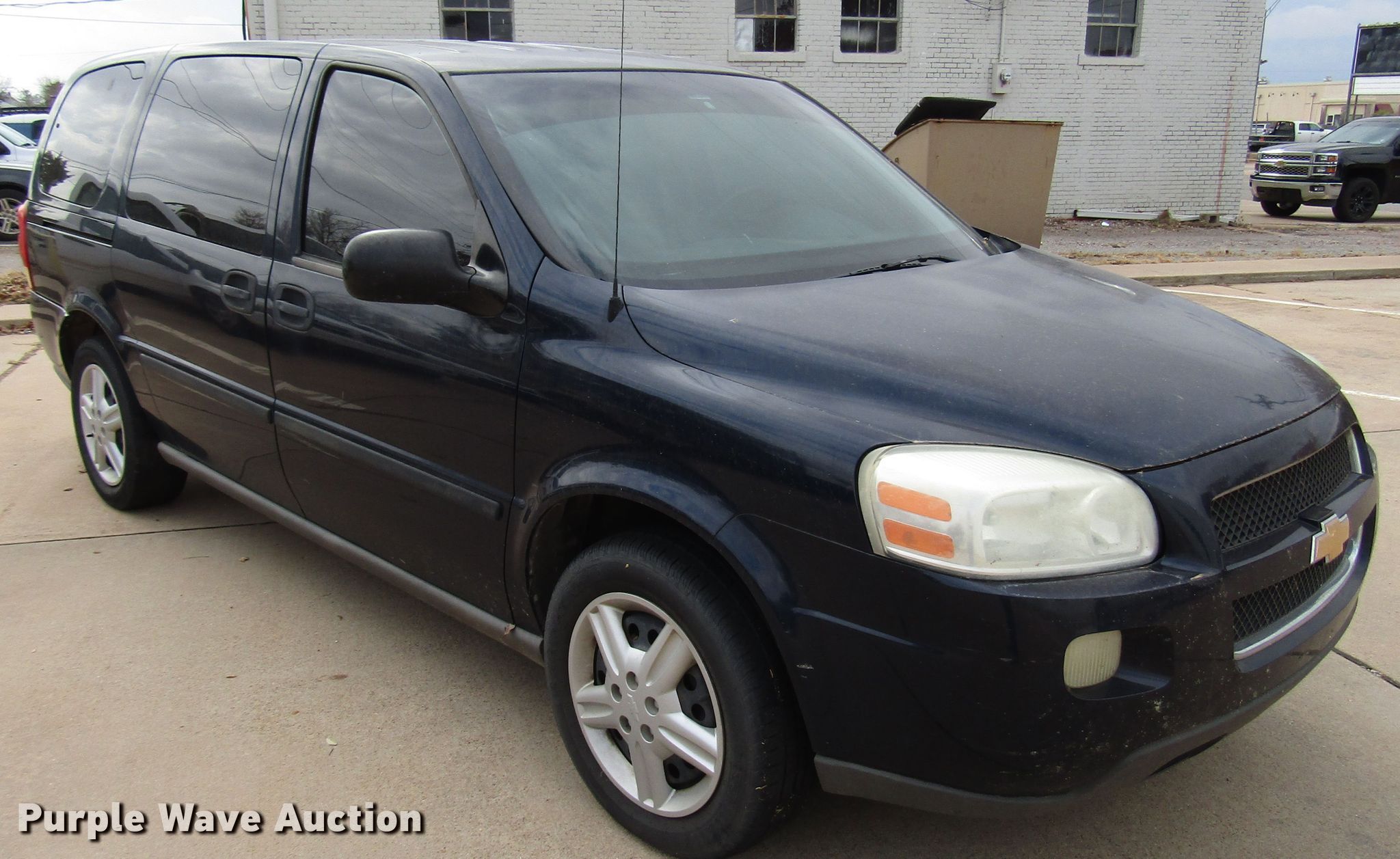 Purple Wave is selling a used Passenger Vehicle in Oklahoma. This item is a 2005 Chevrolet Uplander SUV with the following: 122,064 miles on odometer, 3.5L V6 OHV 16V gas engine, Automatic transmission, AC and heat, Cruise, Power windows and locks, 225/60R17 tires, Check engine light on