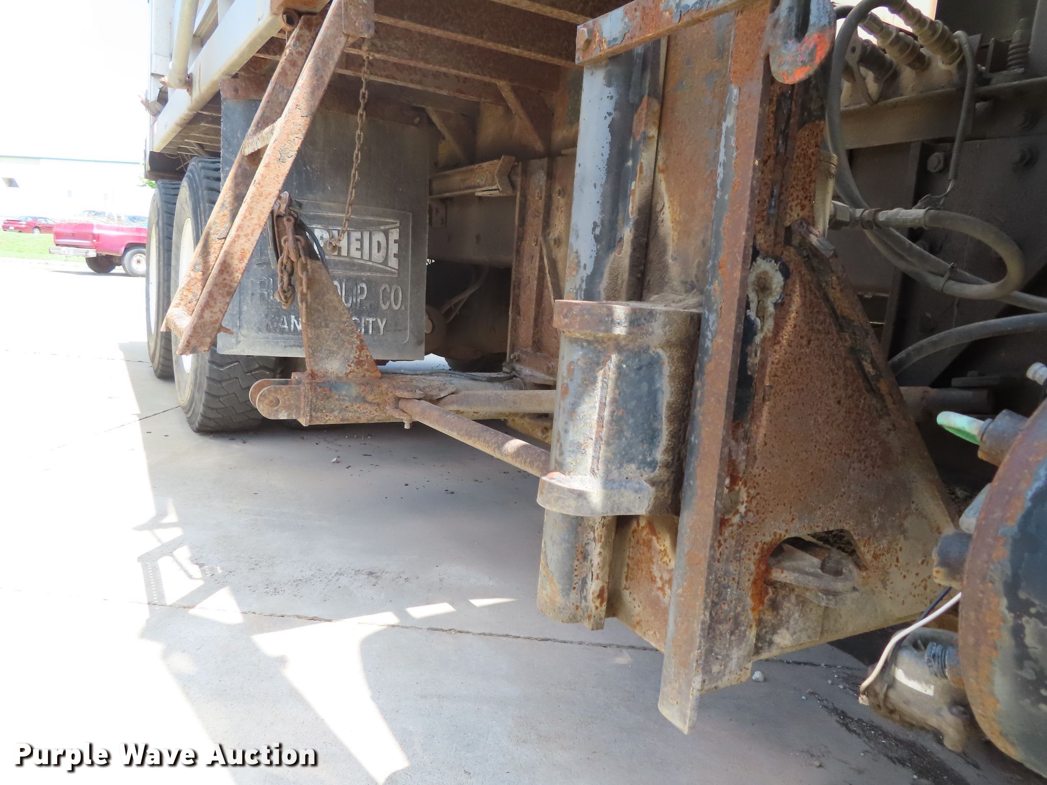 Purple Wave is selling a used Construction Dump Truck in Kansas. This item is a 2007 International 7400 dump truck with the following: 104,889 miles on odometer, 7,484 hours on meter, International DT466 7.6L L6 diesel engine, Automatic transmission, Tandem axle, Inter-axle differential lock, AC and heat, Cruise, Heated mirrors, Brake controller, In-cab plow controls, Spreader controller, Front mounted PTO, Crysteel steel dump bed, 14'L x 96"W, 43" side height, Roll tarp, Single ram hoist, Manual end gate, Front plow mount, Spring over walking beam suspension, Air brakes, 240" wheelbase, 315/80R22.5 tires, GVWR 56,000 lbs, FAWR 16,000 lbs, IAWR 20,000 lbs, RAWR 20,000 lbs, Dead batteries, Unknown operating condition