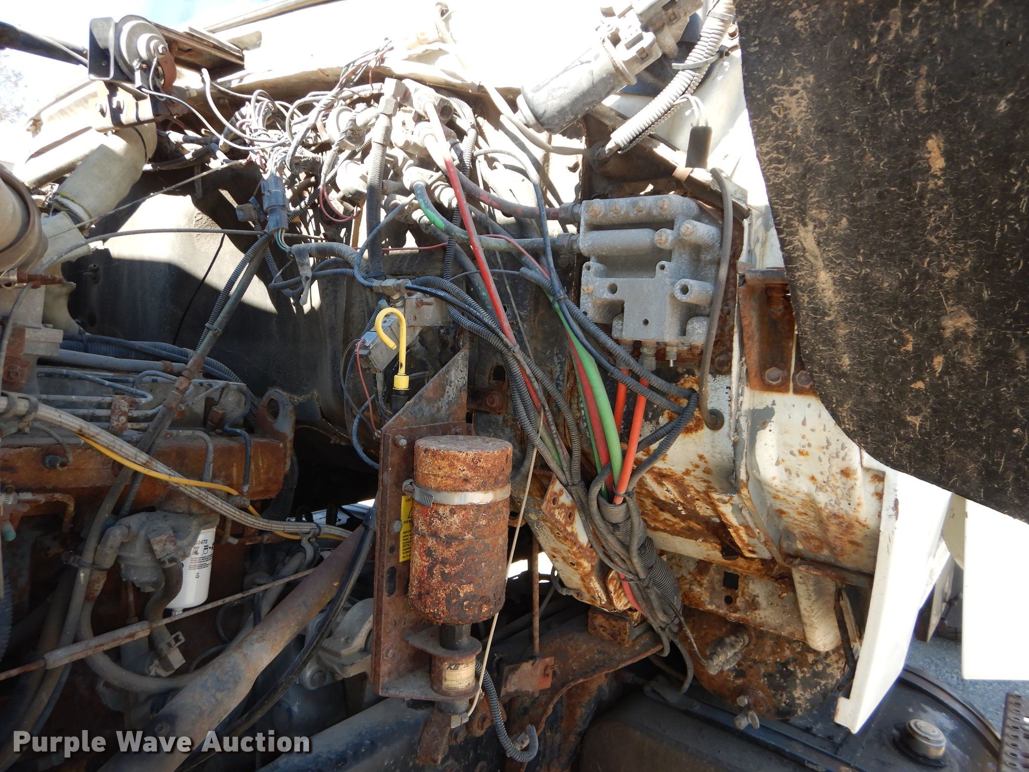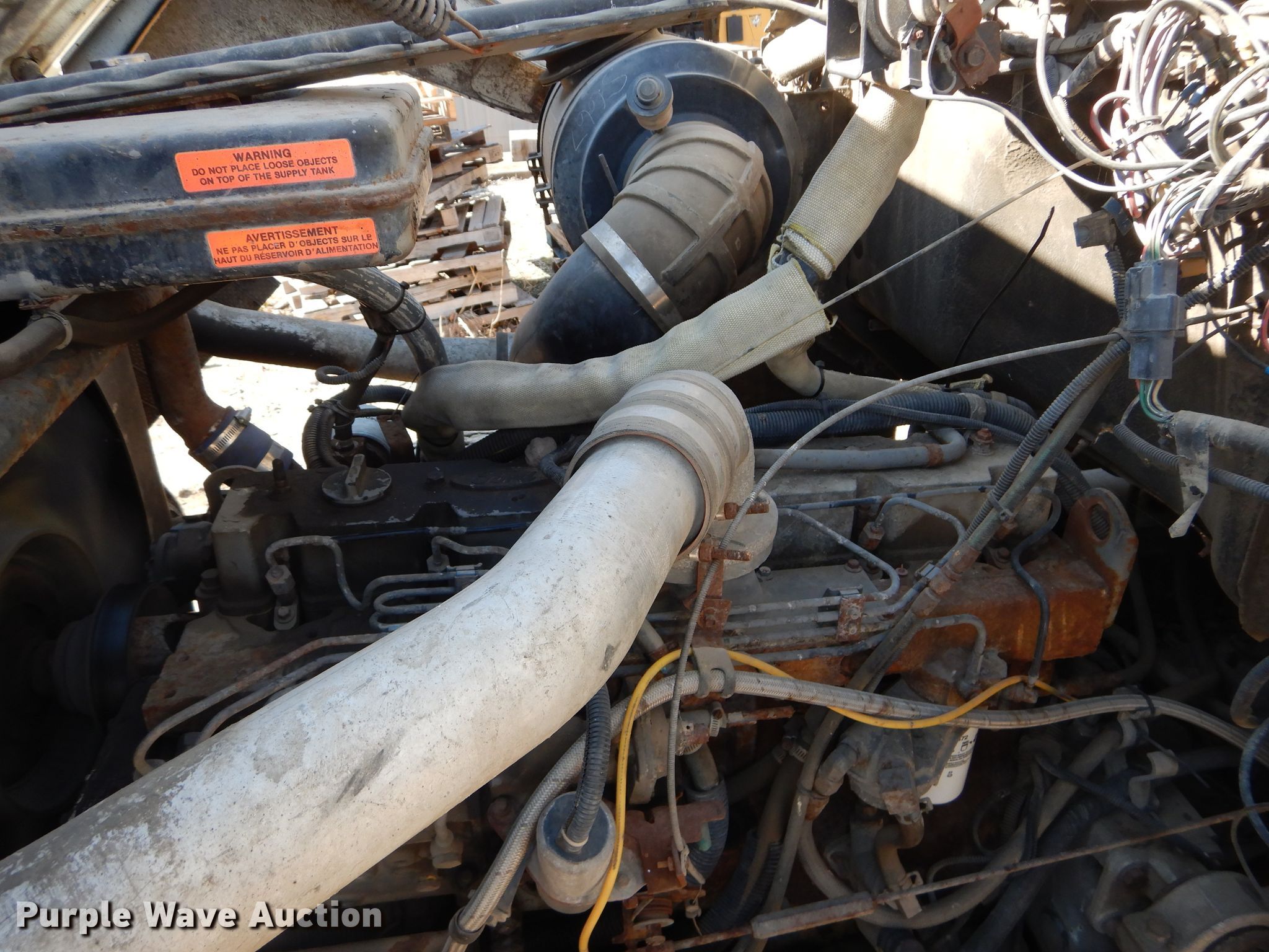 Purple Wave is selling a used Construction Dump Truck in Kansas. This item is a 1994 Ford L8000 dump truck with the following: 96,332 miles on odometer, Cummins 8.3L L6 diesel engine, 250 HP, Five speed manual transmission, Two speed rear end, Single axle, Heat, Front mounted PTO, Warren FL450-11 steel dump bed, 11'L x 96"W, 28" side height, 6"side board height, Roll tarp, Single ram hoist, Manual operated end gate, Spring suspension, Air brakes, 186" wheelbase, 11R22.5 tires, GVWR 34,200 lbs, Front bumper missing, Unit# 322