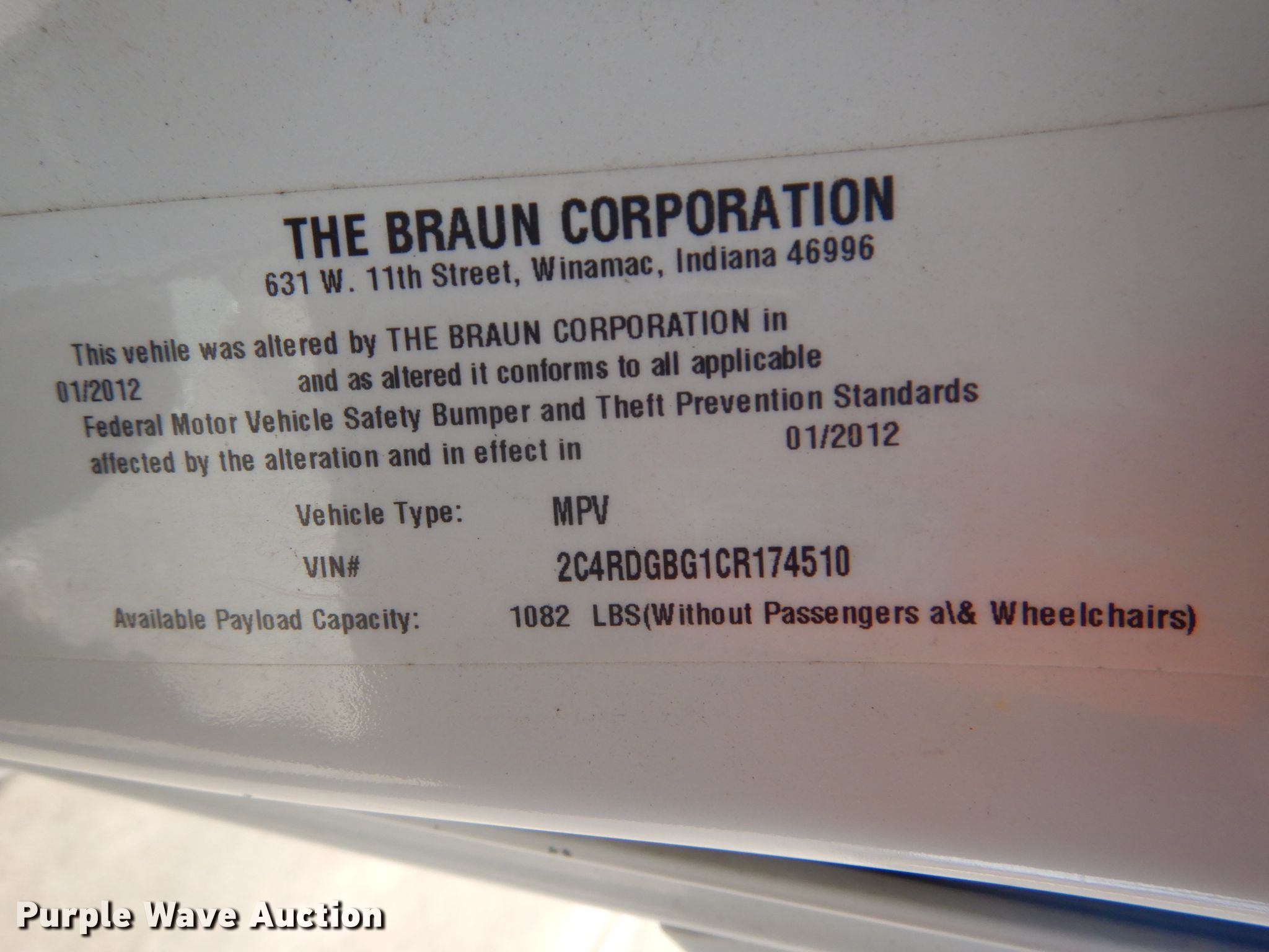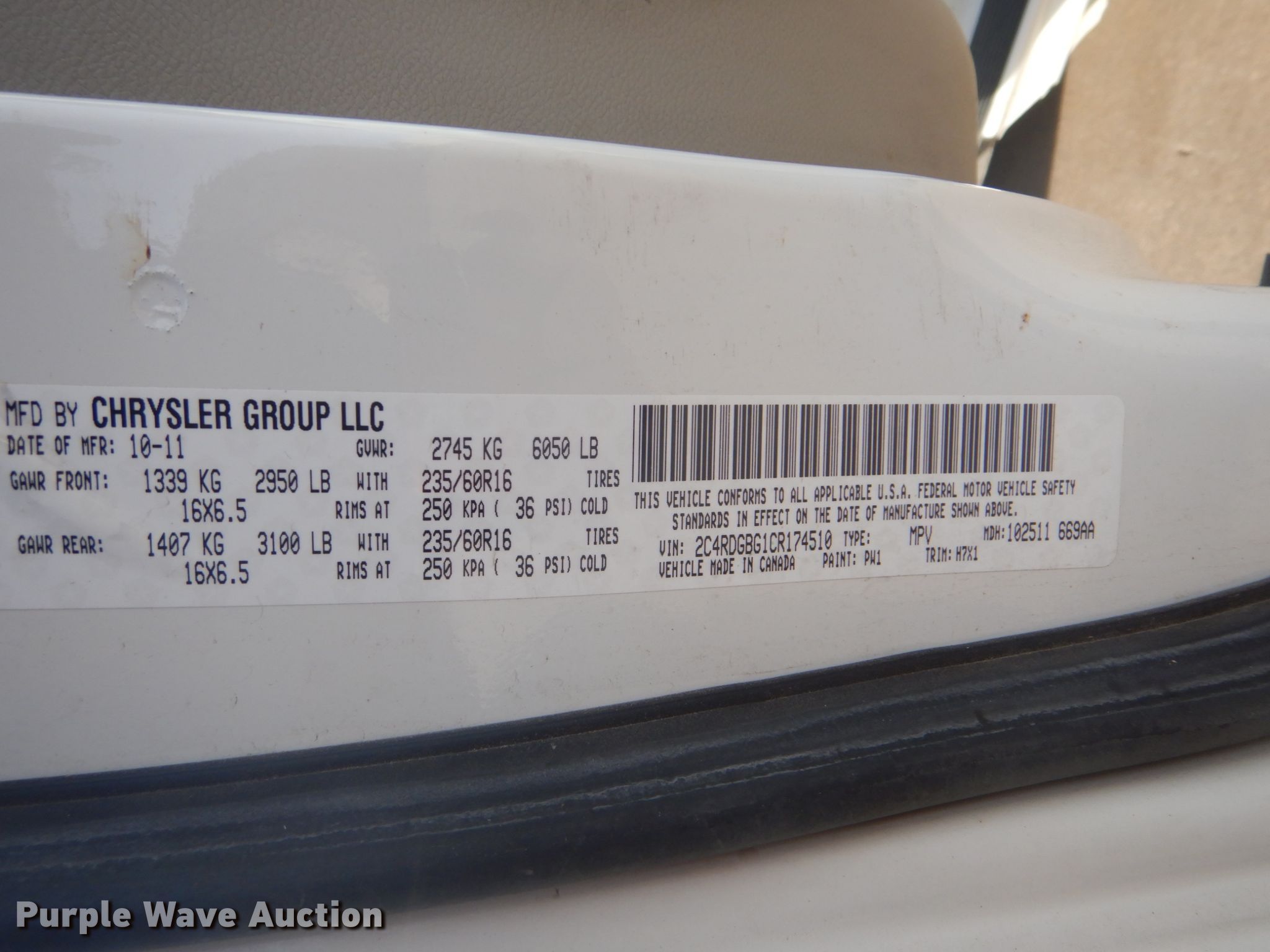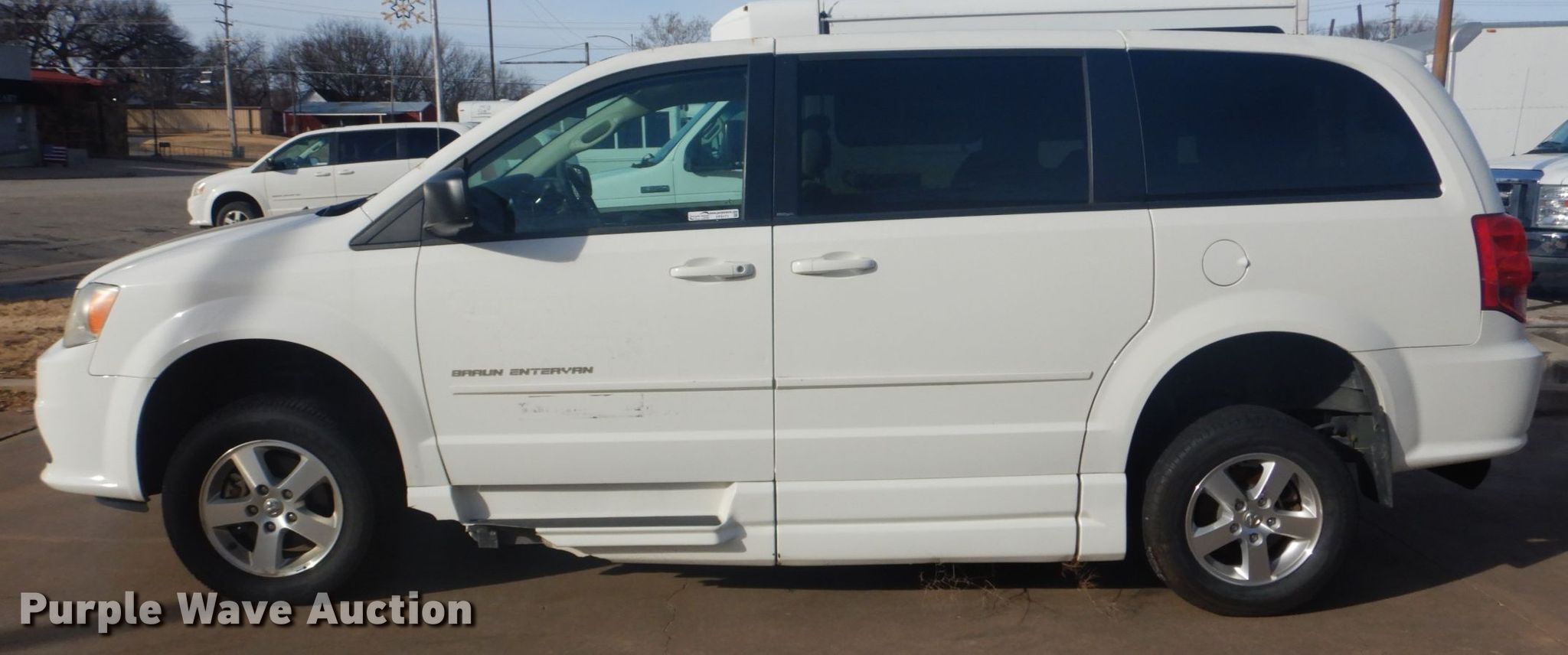 Purple Wave is selling a used Passenger Vehicle in Oklahoma. This item is a 2012 Dodge Grand Caravan handicap accessible van with the following: 216,675 miles on odometer, 3.6L V6 DOHC 24V gas engine, Automatic transmission, AC and heat, Cruise, Power windows and locks, Wheelchair lift, 235/60R16 tires, Cracked windshield, Running boards damaged