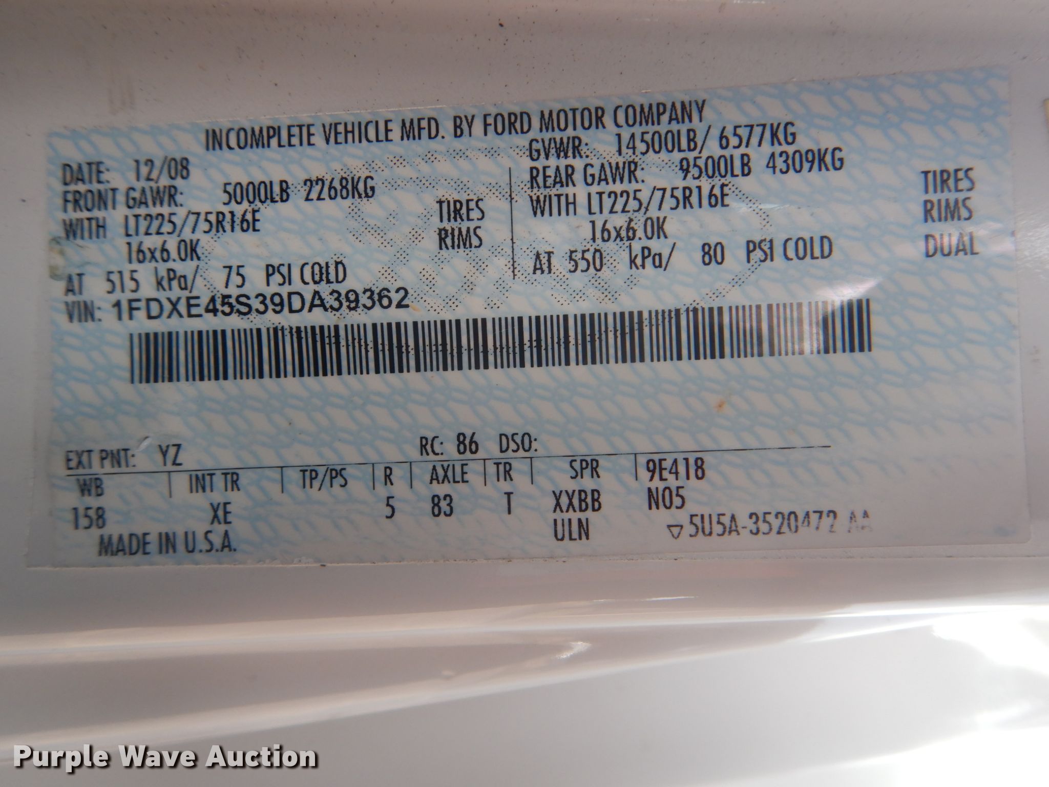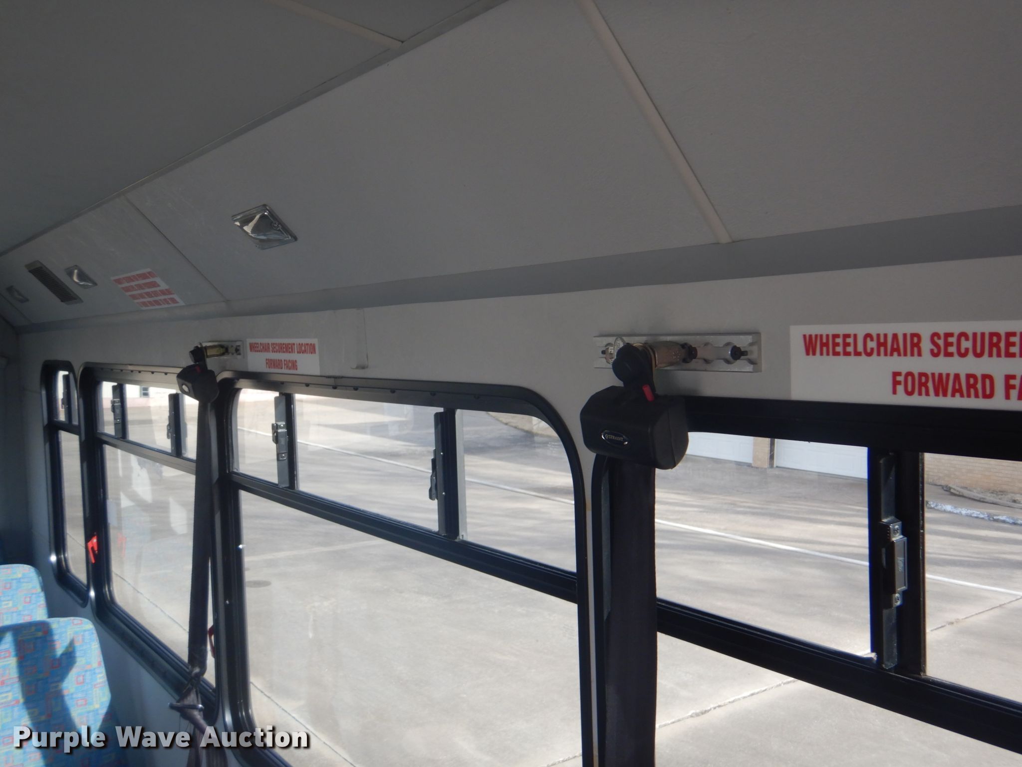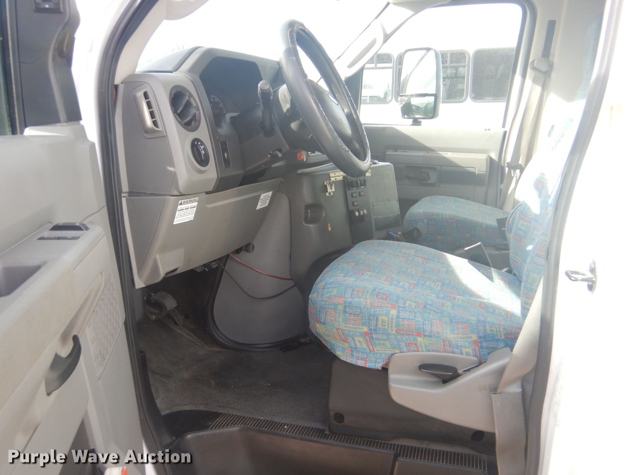 Purple Wave is selling a used Bus in Oklahoma. This item is a 2009 Ford Econoline E450 shuttle bus with the following: 172,759 miles on odometer, 6.8L V10 SOHC 20V gas engine, Automatic transmission, Single axle, AC and heat, Electric passenger sliding door, 13 passenger capacity, Wheelchair lift, Spring suspension, Hydraulic brakes, Dynapro LT225/75R16 tires, GVWR 14,500 lbs, Airbag sensor light on, Cracked windshield