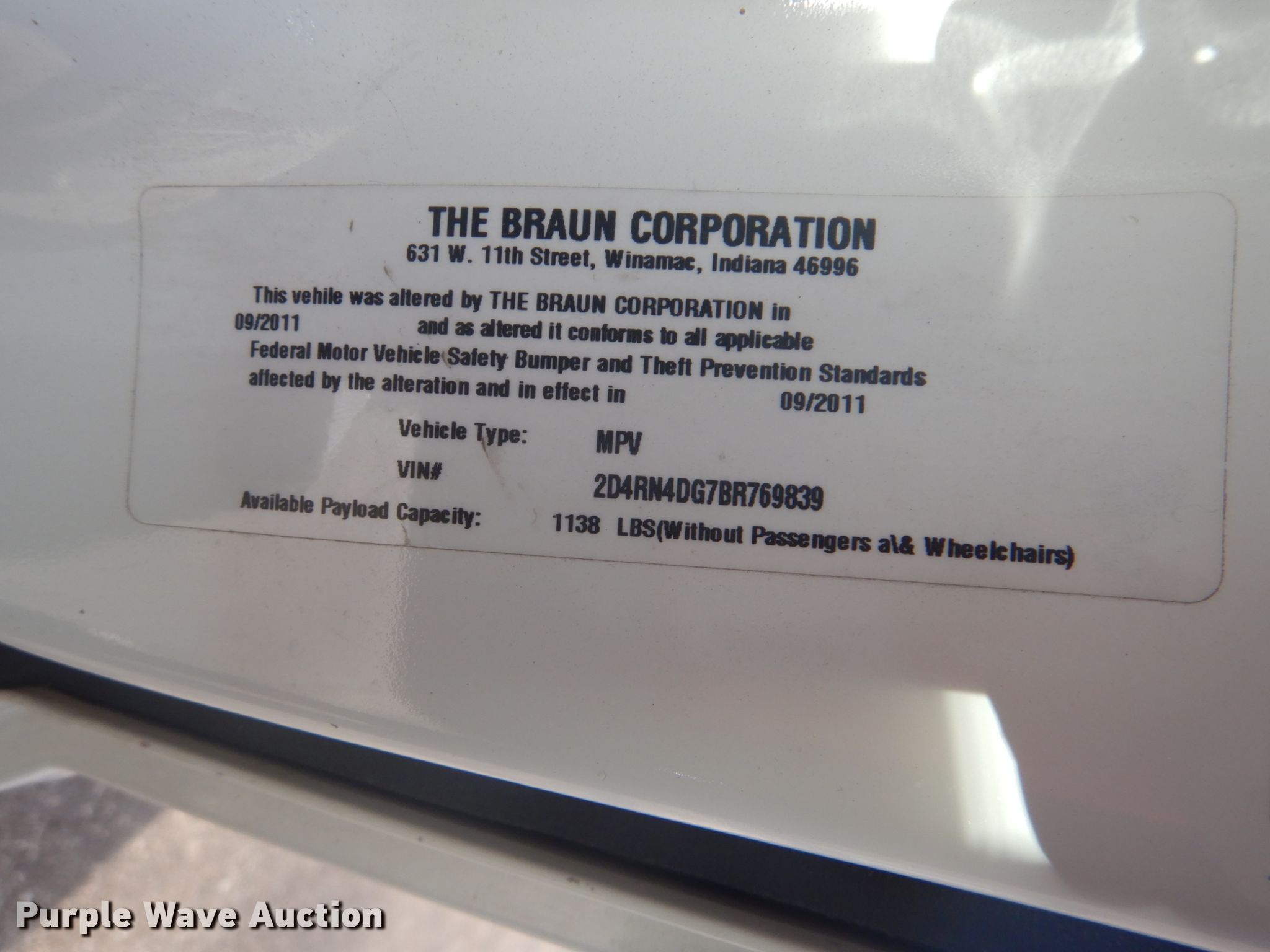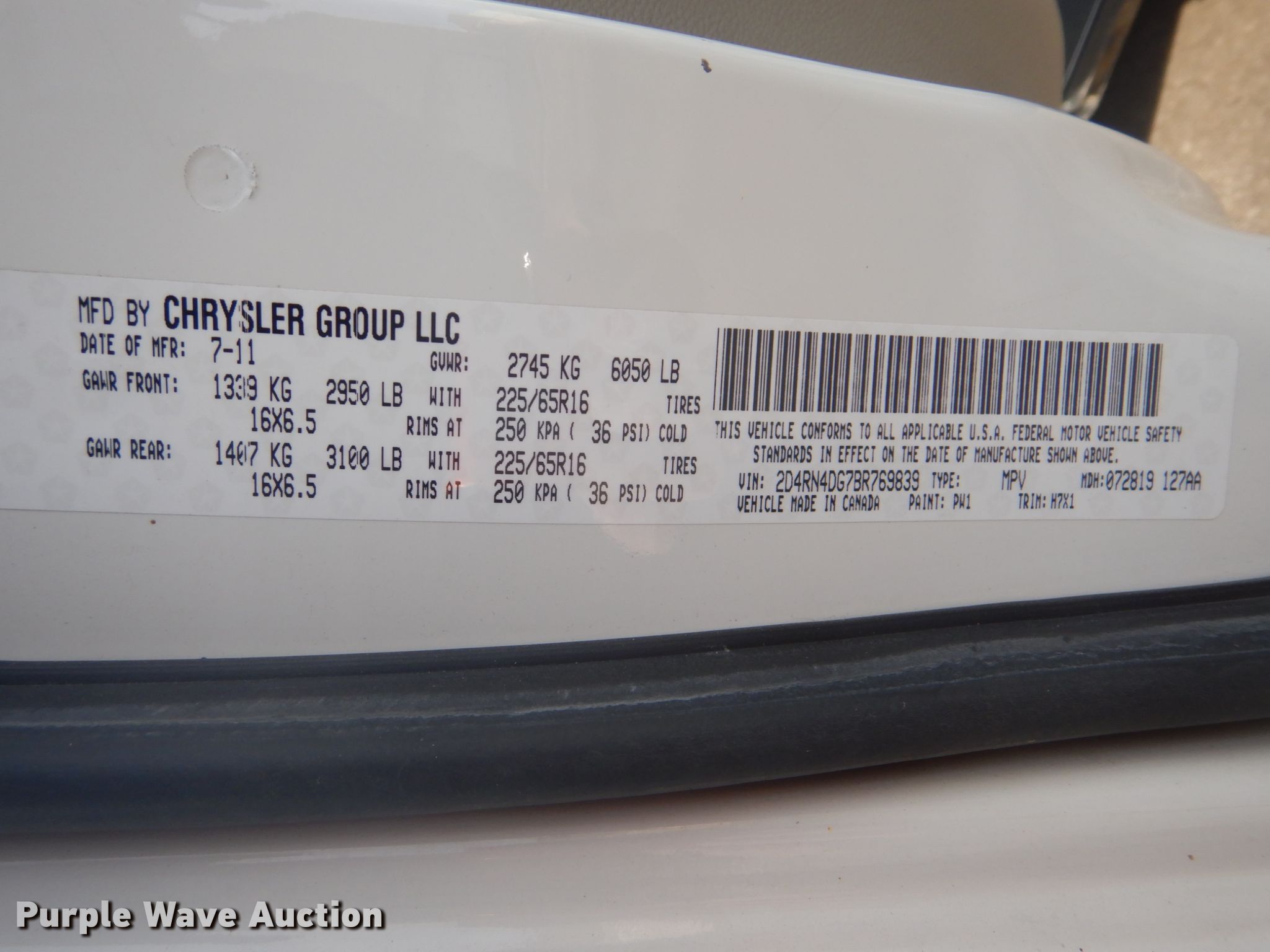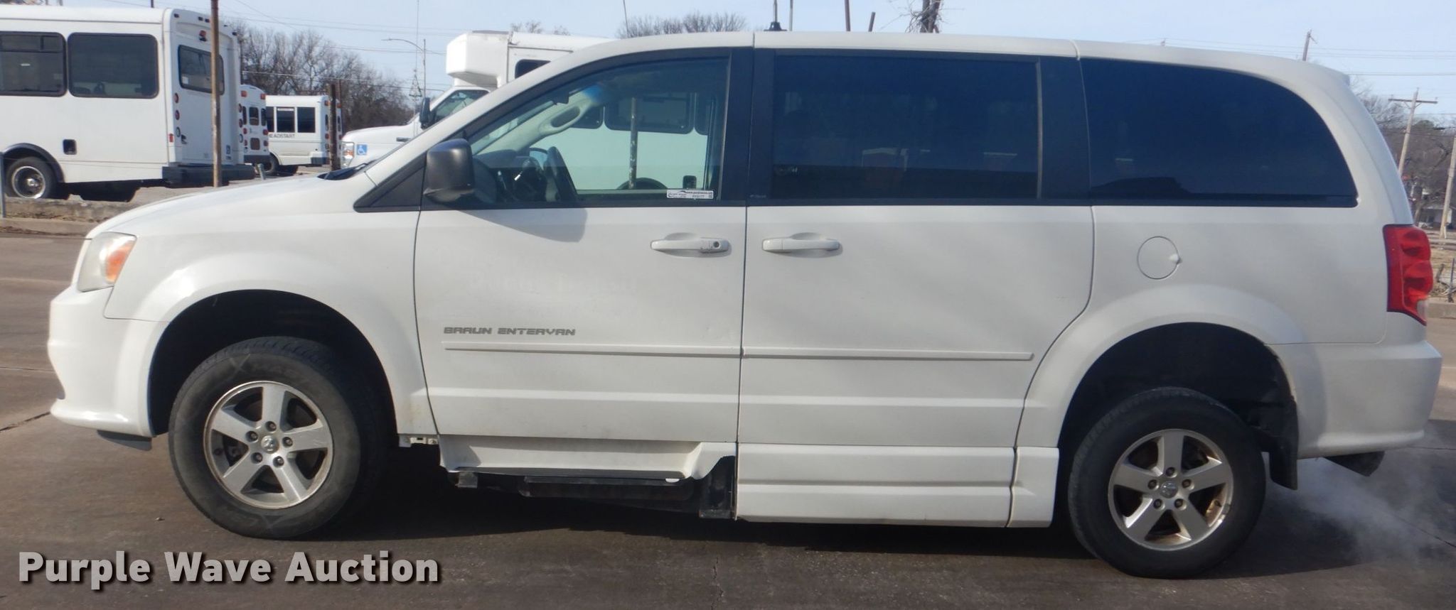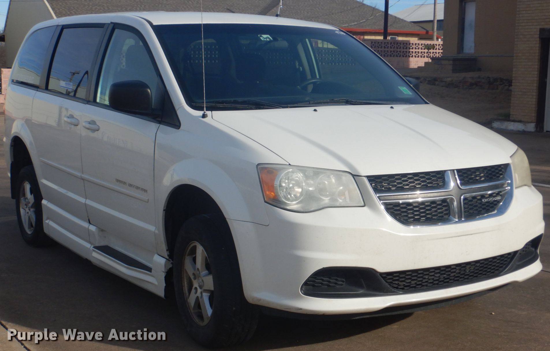 Purple Wave is selling a used Passenger Vehicle in Oklahoma. This item is a 2011 Dodge Grand Caravan handicap accessible van with the following: 210,493 miles on odometer, 3.6L V6 DOHC 24V gas engine, Automatic transmission, AC and heat, Cruise, Power windows, Wheelchair lift, 235/65R16 tires, Running boards damaged