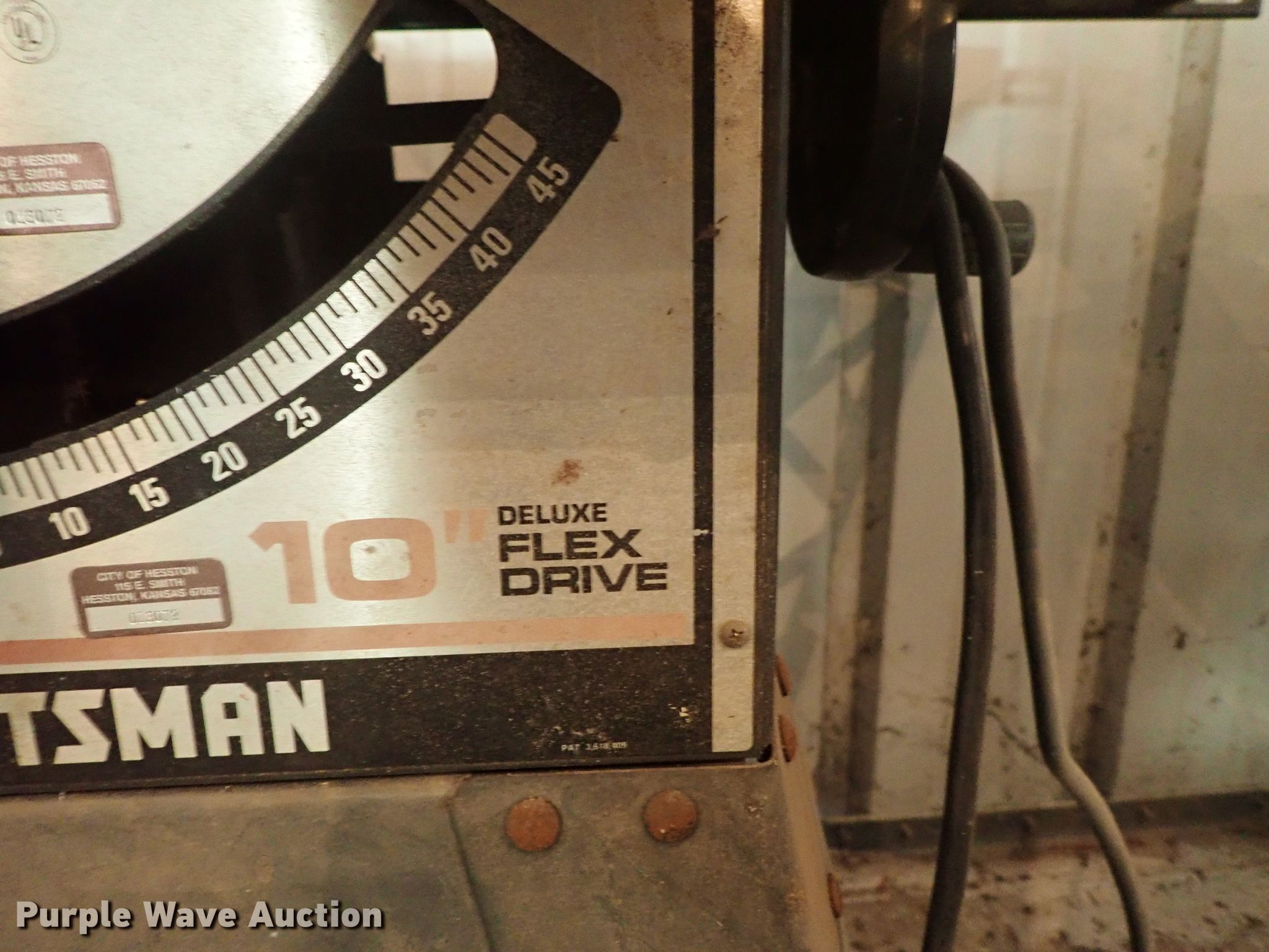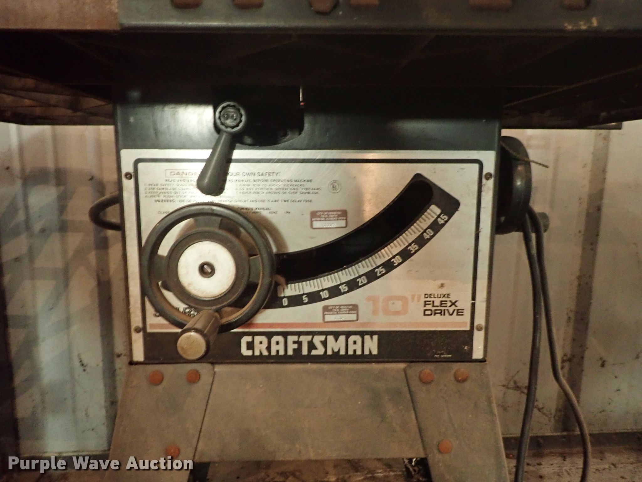Purple Wave is selling a used Tools in Kansas. This item is a Craftsman table saw with the following: 10" blade capacity, 120V