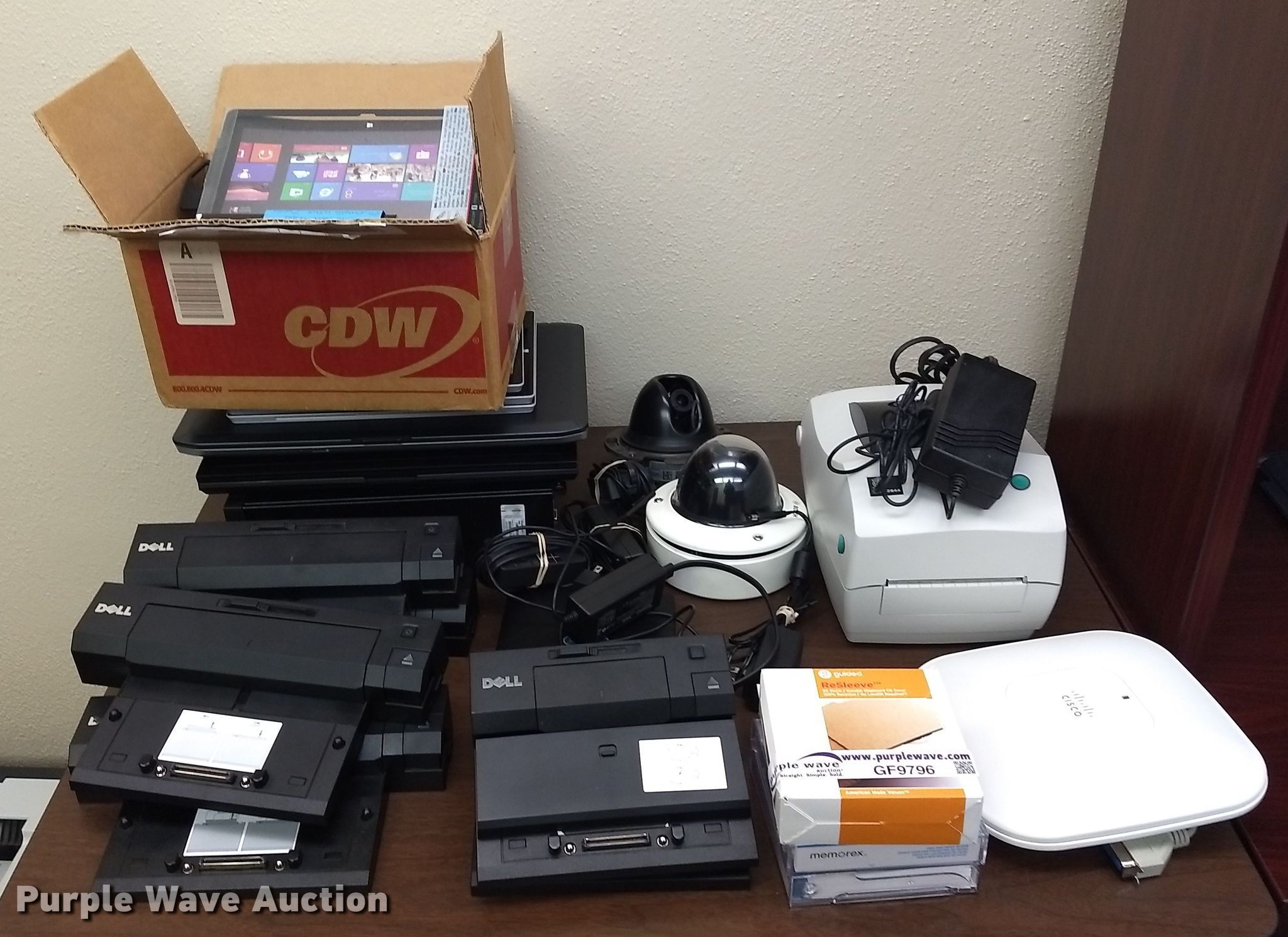 Purple Wave is selling a used Electronics in Kansas. This item is a Electronics with the following: (3) packages of CD-R discs, (2) security cameras, Zebra printer, (3) Microsoft Surface tablets, (2) Dell laptops, Dell Optiplex 3010 CPUS, Approx. 5 Dell docking stations, (6) Microsoft Surface tablet cases, Car charger with USB for Microsoft Surface tablets, HP printer