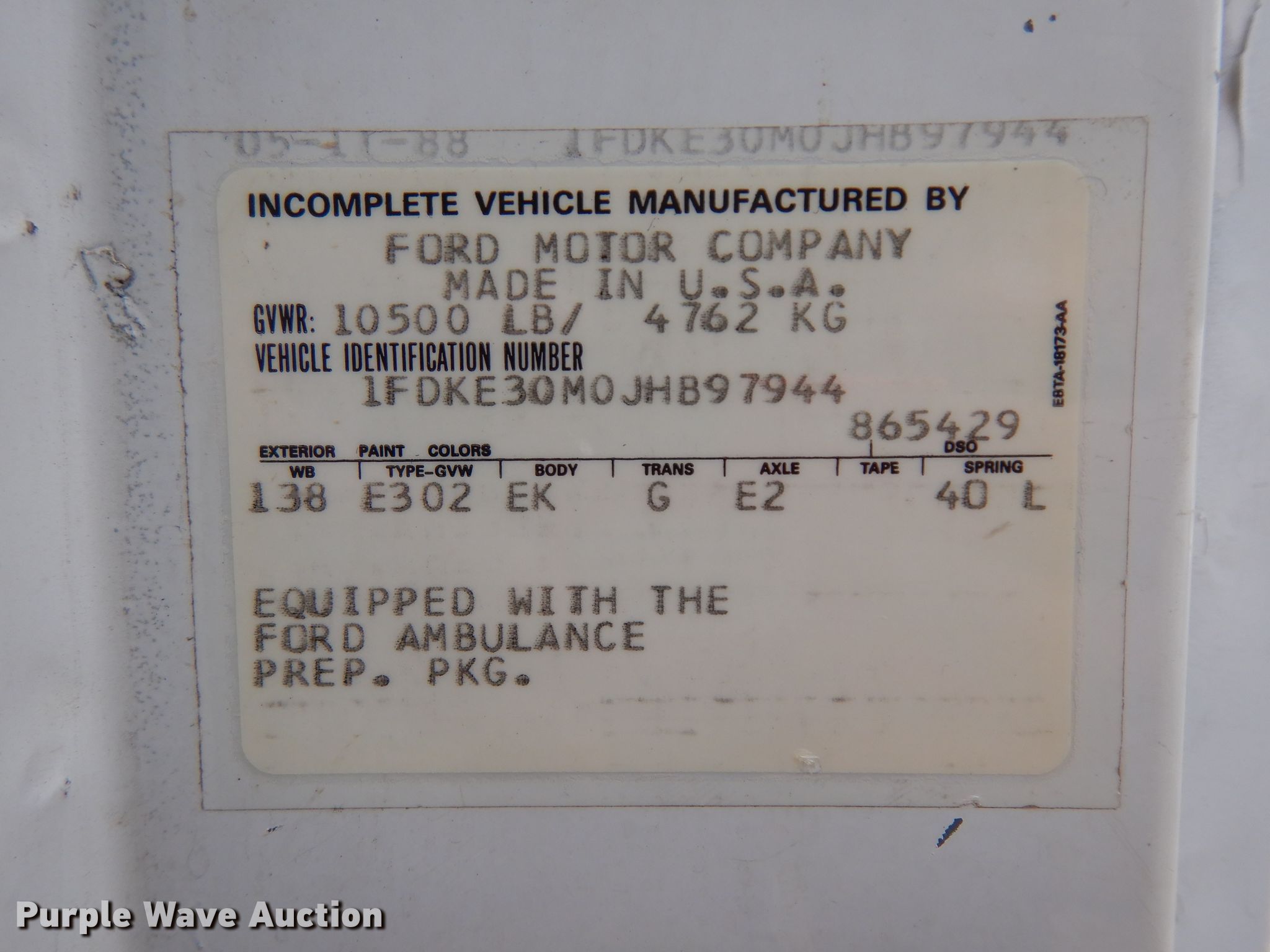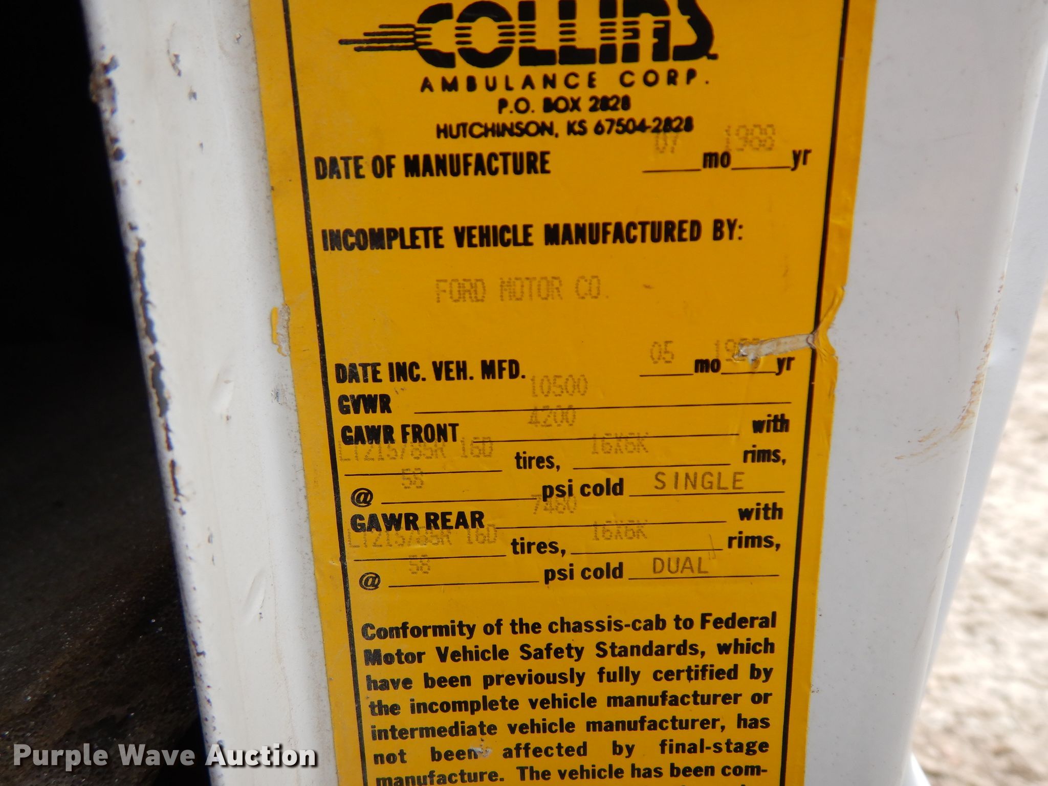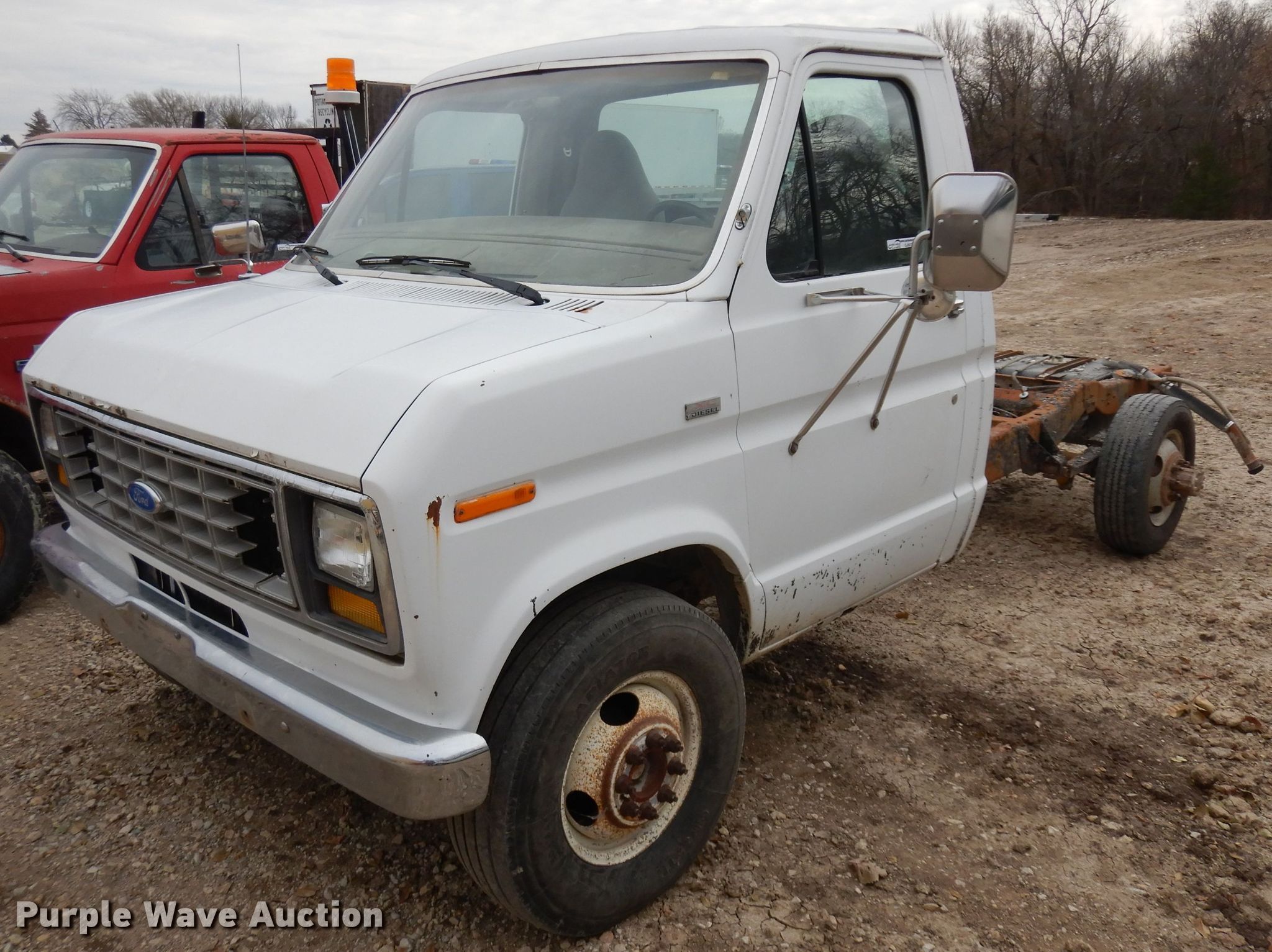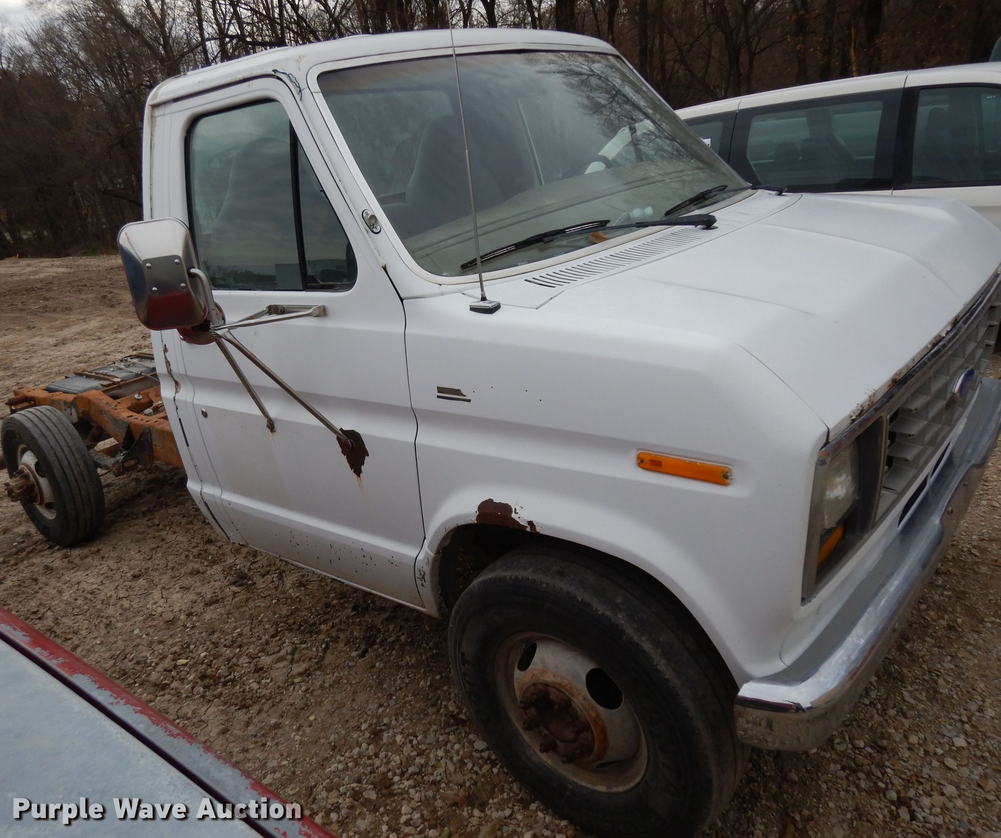 Purple Wave is selling a used Passenger Vehicle in Kansas. This item is a 1988 Ford Econoline E350 van cab and chassis with the following: 44,656 miles on odometer, 7.3L V8 OHV 16V diesel engine, Automatic transmission, AC and heat, Cruise, 235/85R16 tires, Dual wheels included