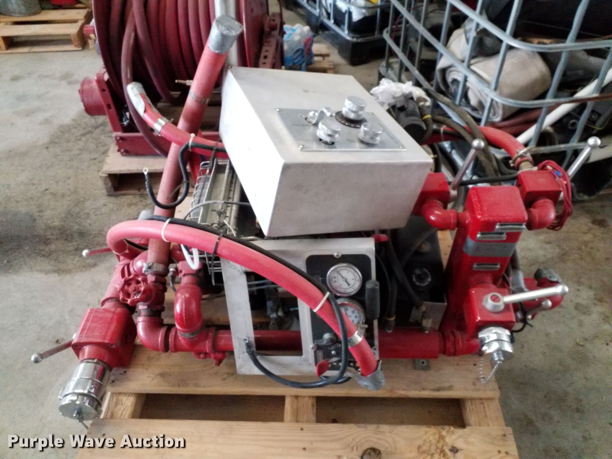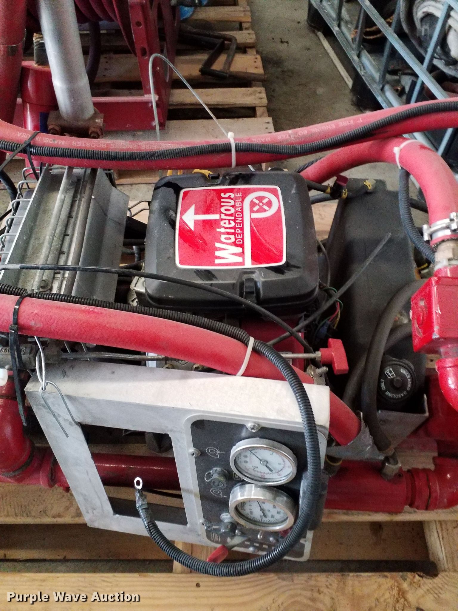 Purple Wave is selling a used Truck Part and Attach. in Kansas. This item is a Brush fire skid unit with the following: Briggs & Stratton two cylinder gas engine, 18 HP, 500 gallon capacity, 10 gallon foam tank, Waterous PB18G2015 water pump, Non-operational pump and engine