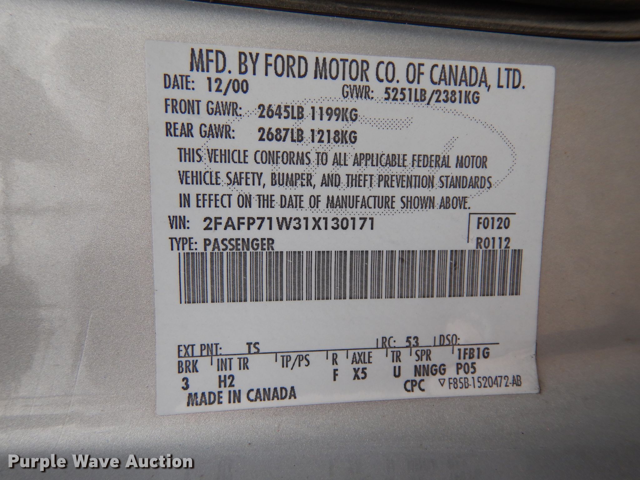 Purple Wave is selling a used Passenger Vehicle in Kansas. This item is a 2001 Ford Crown Victoria Police Interceptor with the following: 148,116 miles on odometer, 4.6L V8 SOHC 16V gas engine, Automatic transmission, AC and heat, Cruise, Power windows and locks, 225/60R16 tires, Dead battery, Unknown operating condition