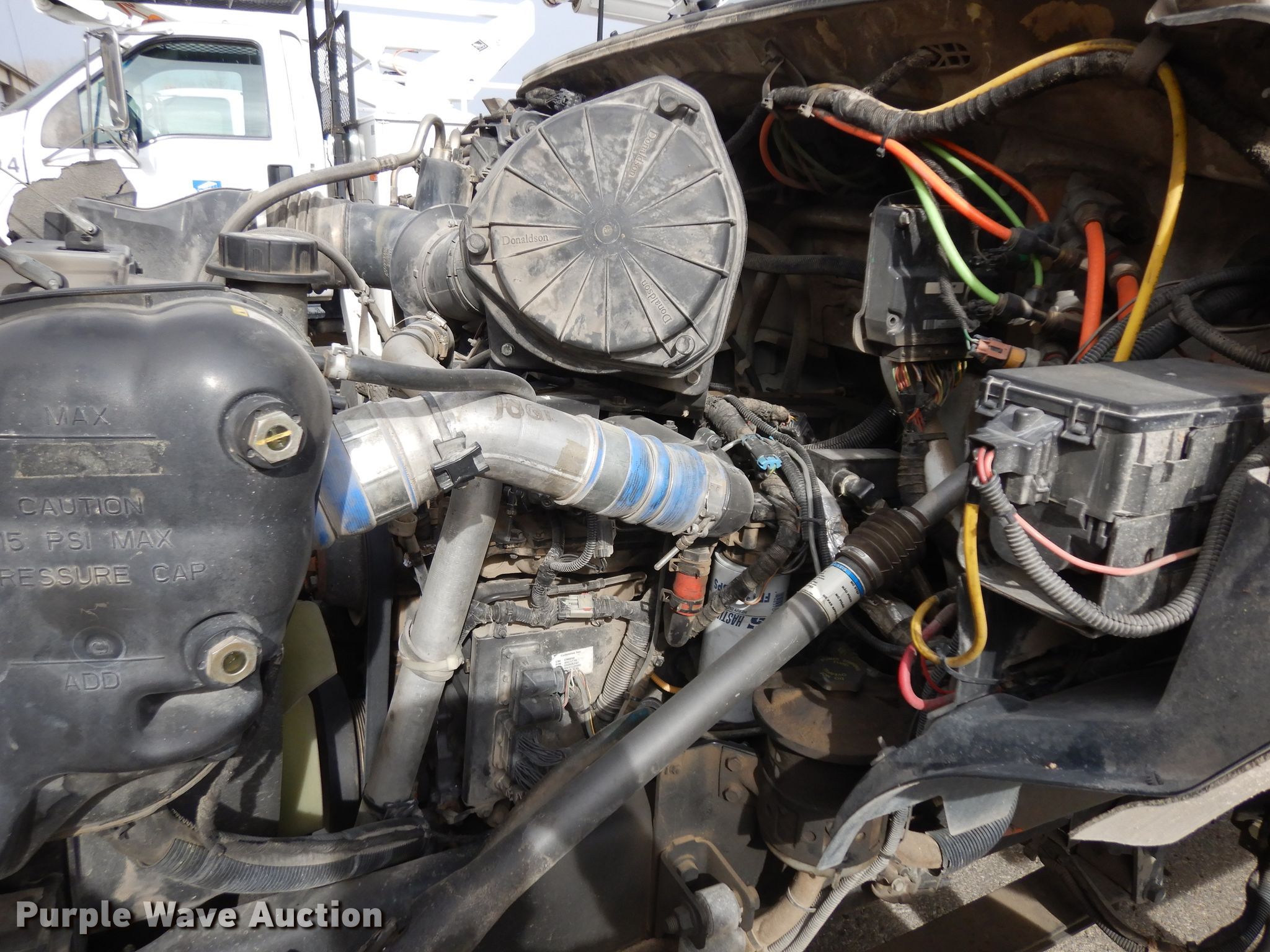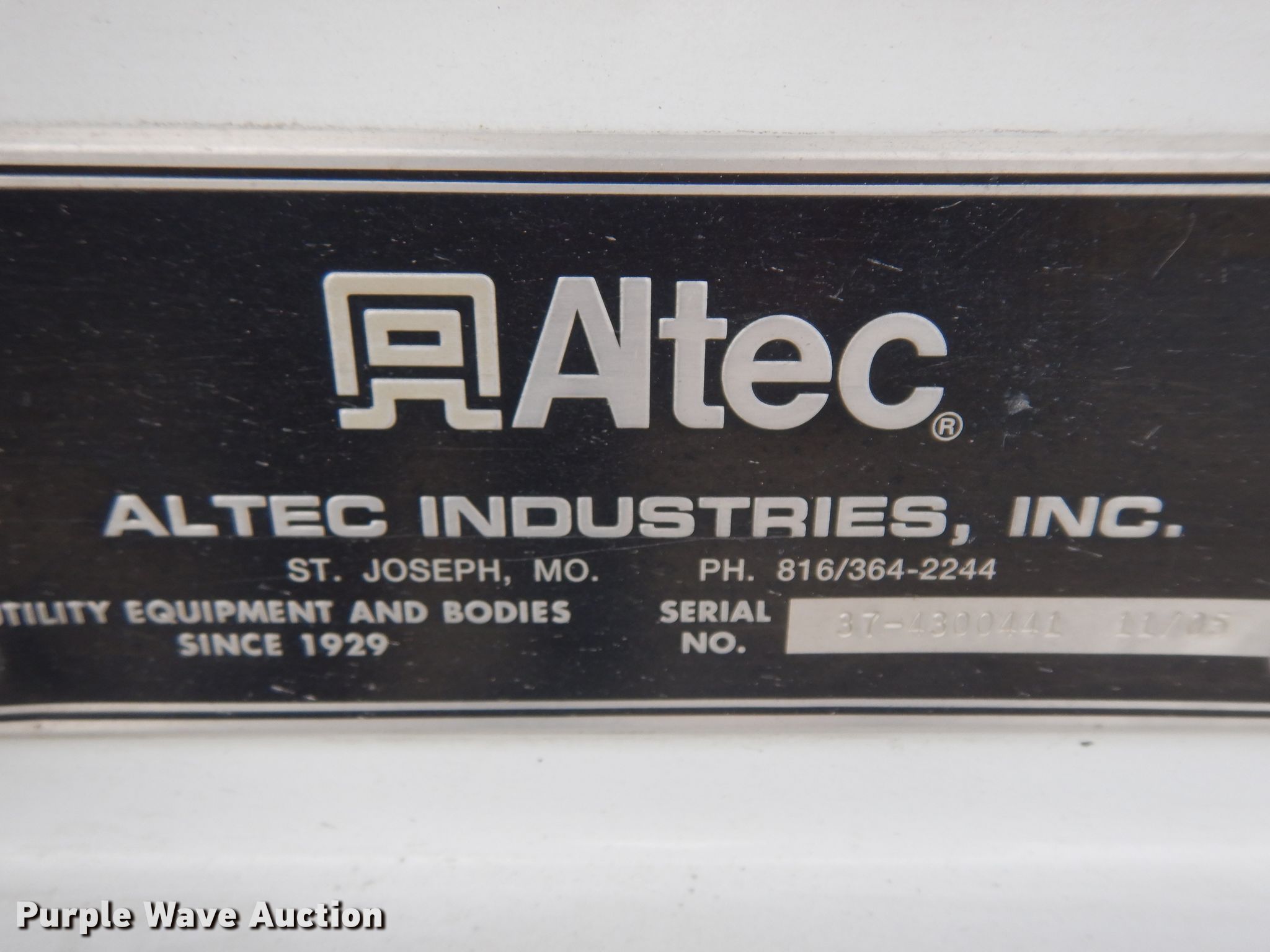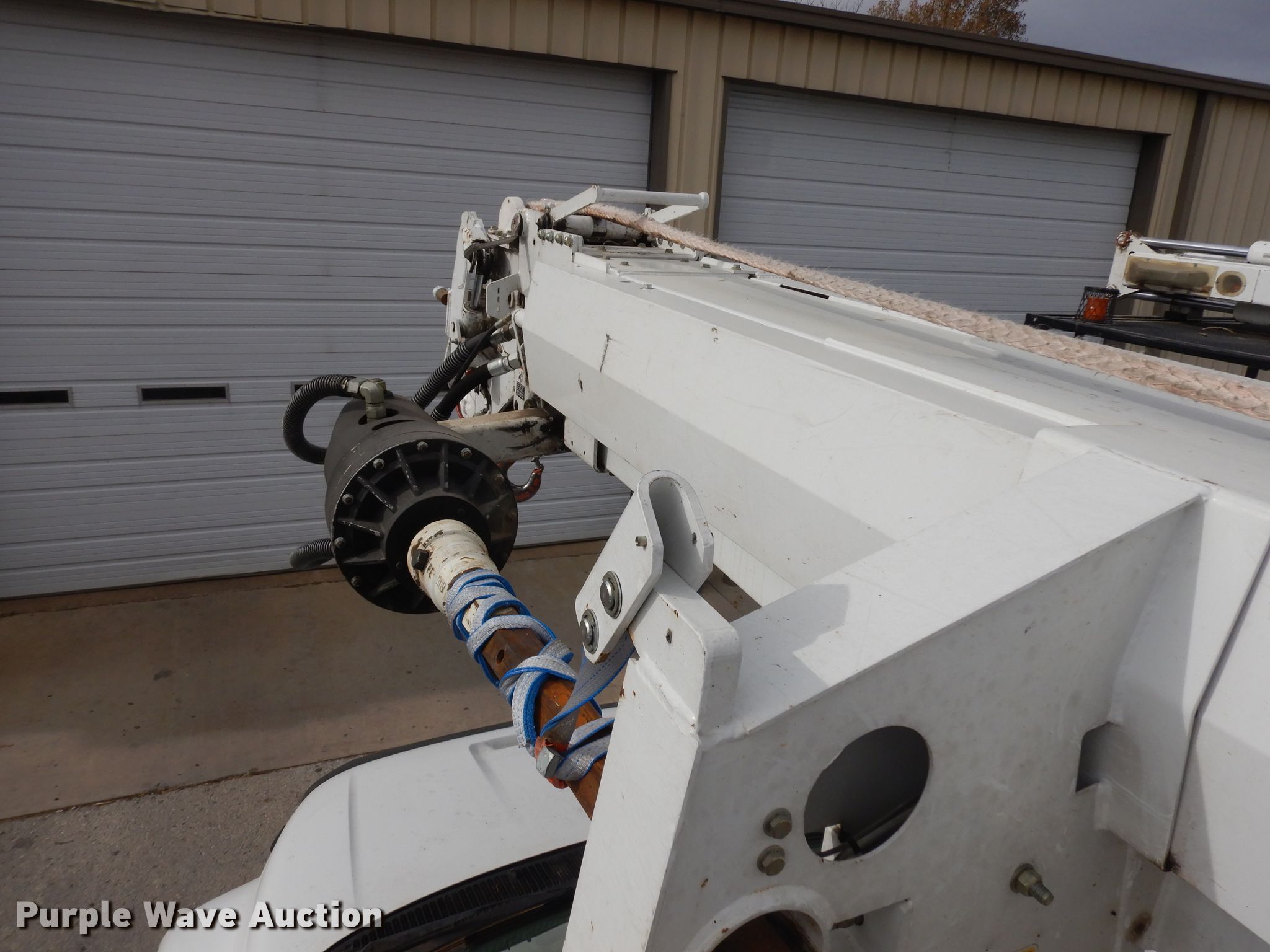 Purple Wave is selling a used Digger Derrick Truck in Kansas. This item is a 2006 Ford F750 digger derrick truck with the following: 47,329 miles on odometer, 7,459 hours on meter, Cummins ISB 5.9L L6 diesel engine, Automatic transmission, Single axle, AC and heat, PTO, Omaha utility bed, 14.5'L, Serial 41682, Altec DM47T-R digger derrick, 23,790 lbs max lift capacity, 47' max lift height, Insulated and telescopic boom, Ground boom controls, Material handler, Pole guide, Serial 0805DV1439, Spring suspension, Air brakes, 194" wheelbase, 11R22.5 tires, GVWR 33,000 lbs