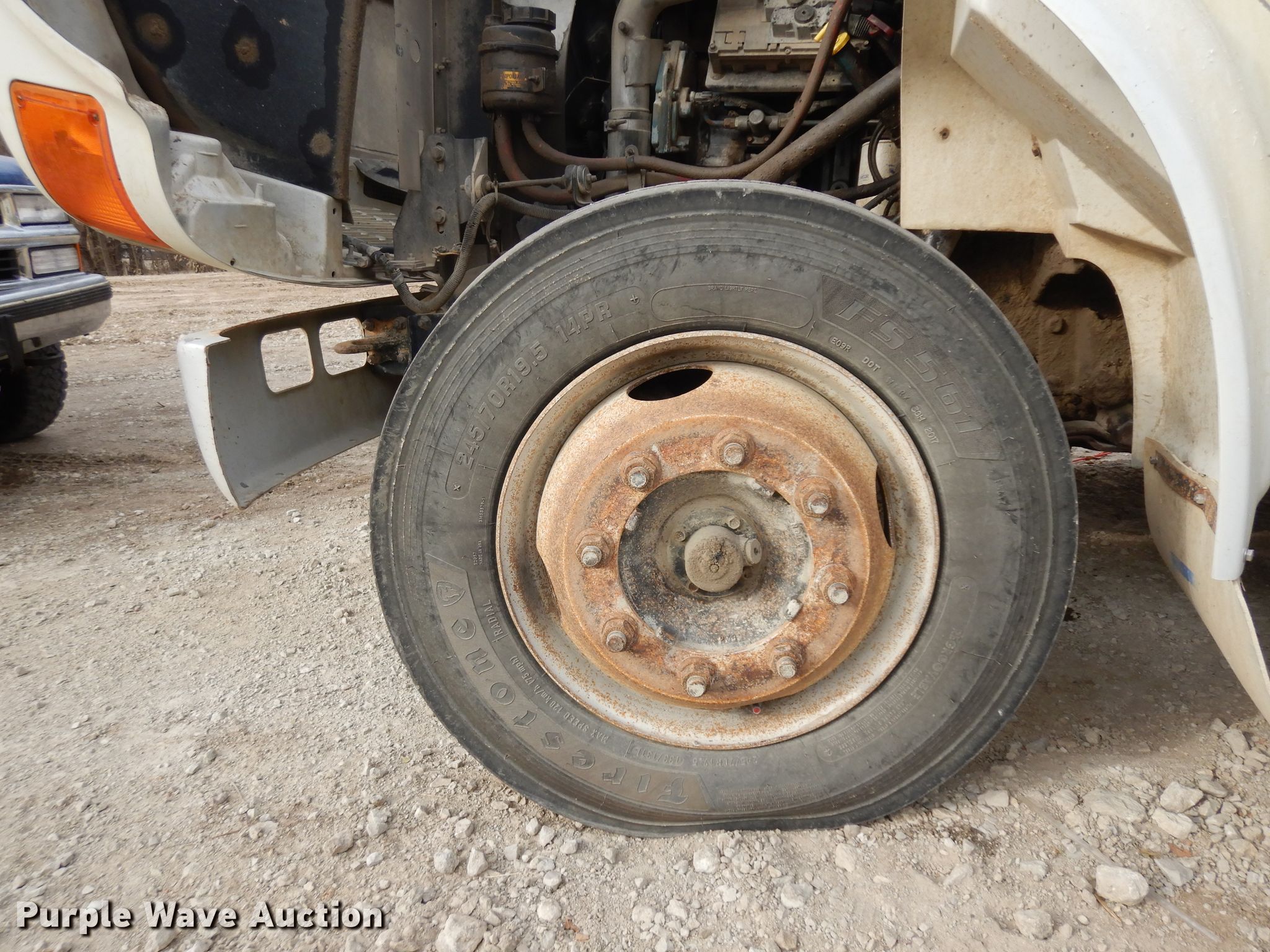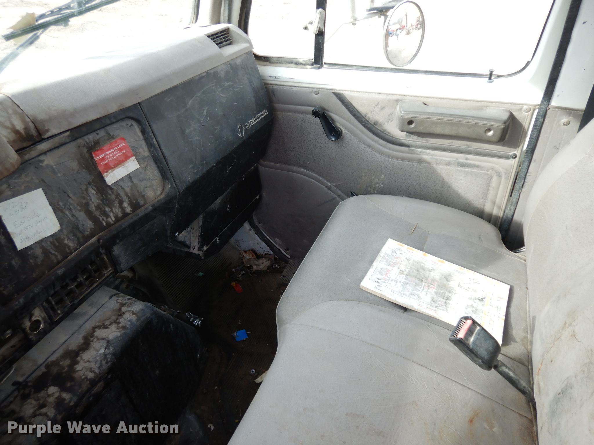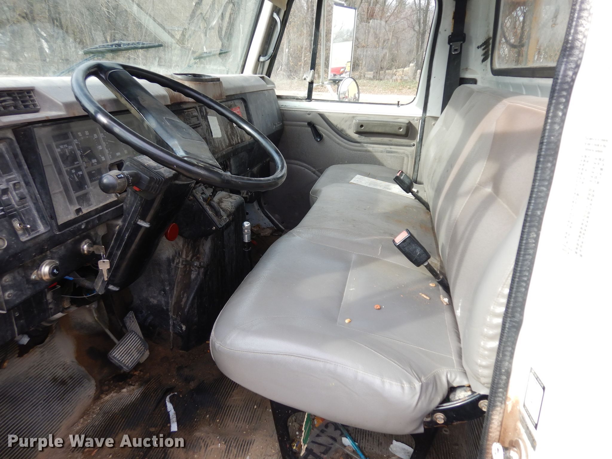 Purple Wave is selling a used Service Truck in Kansas. This item is a 2000 International 4700 flatbed truck with crane with the following: 231,804 miles on odometer, 13,495 hours on meter, International DT466 7.6L L6 diesel engine, Automatic transmission, Single axle, AC and heat, 13'L flatbed, Crane, 8' boom length, Spring suspension, Hydraulic brakes, 245/70R19.5 tires, Crane valves and levers removed, Non-operational unit, Non-operational engine