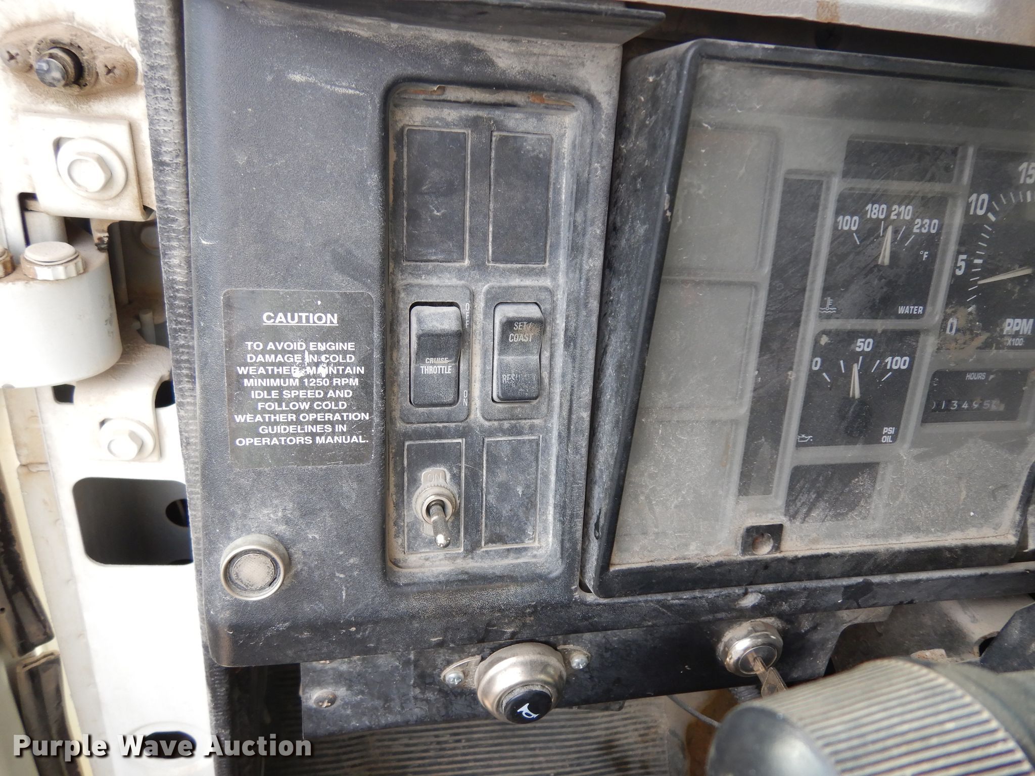2000 International 4700 flatbed truck with crane. 231,804 miles on odometer, 13,495 hours on meter, International DT466 7.6L L6 diesel engine, Automatic transmission, Single axle, AC and heat, 13'L flatbed, Crane 8' boom length, Spring suspension, Hydraulic brakes, 245/70R19.5 tires, Crane valves and levers removed, Non-operational unit, Non-operational engine. Kansas title. 1HTSCAAM1YH289543. Pottawatomie County Noxious Weed Department. 405 E Campbell St. Westmoreland, KS 66549