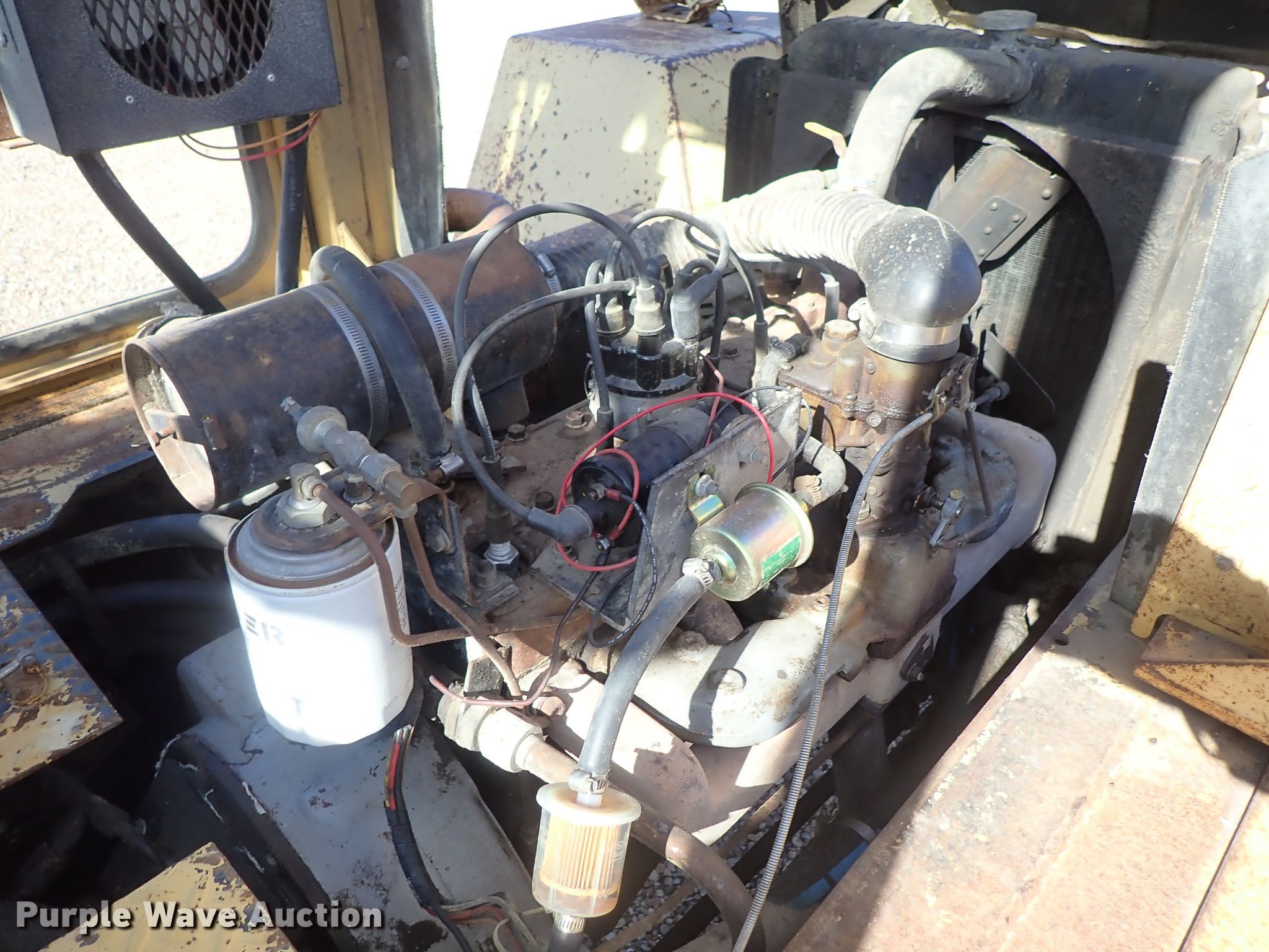 Purple Wave is selling a used Strt. Mast Rough Terr. Forklift in Kansas. This item is a Hyster P80A forklift with the following: 9,737 hours on meter, Continental F227 six cylinder gas engine, Shuttle shift transmission, 4F-4R gears, EROPS, Heat, 8,000 lbs max lift capacity, 170" max lift height, Mast tilt, Side shift, 48"L forks, 445/65R19.5 front tires, 8.25-20 rear tires, Approx. 15,450 lbs. base operating weight, Additional engine oil filter and front tire, Serial A018D05282C