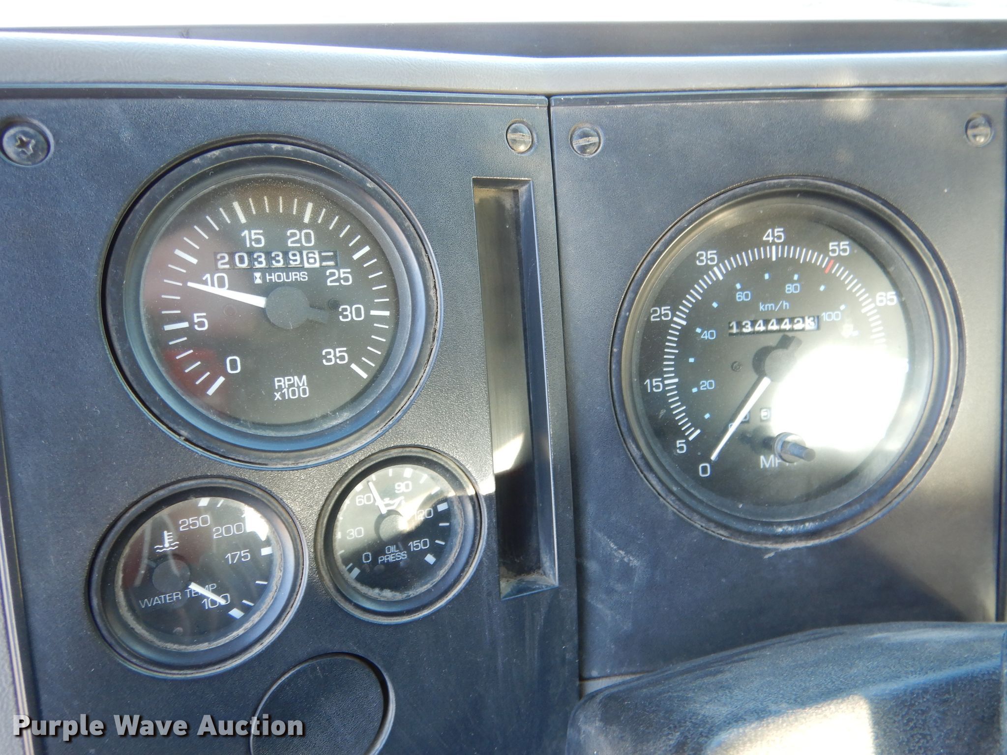 2003 Sterling SC8000 street sweeper truck. 134,442 miles on odometer, 20,339 hours on meter, Cummins ISB 5.9L L6 diesel engine 205 HP, Allison automatic transmission, AC and heat, Dual operators stations, Backup camera, Elgin Crosswind J vacuum sweeper bed 8 cu. yd. capacity, John Deere 4045TF150 four cylinder engine, 144"W boom, 42" diameter left gutter broom, 42" diameter right gutter broom, 240 gallon water spray system, Serial J0544D, Spring suspension, Air brakes, Goodyear 11R22.5 tires, GVWR 32,000 lbs. Nebraska title. 49HAADBV33DK98900. Big A Construction. 2404 North Rd. Grand Island, NE 68803