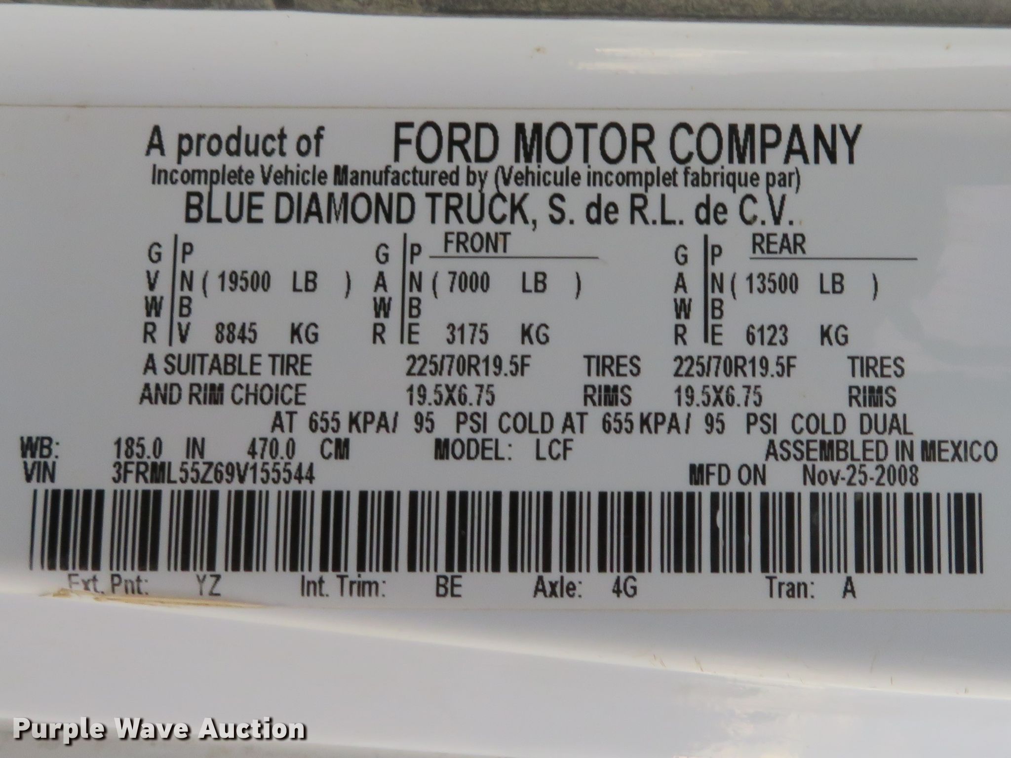 Purple Wave is selling a used Flat Bed Truck in Missouri. This item is a 2009 Ford LCF flatbed truck with the following: 105,594 miles on odometer, Ford 4.5L V6 diesel engine, Automatic transmission, Single axle, AC and heat, Power windows, Brake controller, Knapheide PHHJ-203B flatbed, 20'7"L x 96"W, Serial 20090928-0155675, Spring suspension, Hydraulic brakes, 185" wheelbase, 225/70R19.5 tires, GVWR 19,500 lbs, Possible injector issues