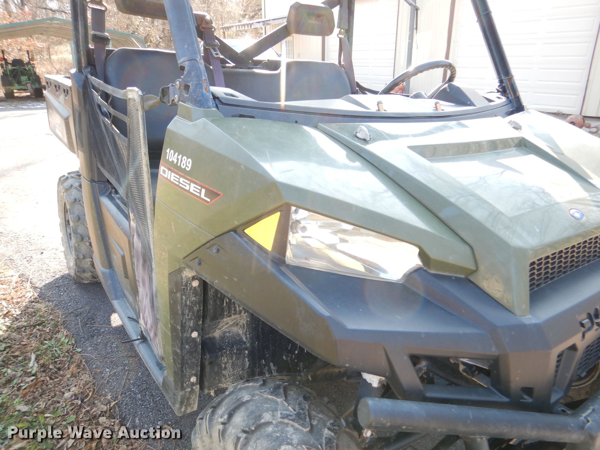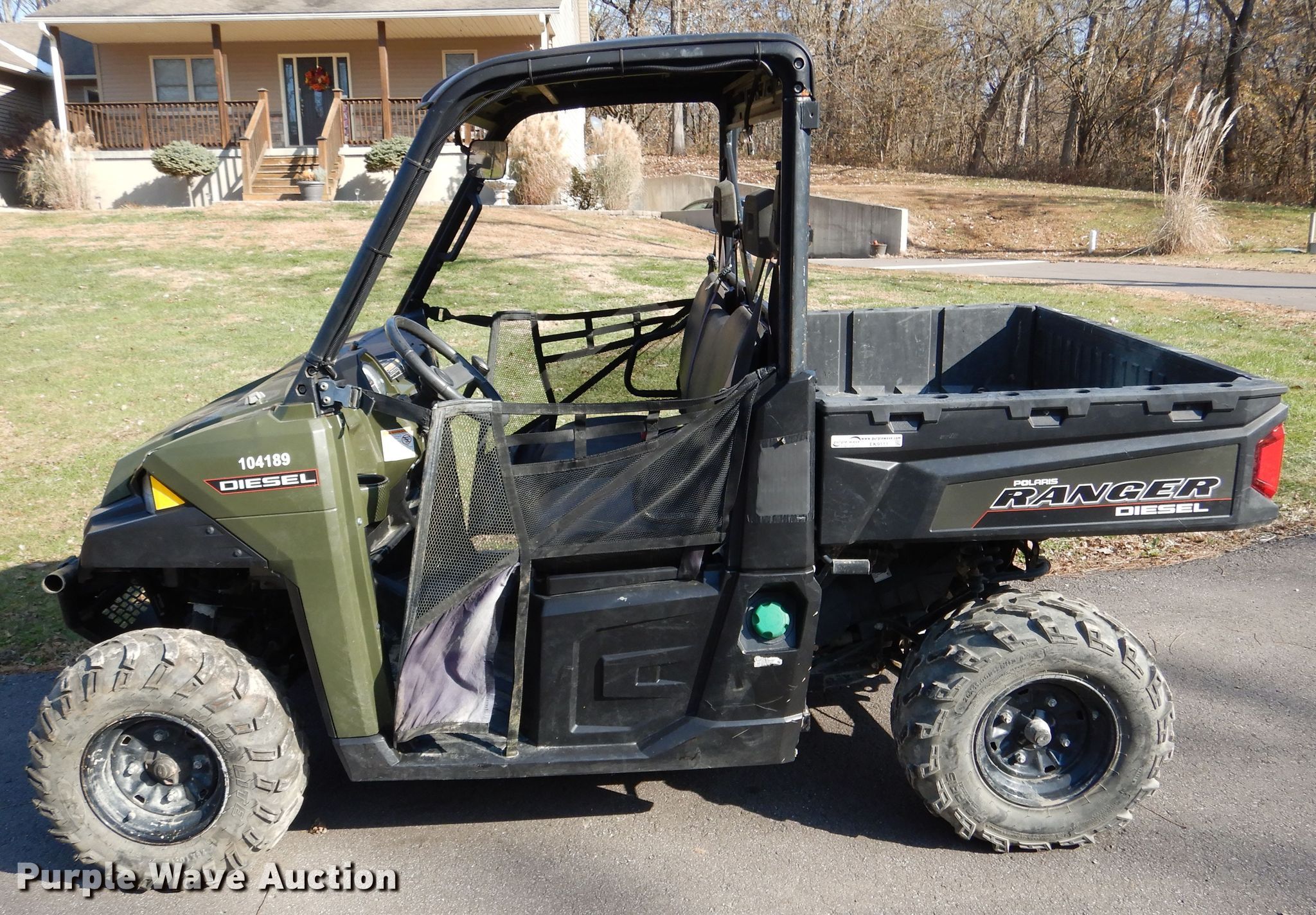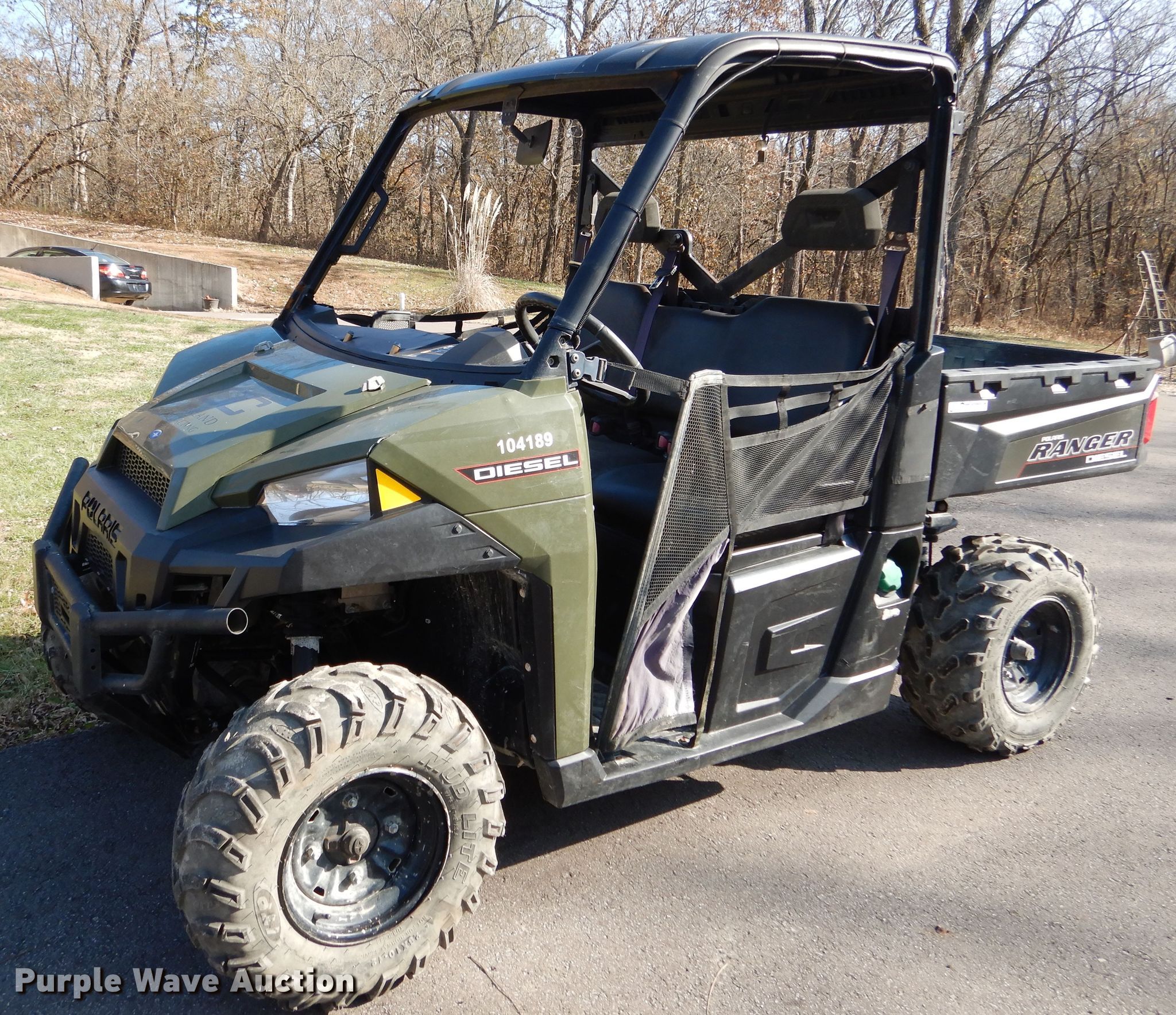 Purple Wave is selling a used Utility Vehicle in Missouri. This item is a 2016 Polaris Ranger 1000 utility vehicle with the following: 2,225 miles on odometer, 390 hours on meter, Kohler 1,028cc three cylinder diesel engine, 26 HP, Automatic transmission, Four wheel drive, ROPS canopy, Three passenger capacity, Grill guard, Manual dump bed, Receiver hitch, 25-10-12 front tires, 26-11-12 rear tires