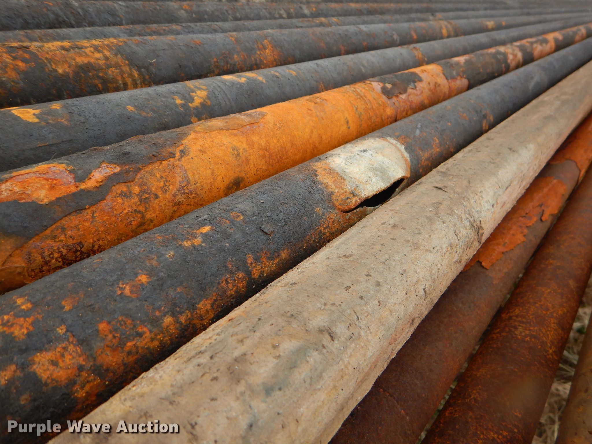 Purple Wave is selling a used Pipe in Oklahoma. This item is a Approximately 33 oilfield structural pipes with the following: 2 3/8" diameter, 31'L average pipe length