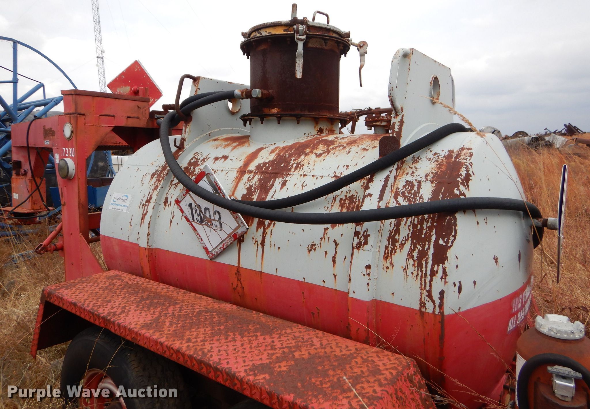 Purple Wave is selling a used Tank Trailer in Oklahoma. This item is a Tank trailer with the following: 9'L x 77"W, 500 gallon capacity, Tank coating, 4" outlet valve, Steel construction, Single leg landing gear, Spring suspension, Electric brakes, Tandem axle, Steel wheels, 235/85R16 tires