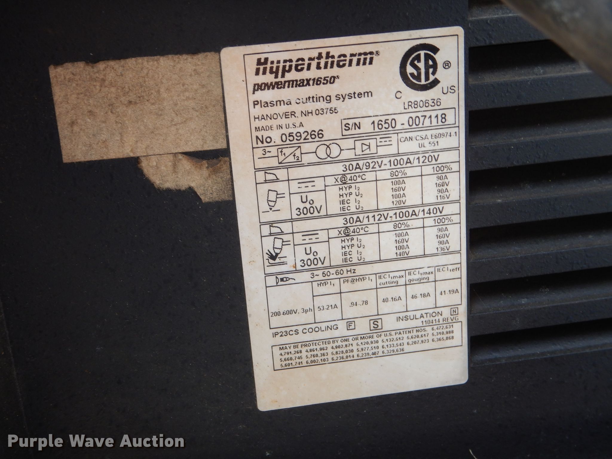 Hypertherm Powermax 1650 plasma cutter | SOLD! December 18 Vehicles and Equipment Auction