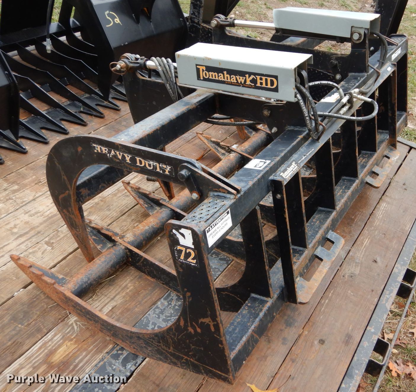 Purple Wave is selling a used Skid Steer Attach. in Missouri. This item is a 72"W skid steer grapple bucket with the following: (2) grapples