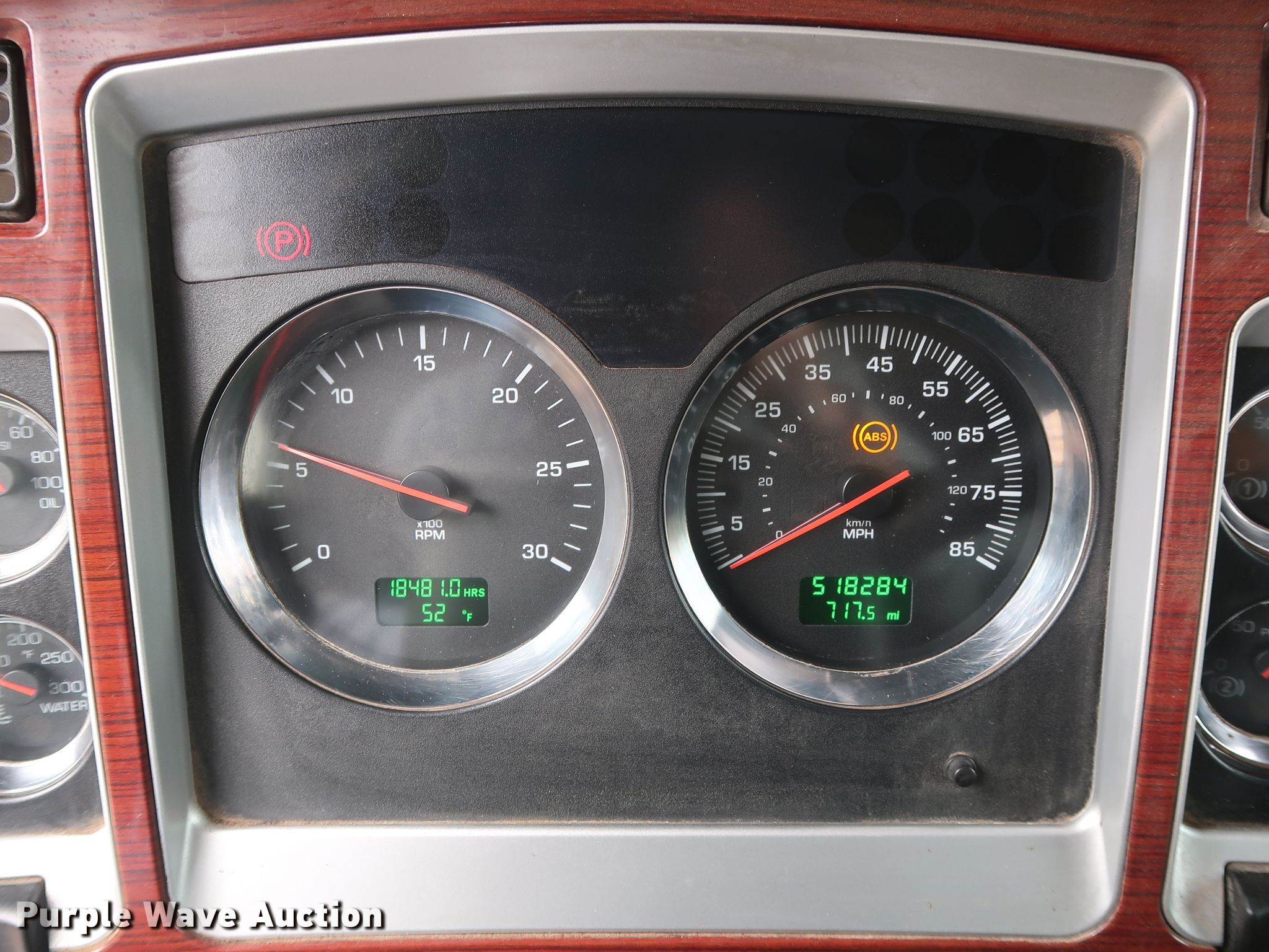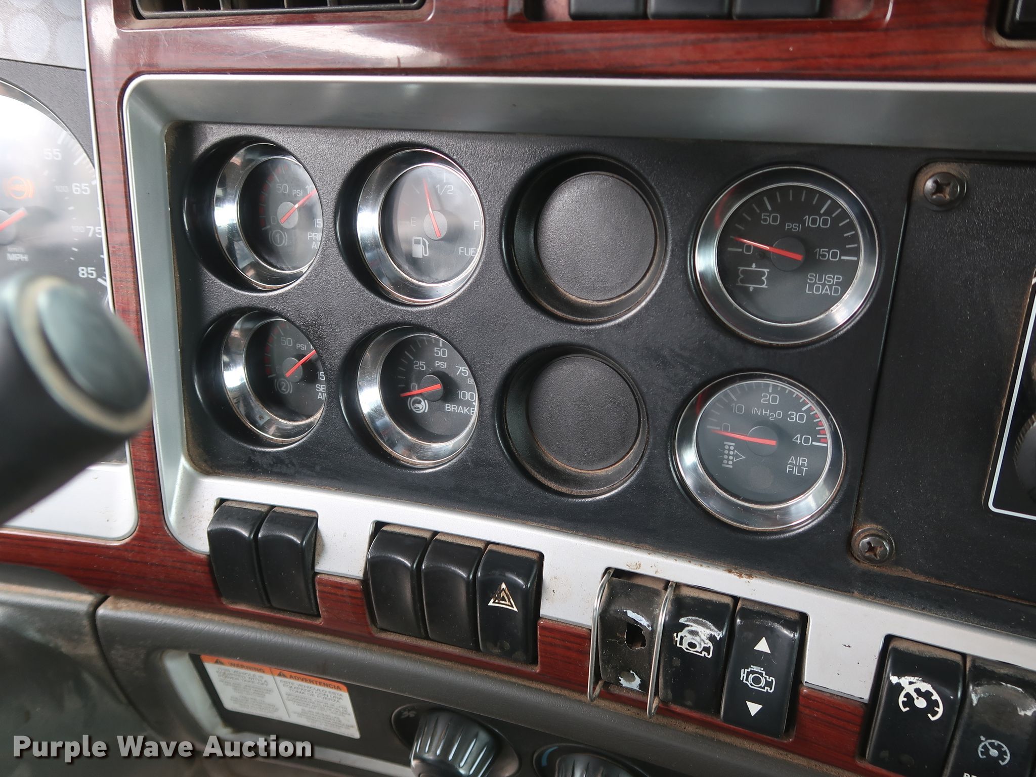 Purple Wave is selling a used Construction Dump Truck in Oklahoma. This item is a 2007 Kenworth T800 dump truck with the following: 518,284 miles on odometer, 18,481 hours on meter, Caterpillar C13 12.0L L6 diesel engine, 525 HP, Serial KCB79612, Eaton Fuller FRO16210C 10 speed manual transmission, Triple axle, Steerable pusher axle, Inter-axle differential lock, AC and heat, Cruise, PTO, Davis FMT15-16 steel dump bed, 16'L x 96"W, 48" side height, 10" side board height, Single ram hoist, Air operated end gate, Roll tarp, 3:55 gear ratio, 210" wheelbase, Air suspension, Air brakes, 11R22.5 tires, GVWR 65,200 lbs, FAWR 13,200 lbs, IAWR 20,000 lbs, RAWR 20,000 lbs, Lift axle GAWR 12,000 lbs