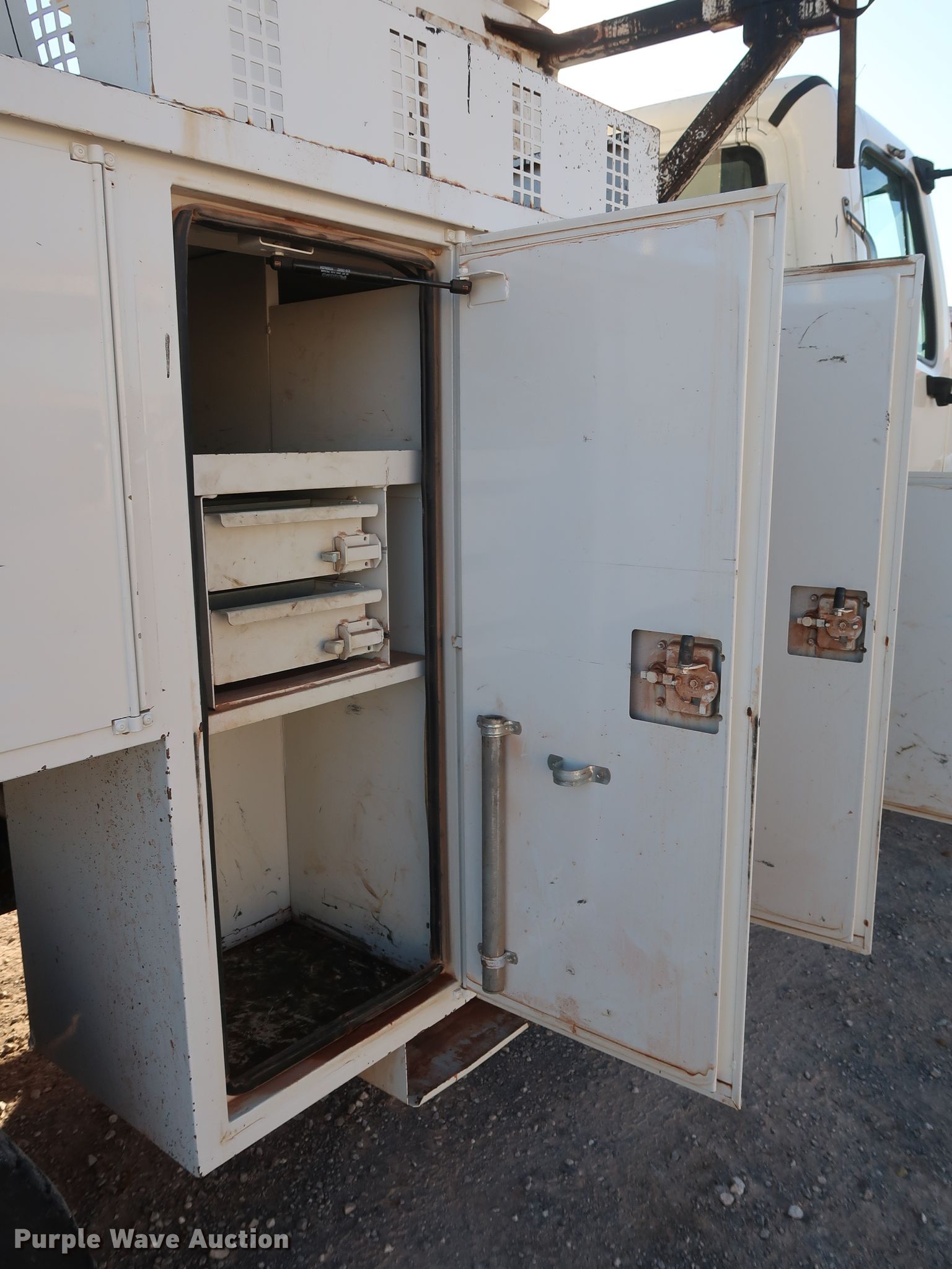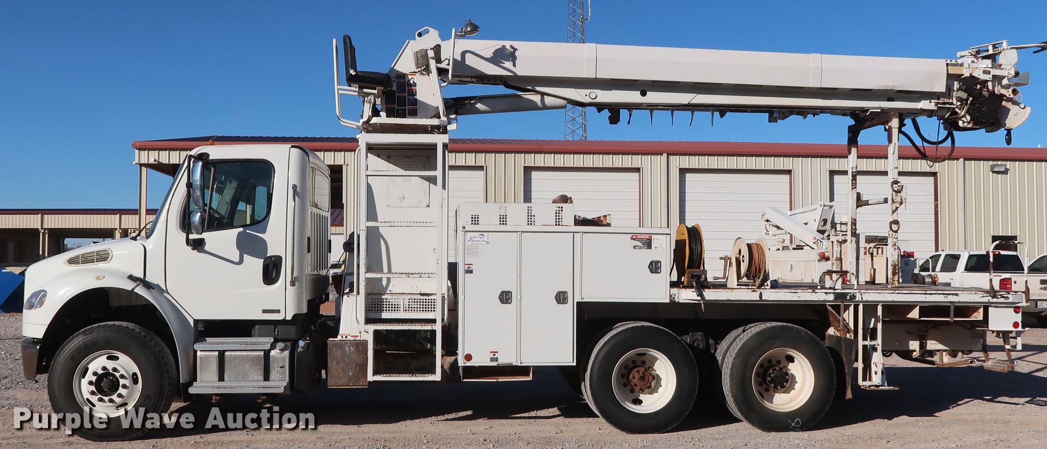 Purple Wave is selling a used Digger Derrick Truck in Oklahoma. This item is a 2011 Freightliner Business Class M2 digger derrick truck with the following: 99,830 miles on odometer, 3,056 hours on meter, Cummins ISC 8.3L L6 diesel engine, 330 HP, Serial 73087371, Allison automatic transmission, Tandem axle, Inter-axle differential lock, AC and heat, Auxiliary controls, Brake controller, PTO, Altec 18'L utility bed, Serial 37-16159509, 2010 Altec D2050ABB insulated, telescopic boom, 40' boom length, 50' maximum lift height, 30,000 lbs maximum lift capacity, Platform and ground controls, Material handler, Pole guide, 18" diameter auger, Serial 0610BW0407, Spring suspension, Air brakes, 216" wheelbase, 12R22.5 front tires, 11R22.5 rear tires, GVWR 54,600 lbs